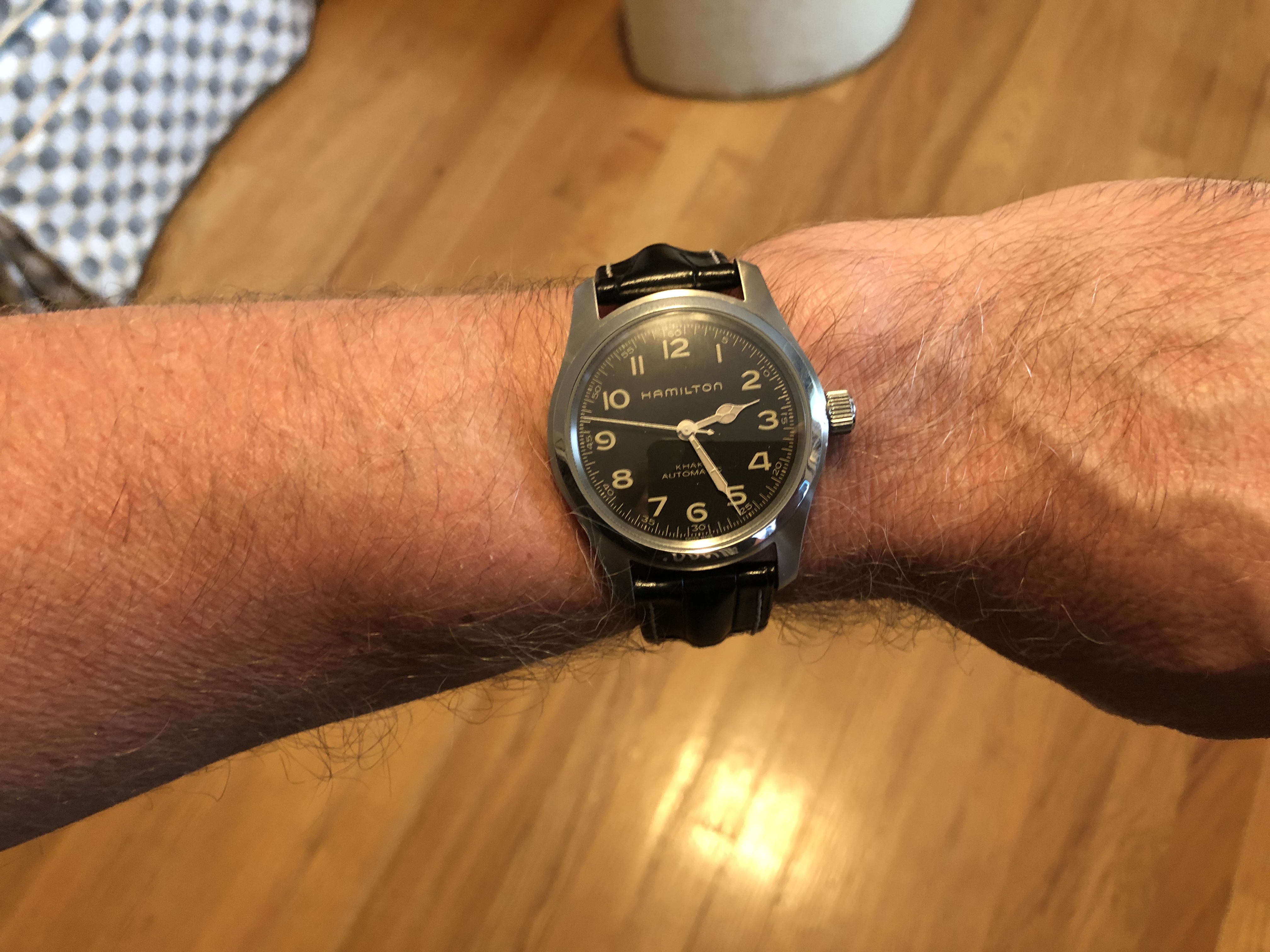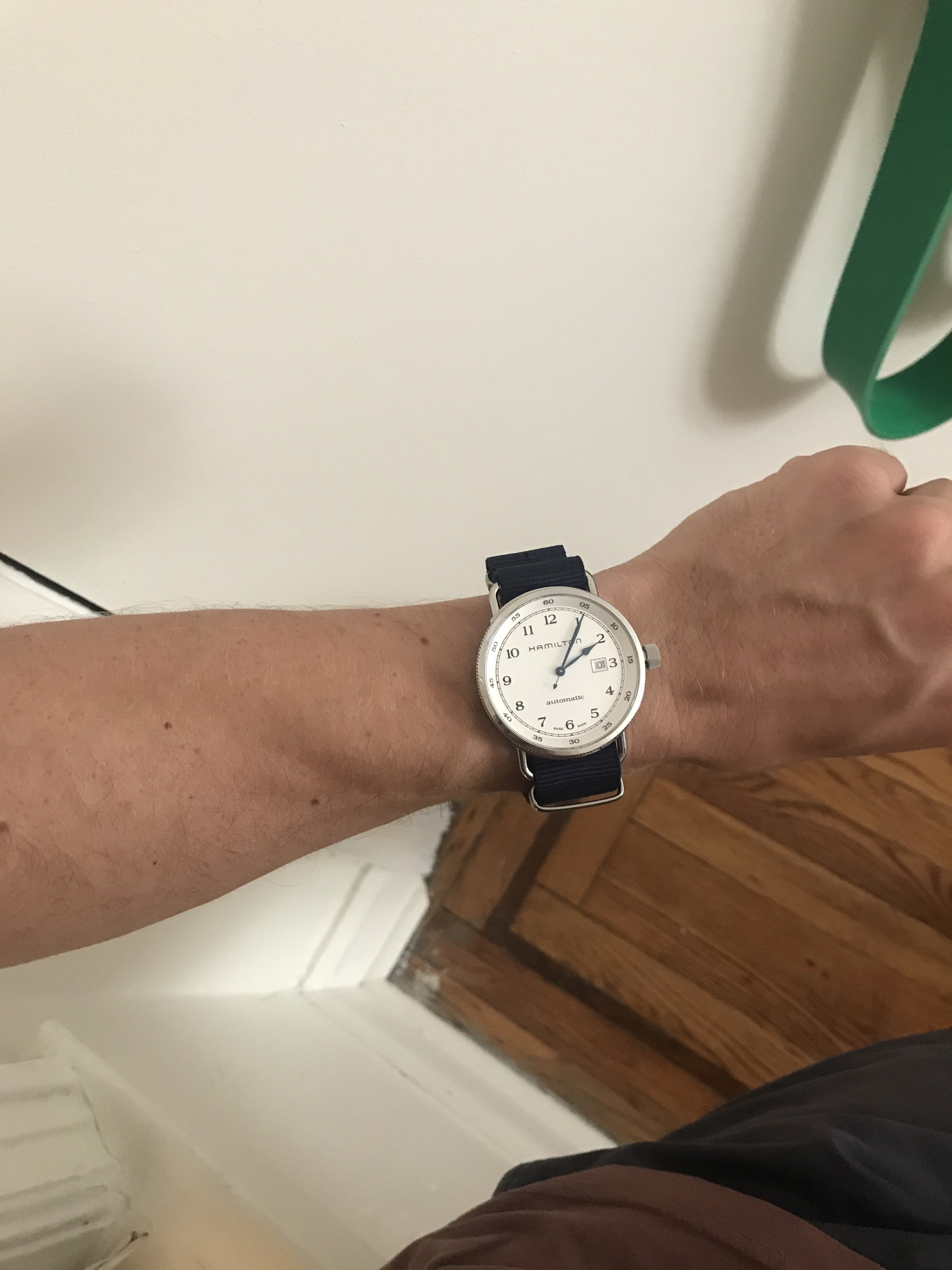 Looks like a nice watch, I can see why you like it! It does look a bit too big to me on the NATO but I think you could get away with it on the leather. Especially with a long sleeve (if it would fit under). But if long sleeves aren鈥檛 your thing or if you鈥檙e always going to worry it鈥檚 too big probably best get the smaller one.