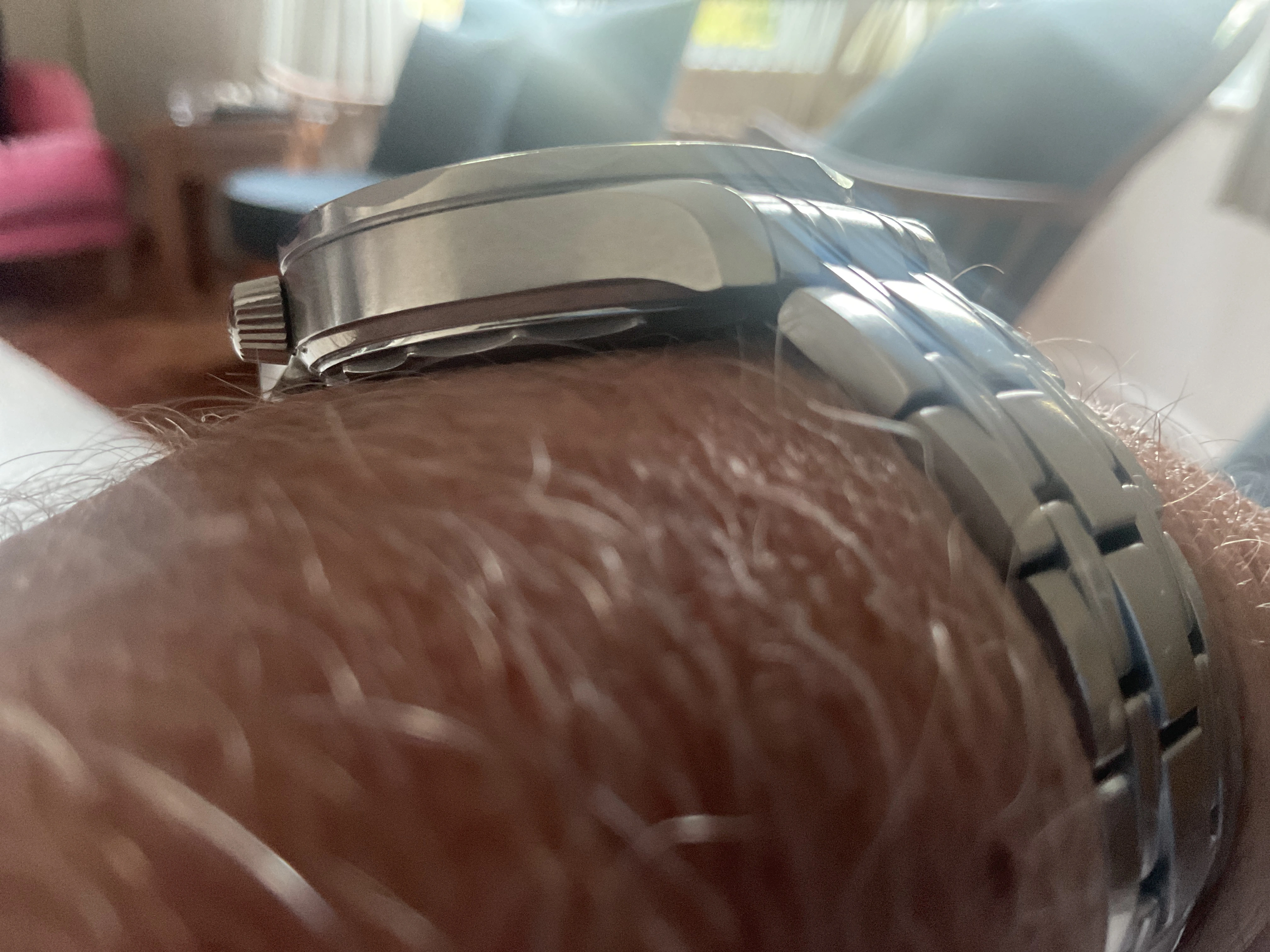 I'm going to disagree with some of the above, I have only a slightly bigger wrist (~6.5"), and the Speedy Pro fits great, and I can wear bigger stuff too. IF you're concerned about the size, the strap can definitely make it look/feel less bad.