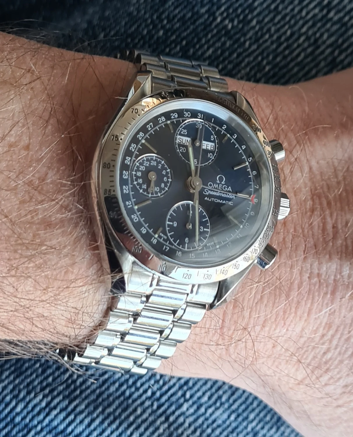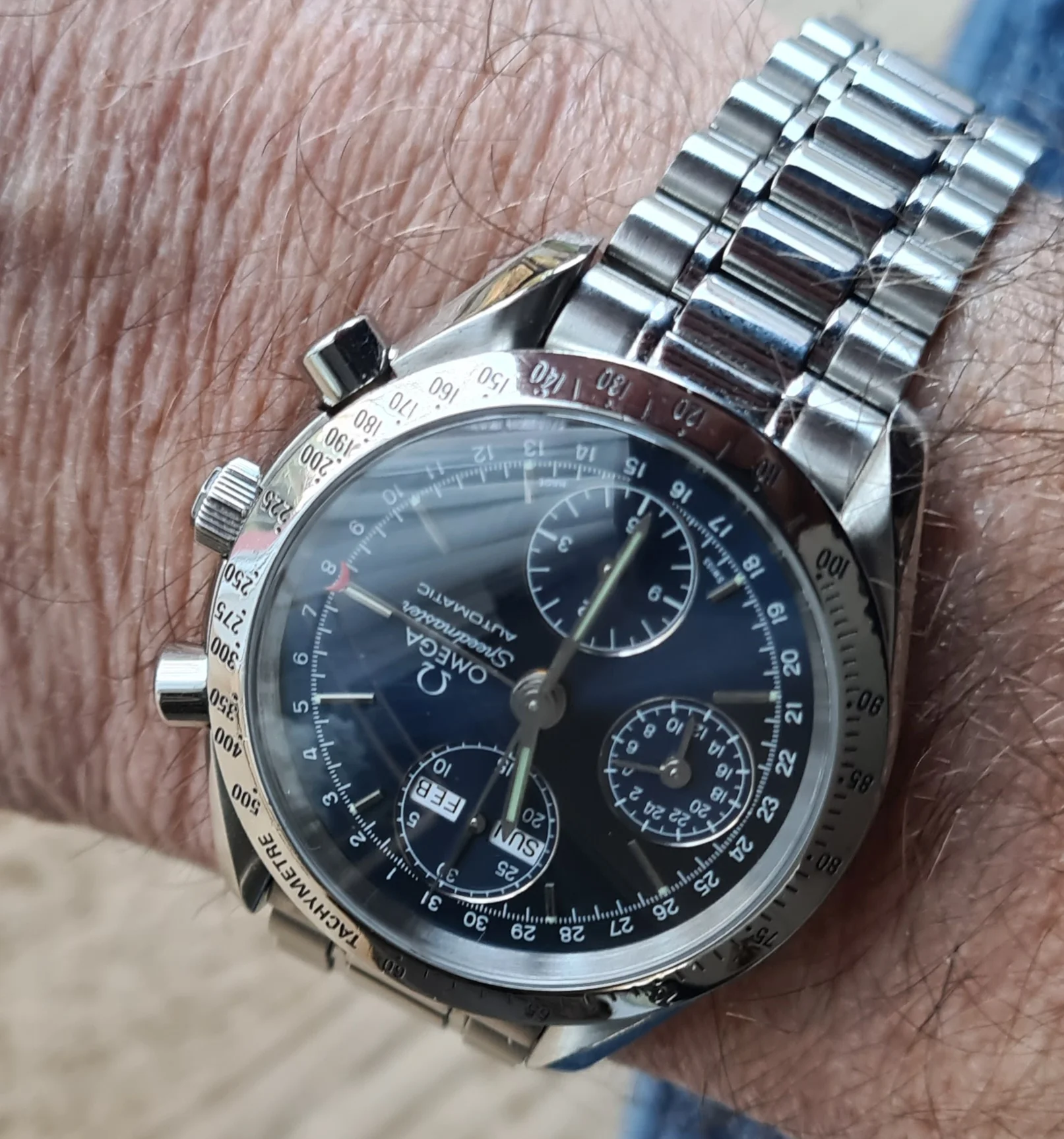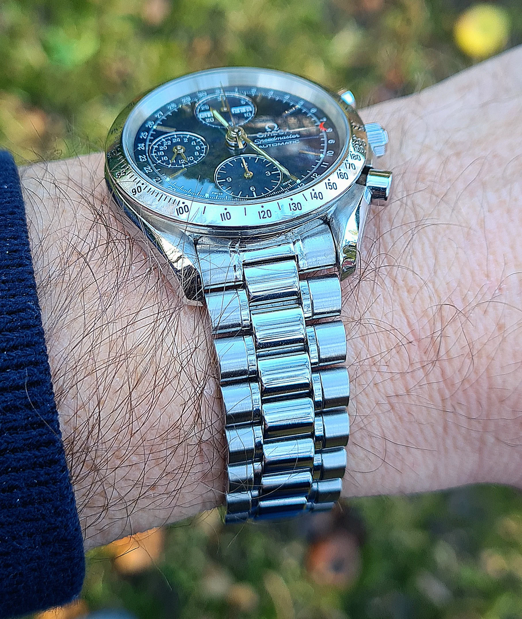 ·I bought a watch that I found awful in the 1990s: the smaller 39 mm version of the Speedmaster. Reference 3521.80 with a blue dial. The model change took place in 1999/2000. After that came the 3523.80 with the ugly bracelet that was new at the time. Not uncommonly, however, the 3521.80 is offered under that reference - the differences are probably too subtle to be immediately obvious.