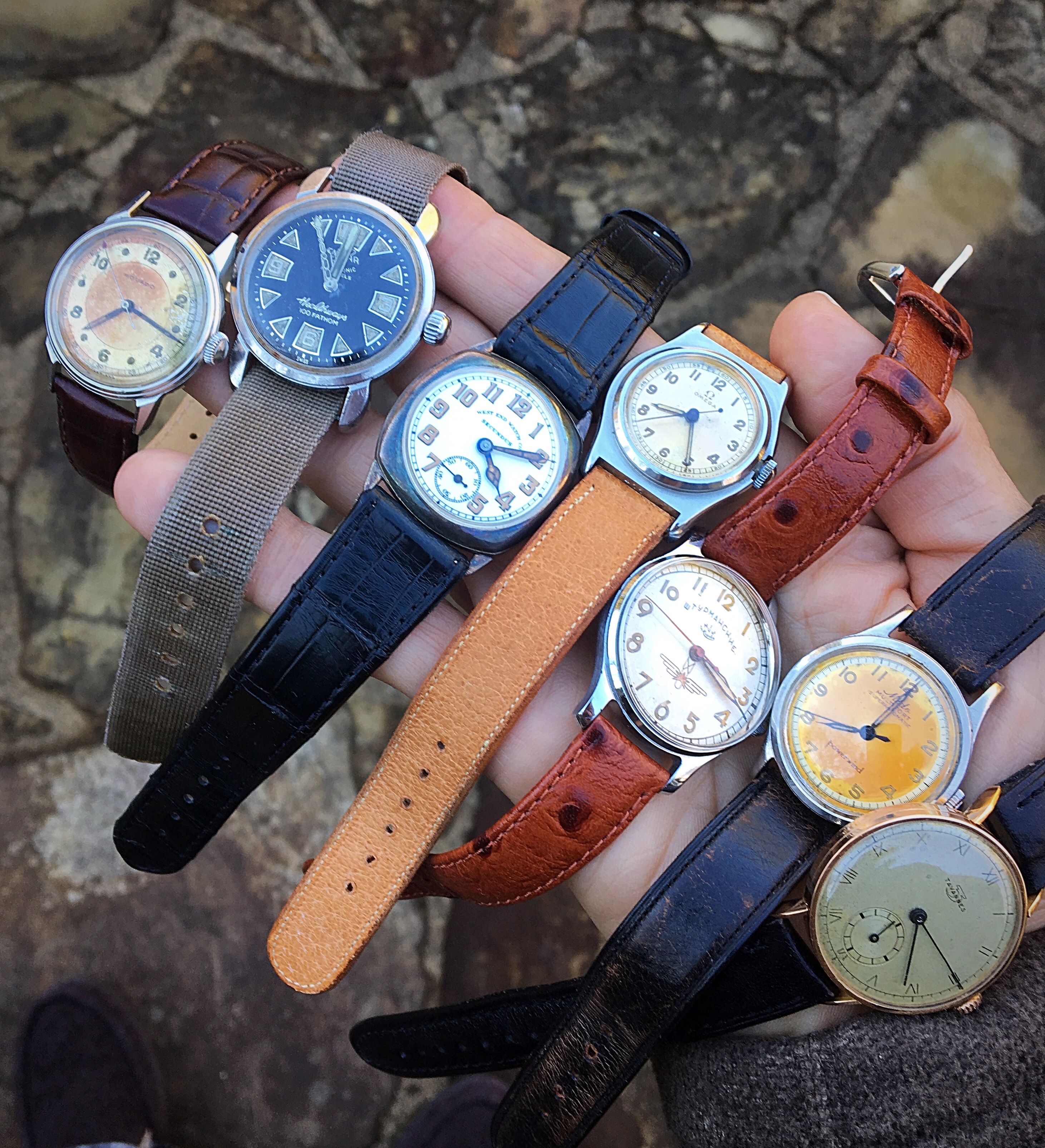 The Sturmanski (cosmonaut watch, 5th from left) is easily the most radioactive, followed by the Enicar ‘Healthways’ 😁 diver.