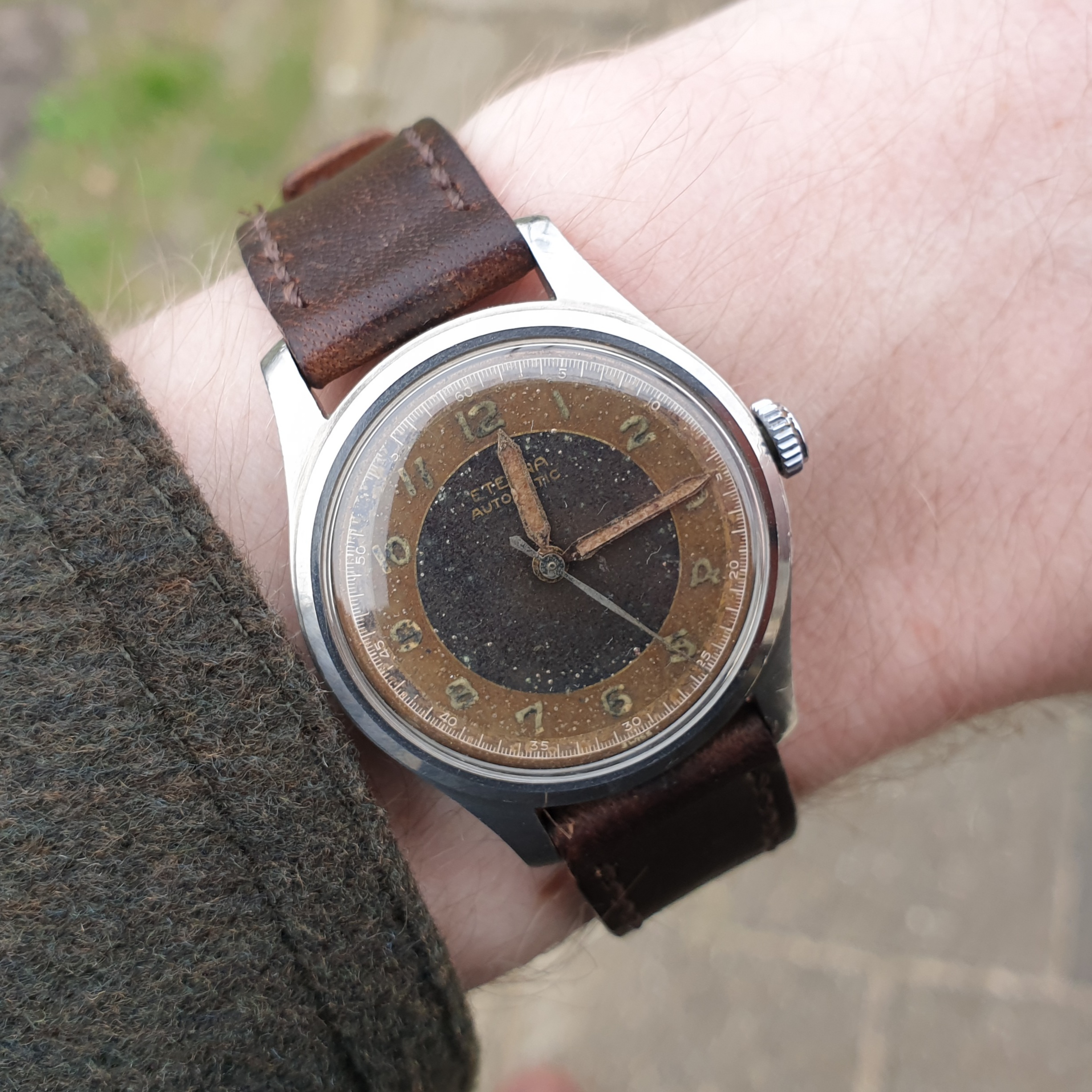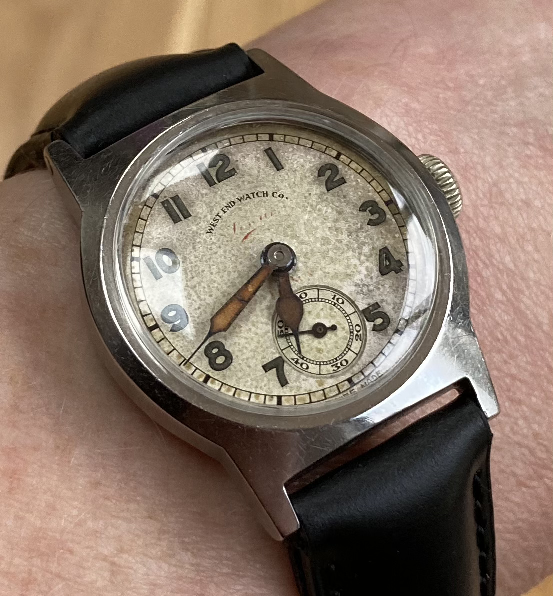 1940s (I think) West End Sowar Primal 28mm of Borgel cased, Cathedral Handed, Radium Lumed goodness.