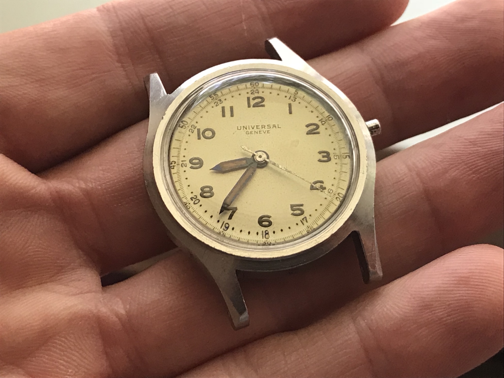 From the looks of the lower edge of the bezel and the very clear crystal it took a hard hit many years ago requiring a replacement crystal and probably lost its second hand then. The minute hand also looks to be bent.
