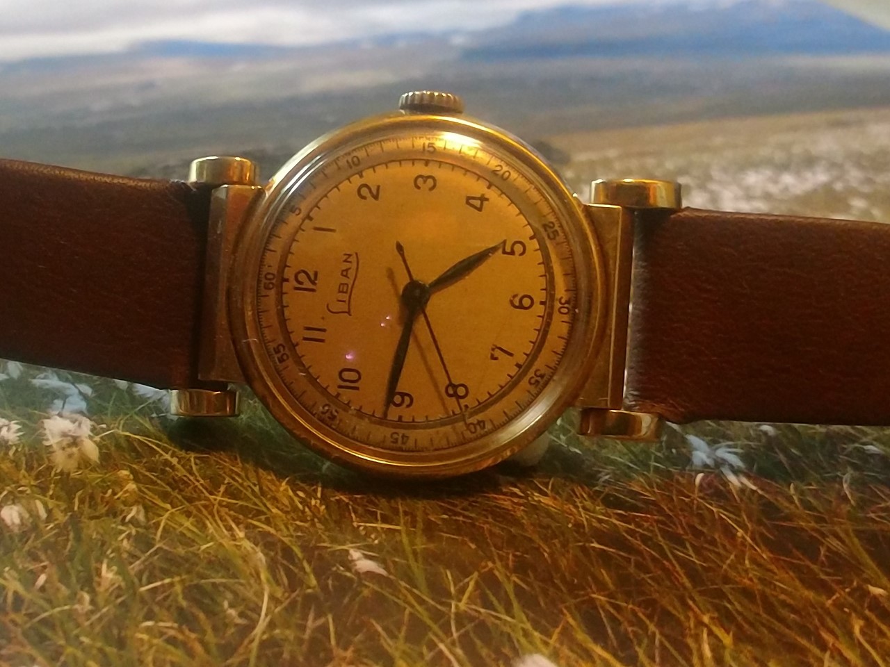Liban with swivel lugs, but no radium....28.36mm diameter, 41mm lug-to-lug, 15mm band, furnace blue hands. Wears larger due to the lug design. I have been able to find very little about the brand, and would welcome any info OF members might have.