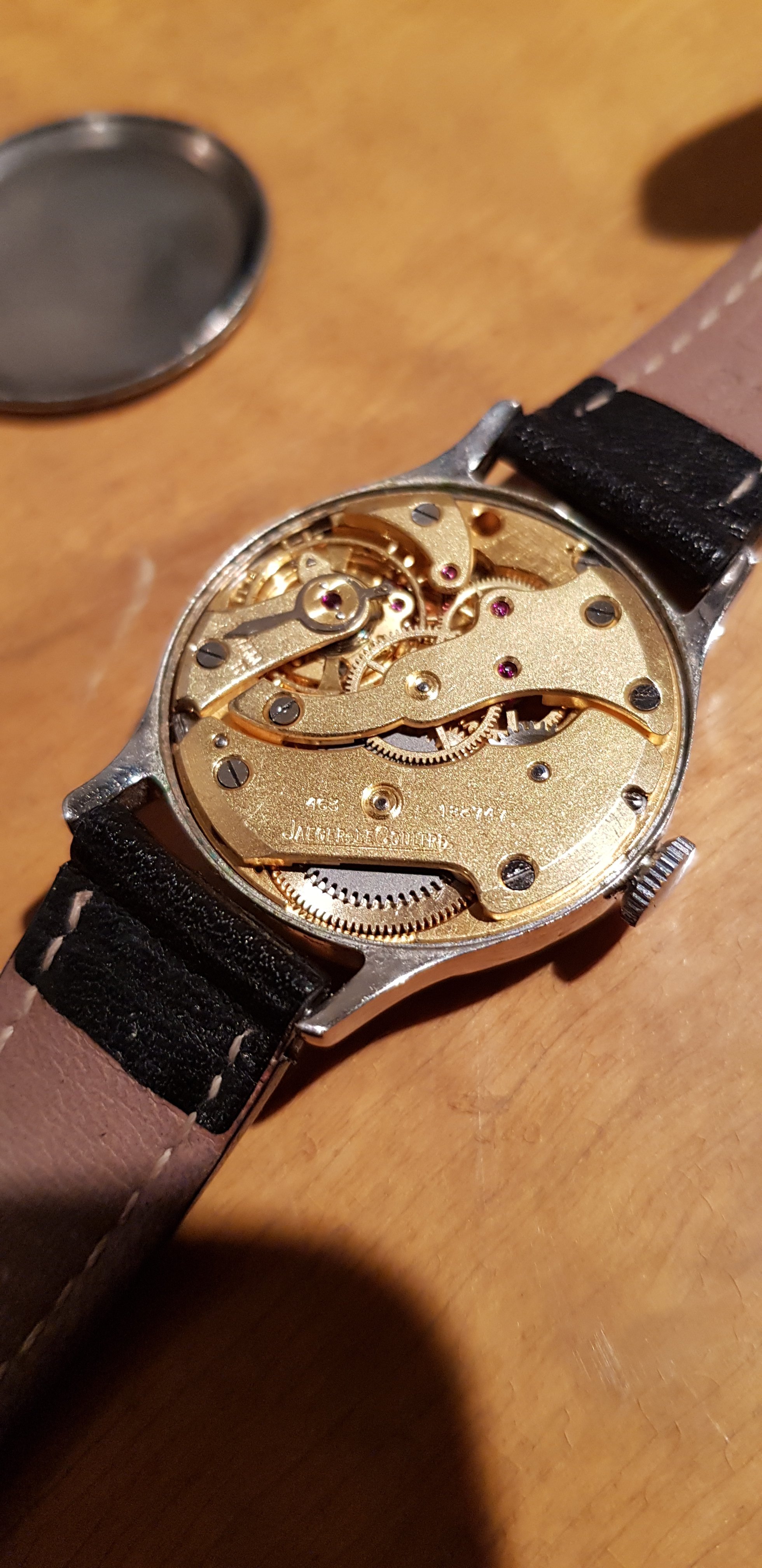 This JLC is only 31 mm but might be a special one. These small watches produced in 1942-43 are the only Jaegers with matching case back and movement serial numbers, as on mine. The cal nr 463 should also be stamped on the bridge if it is to be counted among what might have been a special German order...some call this Luftwaffe Jaeger and military. I do not, I just say isnt it nice, both inside and outside? Sorry for the lecture here are some pics