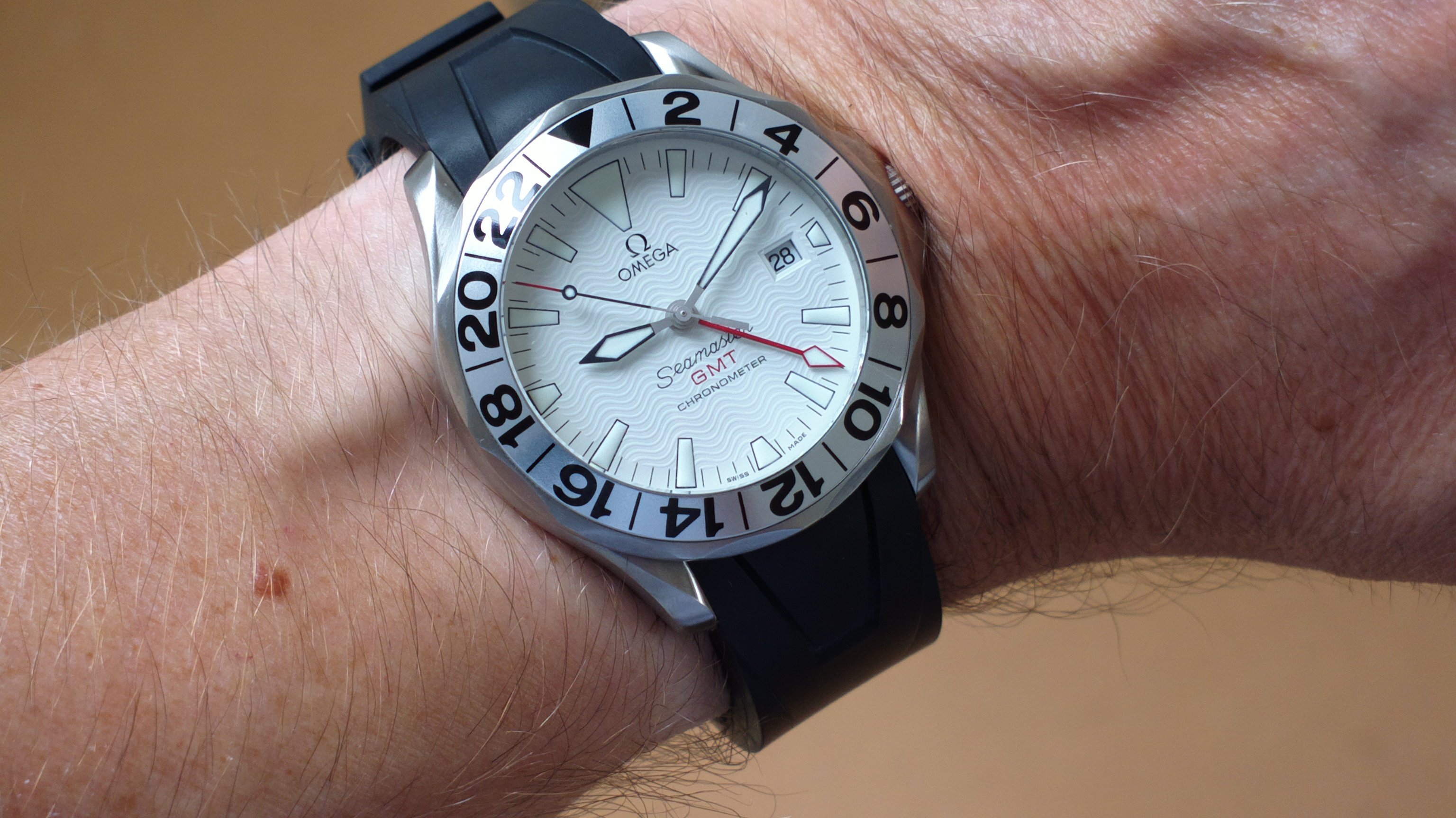 I have been on the look out for the right one for a few years, I love the basic SMP design, especially the sword hands versions. In addition to several 3 hand SMPs, I previously owned the Black 50th Anniv GMT SMP and also, usefully for comparison, a black dial 40mm Rolex Exp-II too which is obviously a close competitor. Neither are still with me but between those two I preferred the Omega GMT interpretation overall, the lume on the Rolex was very poor and the plain gloss dial lacked character. I wonder if I would think the same with this vs a Polar EXP-II, quite probably.