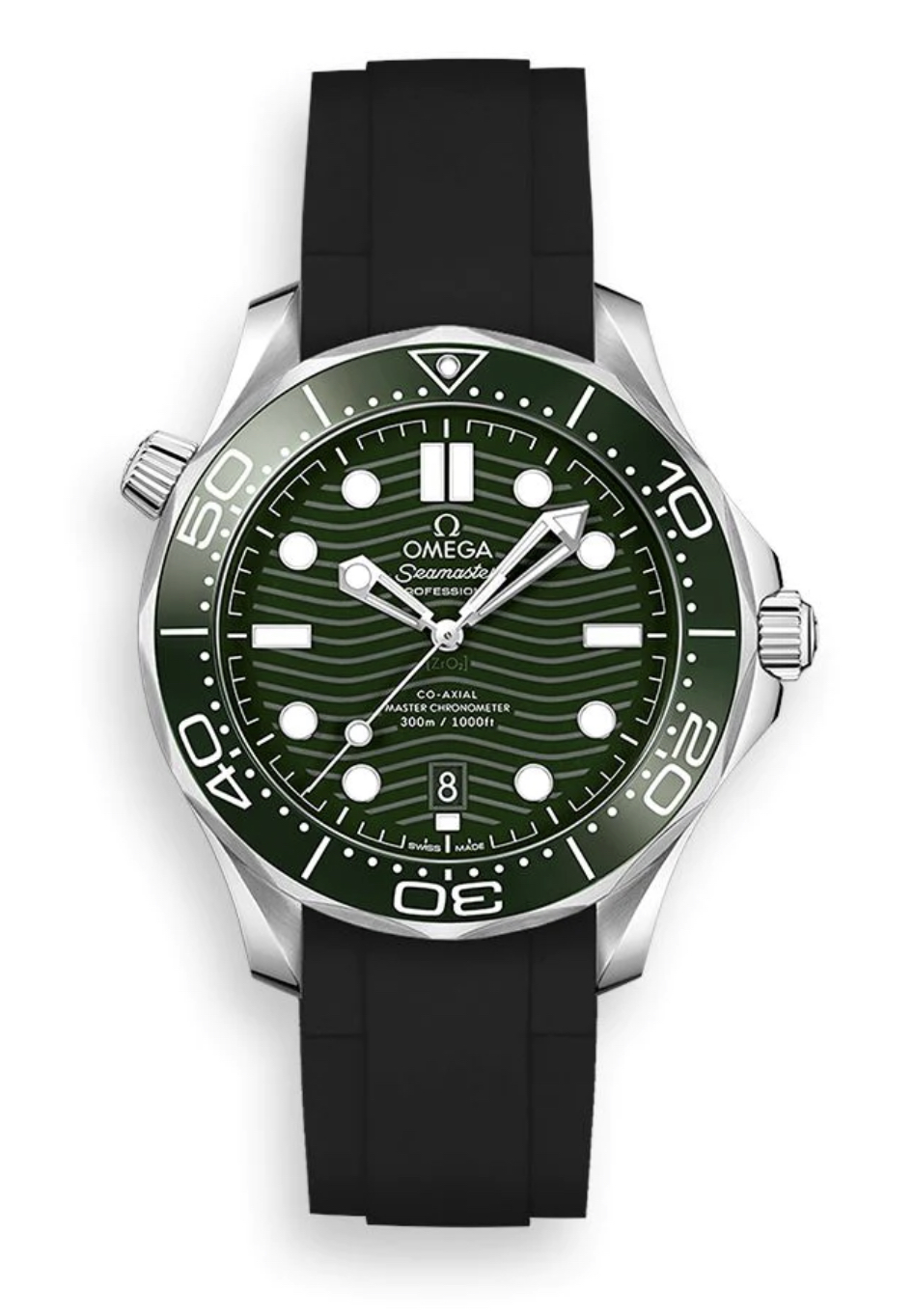 I have a black rubber strap too from another brand that I put on my green SMP300m every once in a while and I think it works great.
