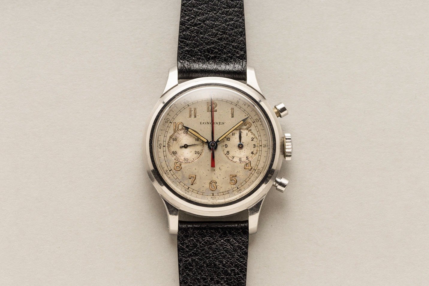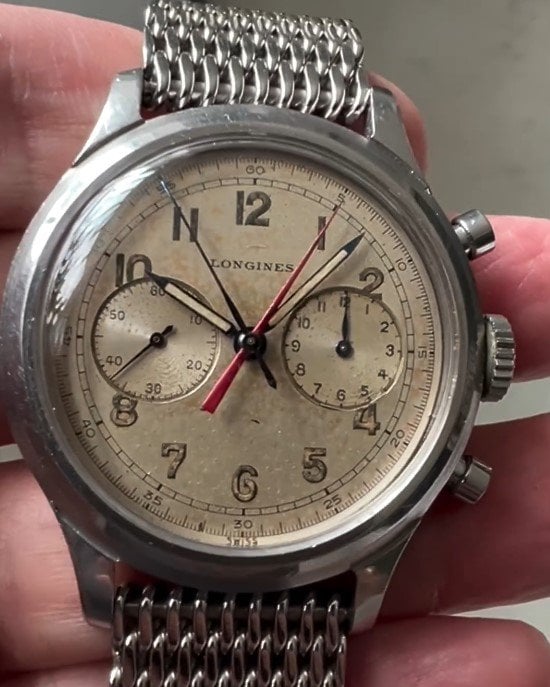 ··not the sharpest pencil in the ΩF drawerInteresting to see this nice snail dial just sold for USD 78.125 incl. fee. Link: click. I know specifics of 51 examples but have only 1 other snail dial on record, which sold for EUR 156k in 2019 (see: click). Cleaner dial but replaced minute hand and not matching (also perhaps relumed as well and what about the right index print...)! Of the 51 I know at least 6 are not matching (but 1 could potentially be rematched) and even the one in the Longines museum is not(!) so this is a bit of a known issue with 5699's 😉