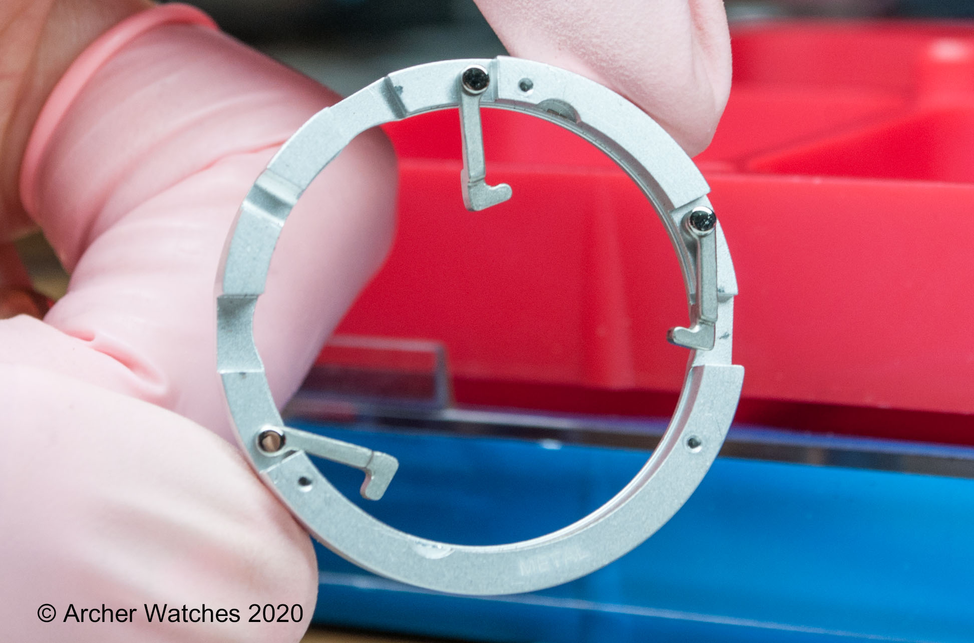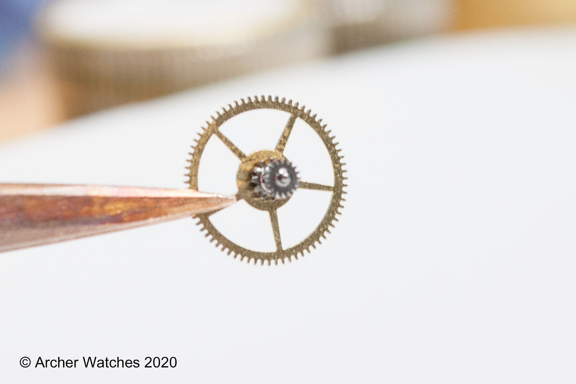 Small levers are used to transfer the motion of the pushers through the spacer, to the movement: