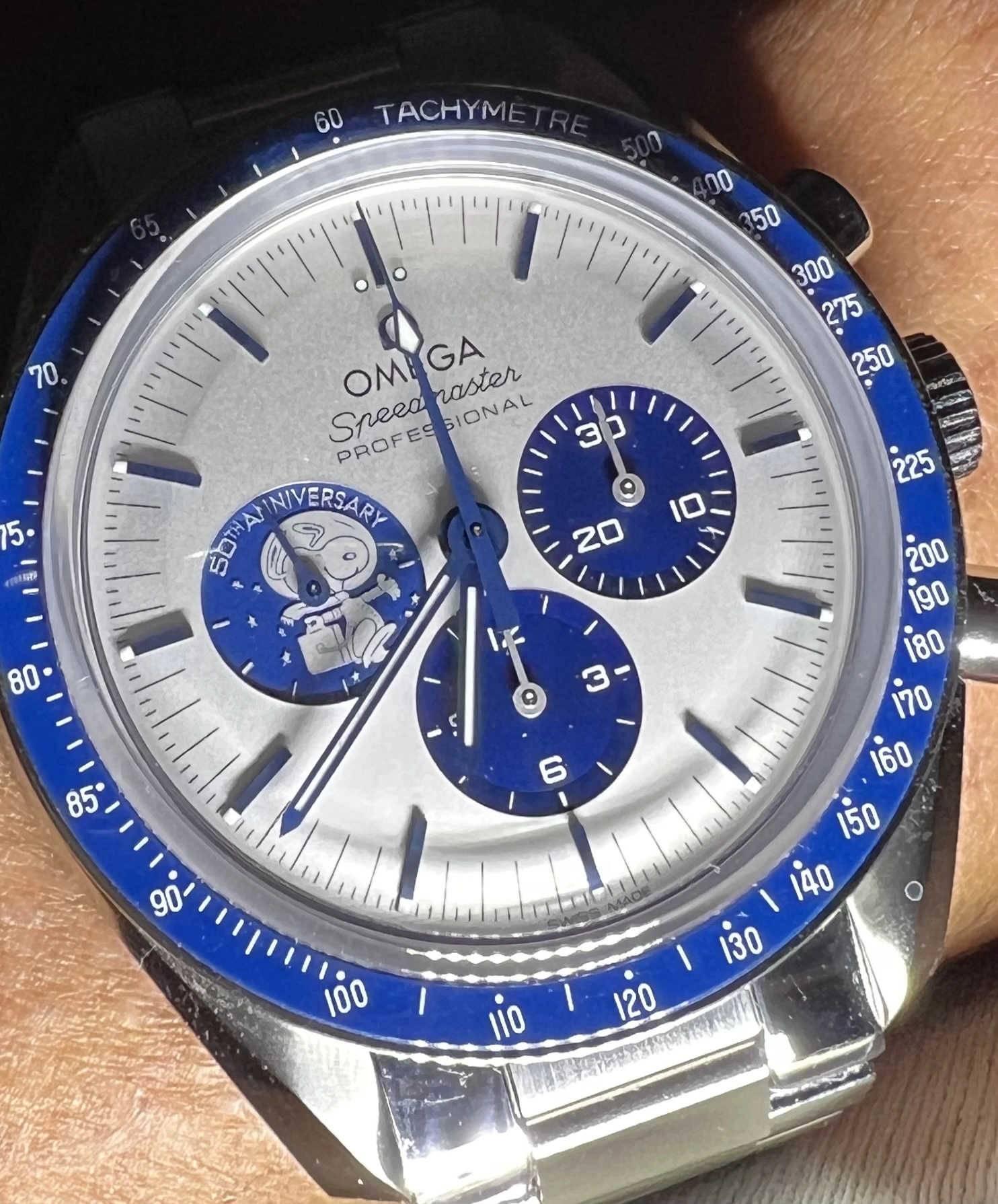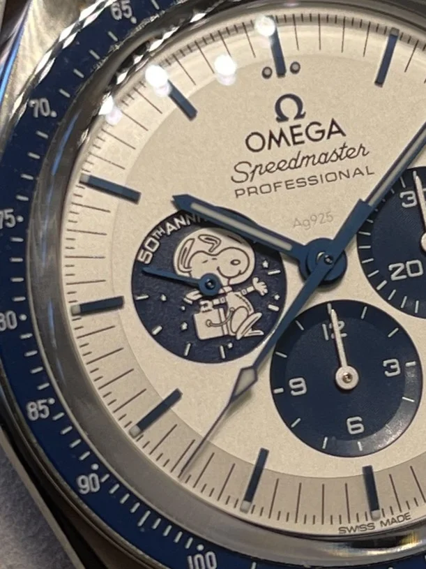 That dust would really bother me, has it been there from the get go? Maybe it's the pic, but the blue on the Snoopy dial looks lighter than the other two, it should be dark blue. If you are going to get the dust taken care of I would have the dial replaced. Omega can do better.