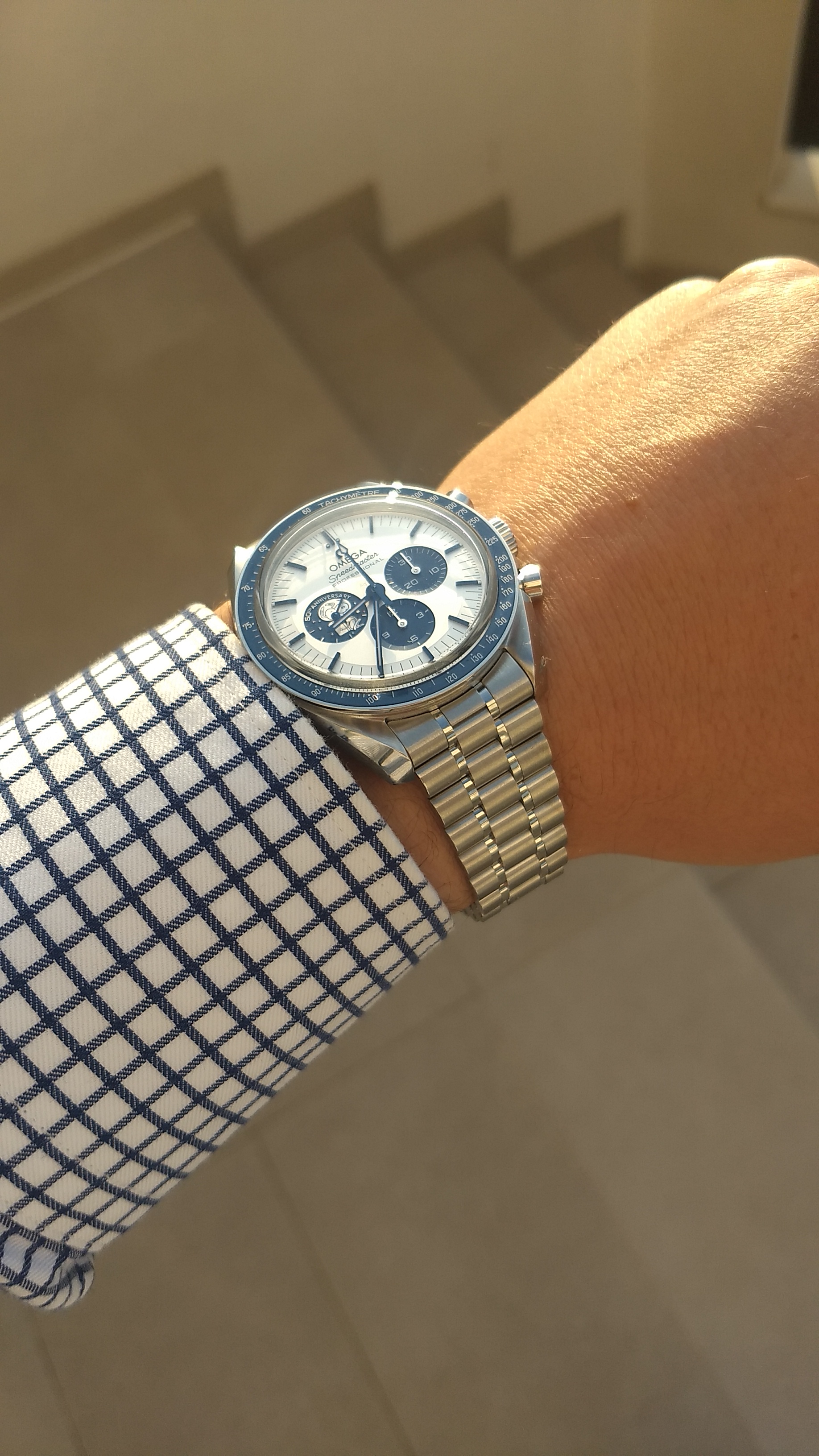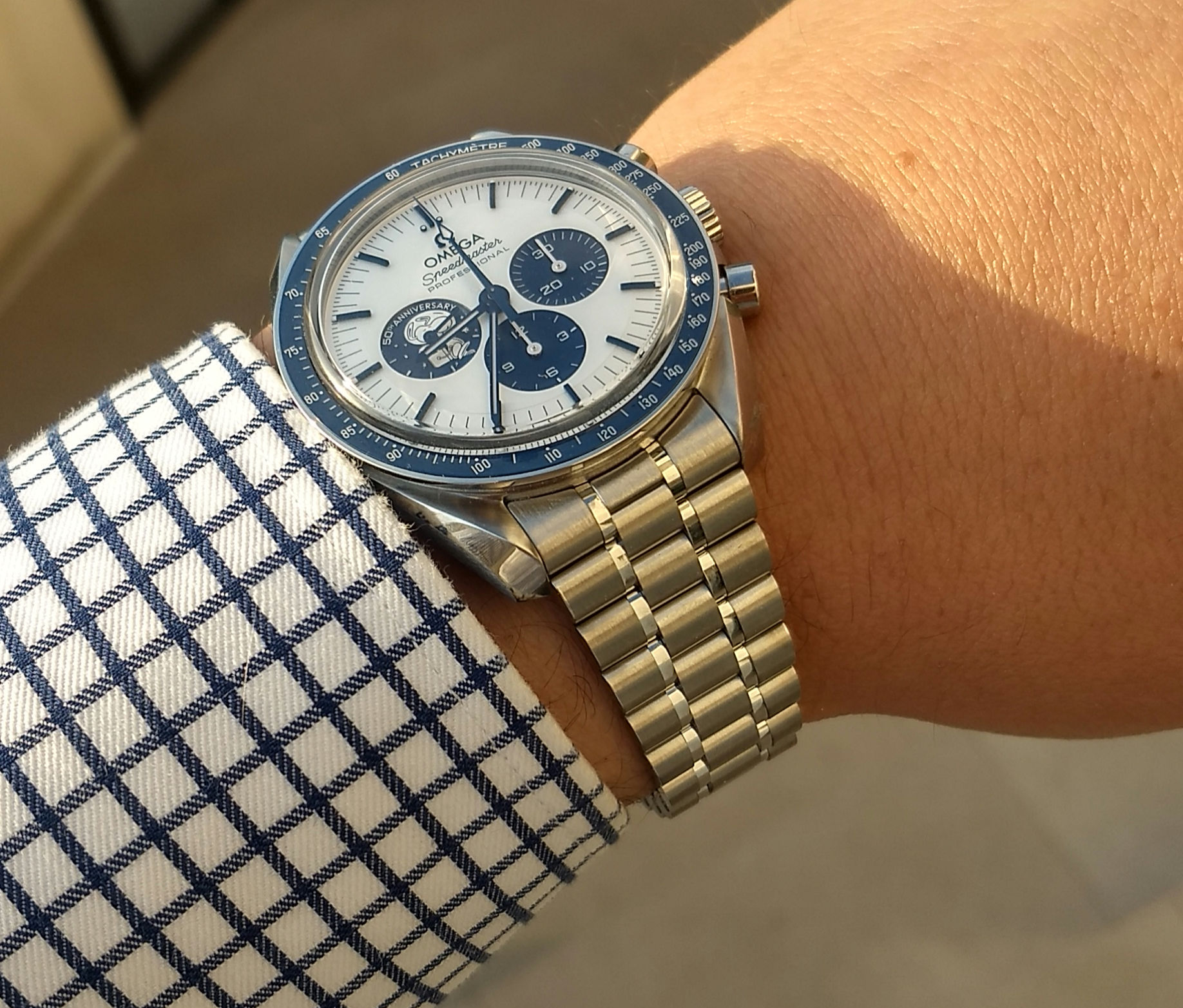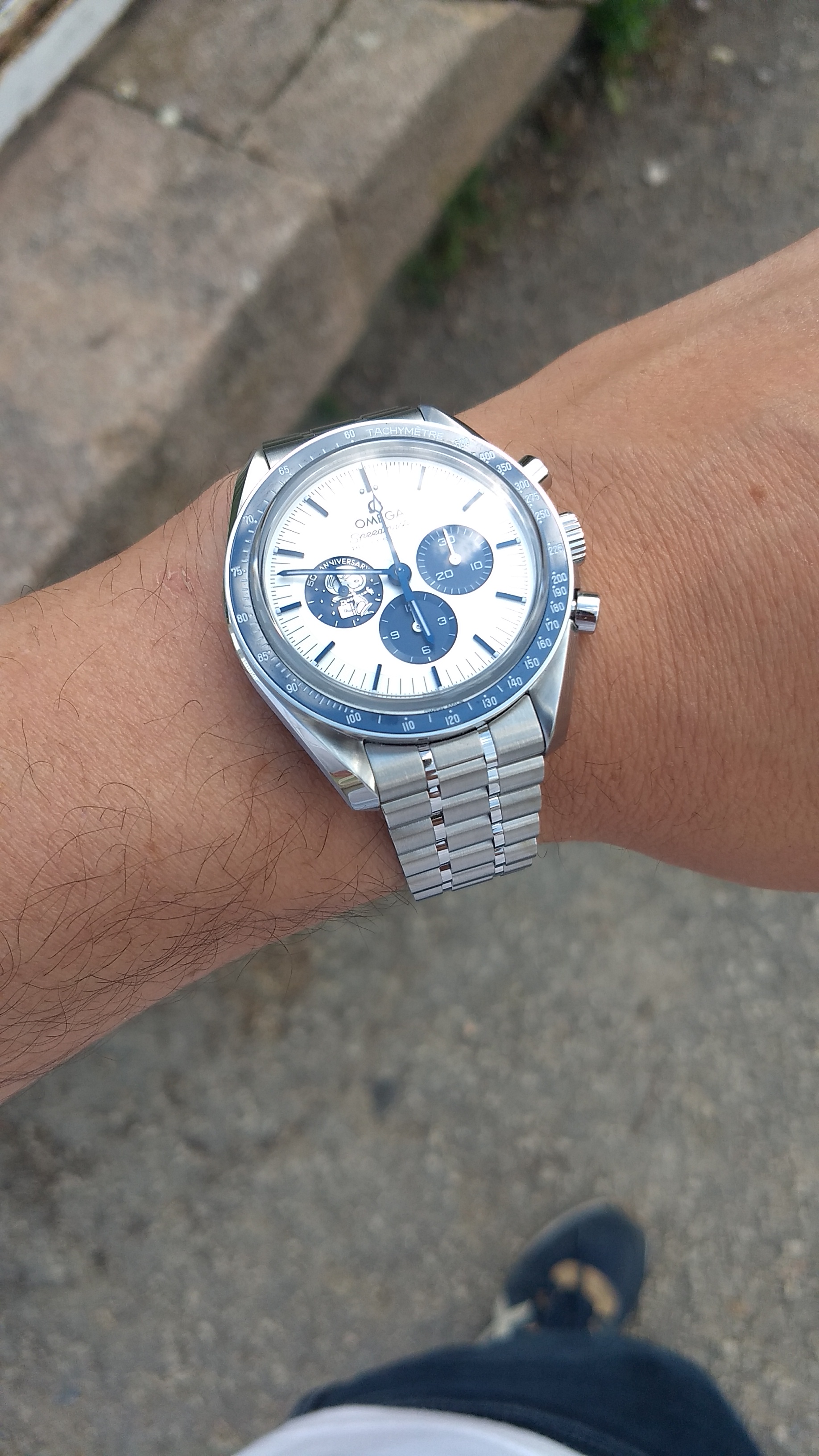 Beautiful watch. i wonder what it looks like with the flat bracelet though. i really like the flat.