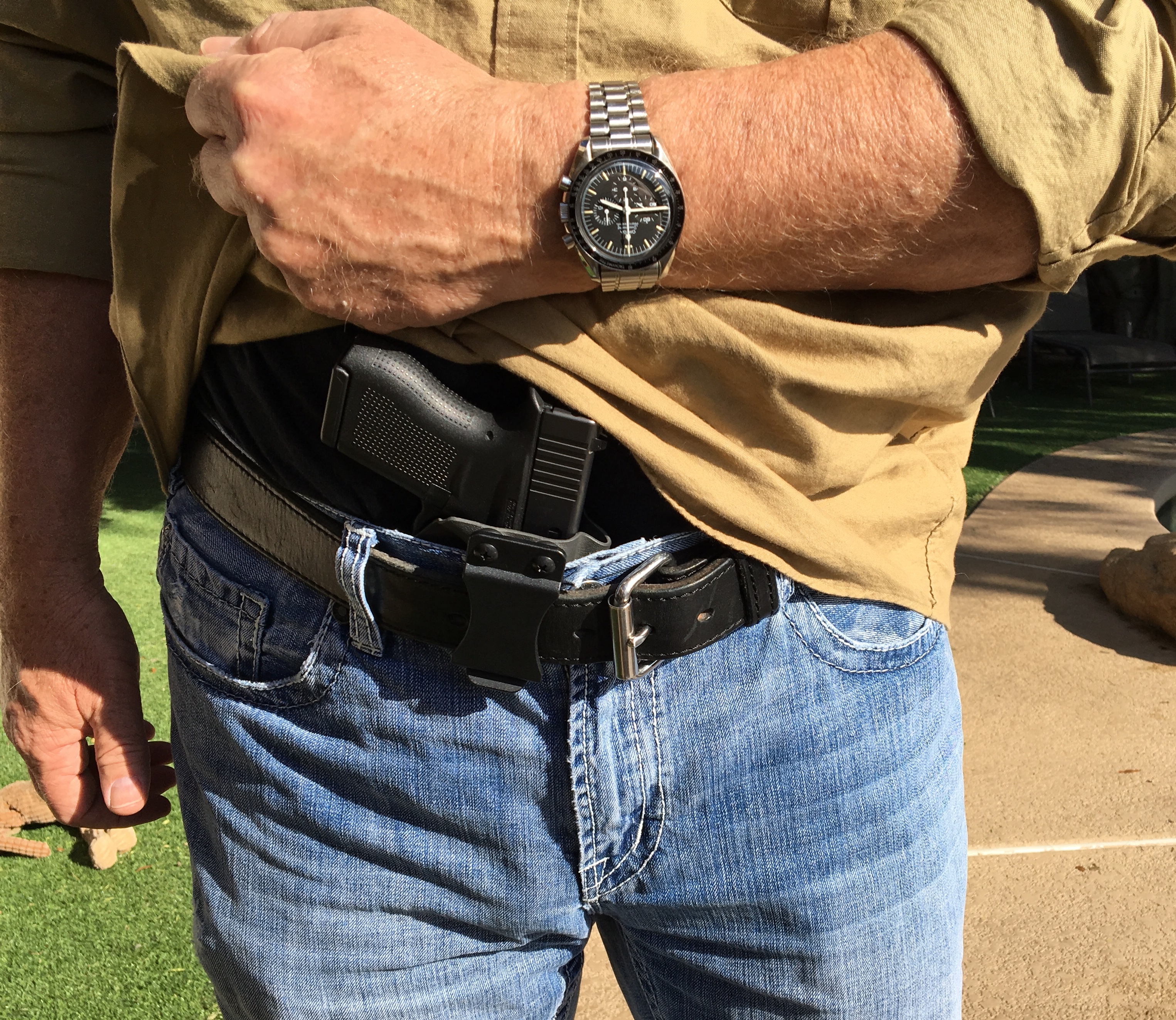 Scares me! I want to keep all my bits. I'm especially not tough enough to carry a Glock in such a fashion.