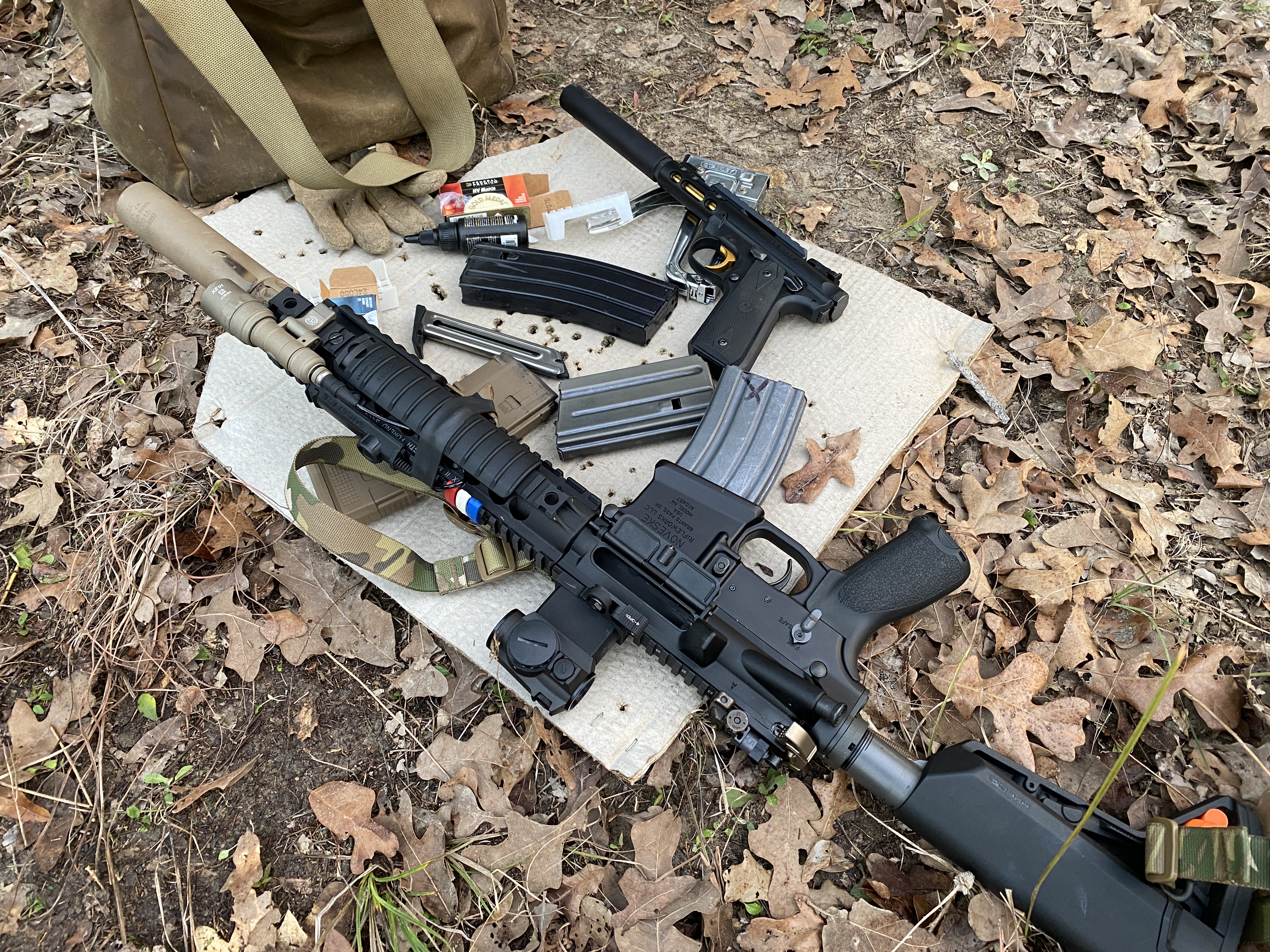 ·Took my 10yo out to shoot the Ruger MkIV. His first time shooting it suppressed. SBR is still a bit too heavy for him though.