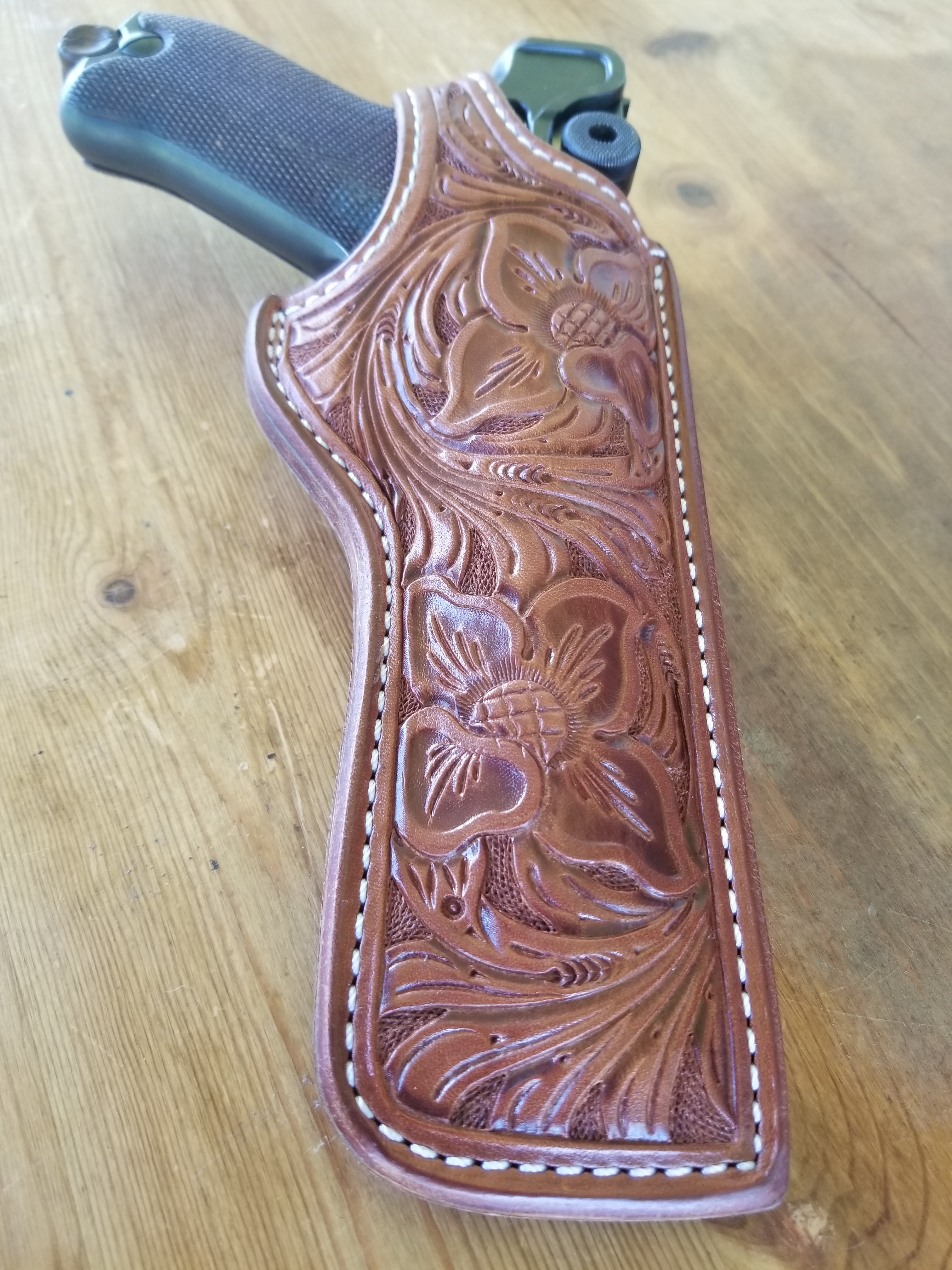 I remember a very similar holster marketed for the Colt Woodsman in the 60's, a classic design.
