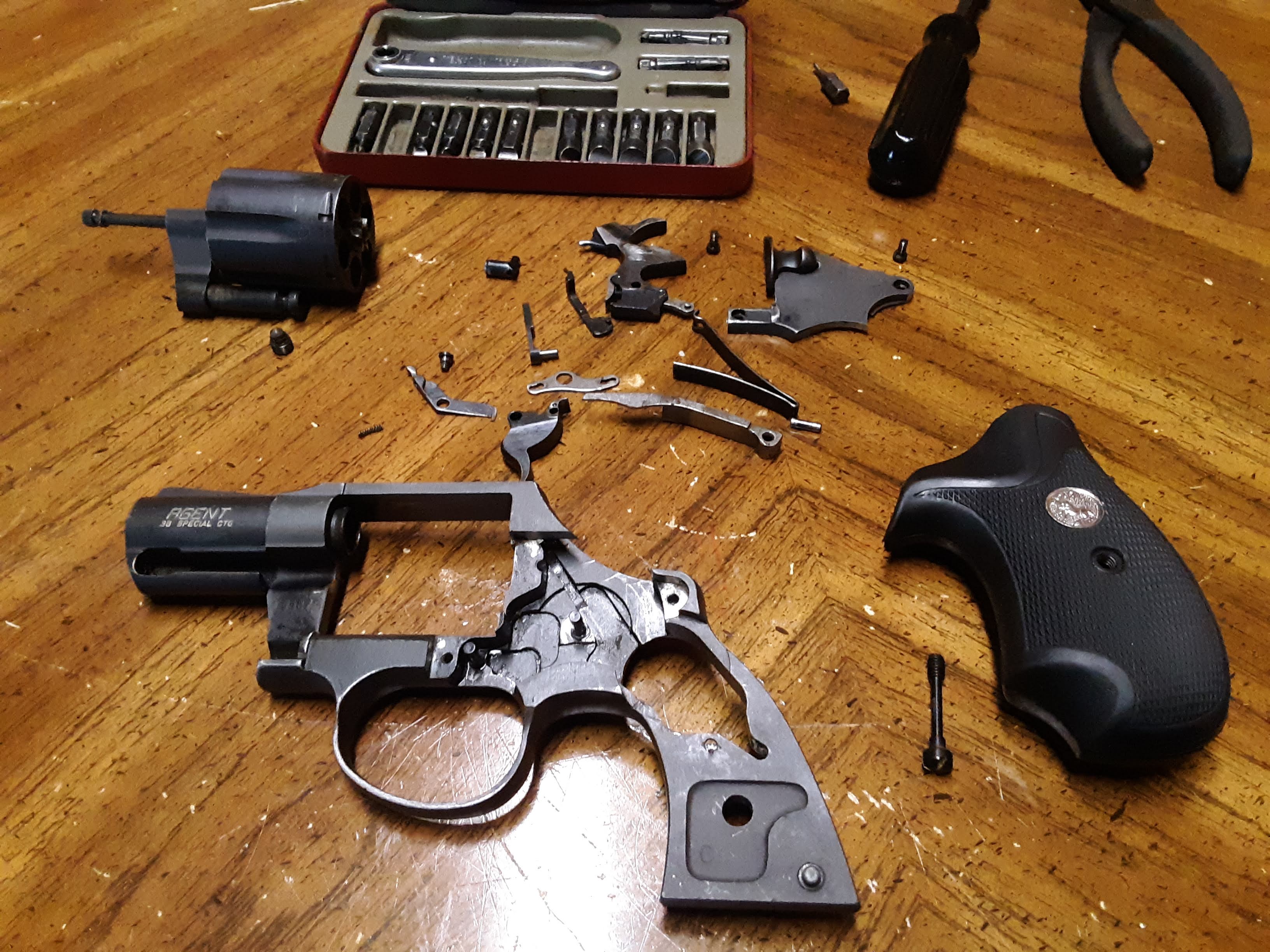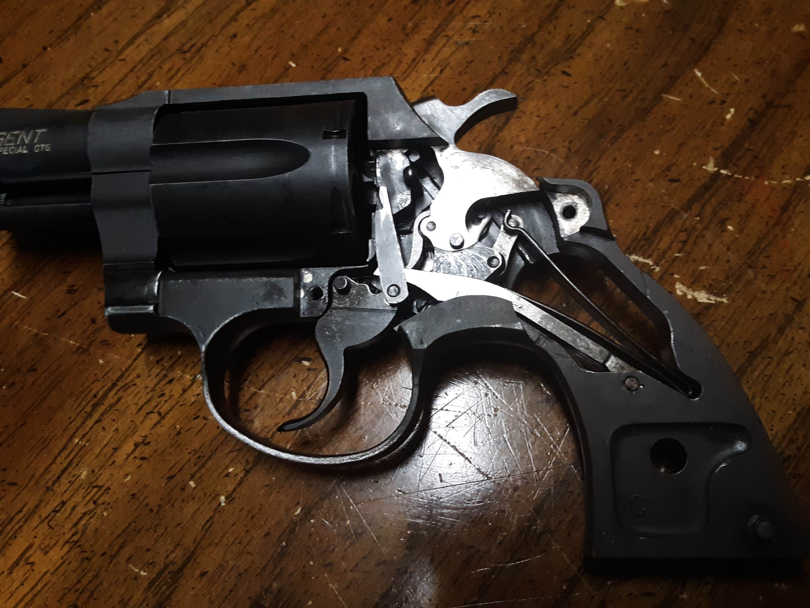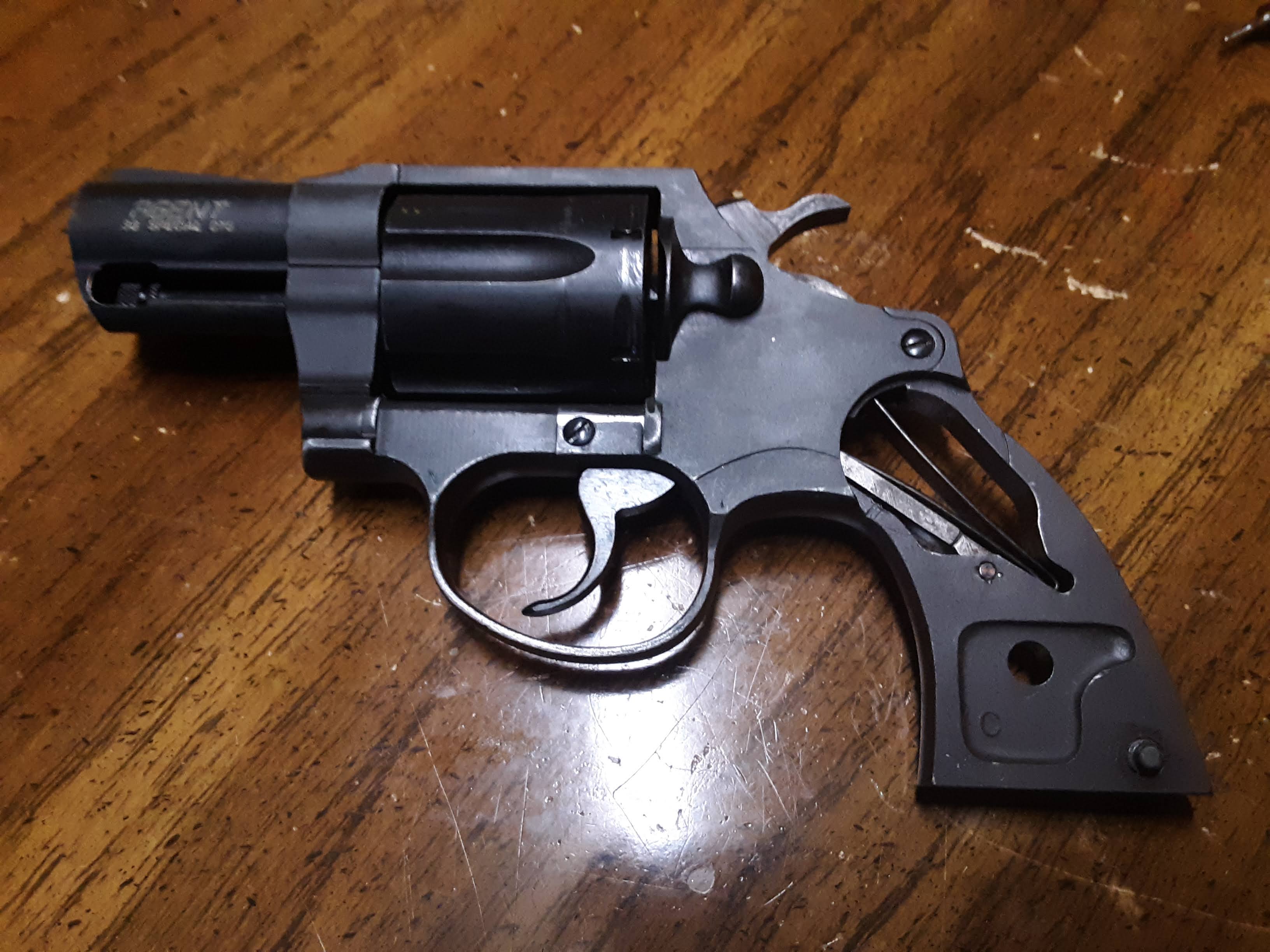 The Crosman 38T and 38C CO2 revolvers were originally marketed for Airforce and Civilian police training. I have several of those in my collection, and learned a lot about handgun shooting from these.