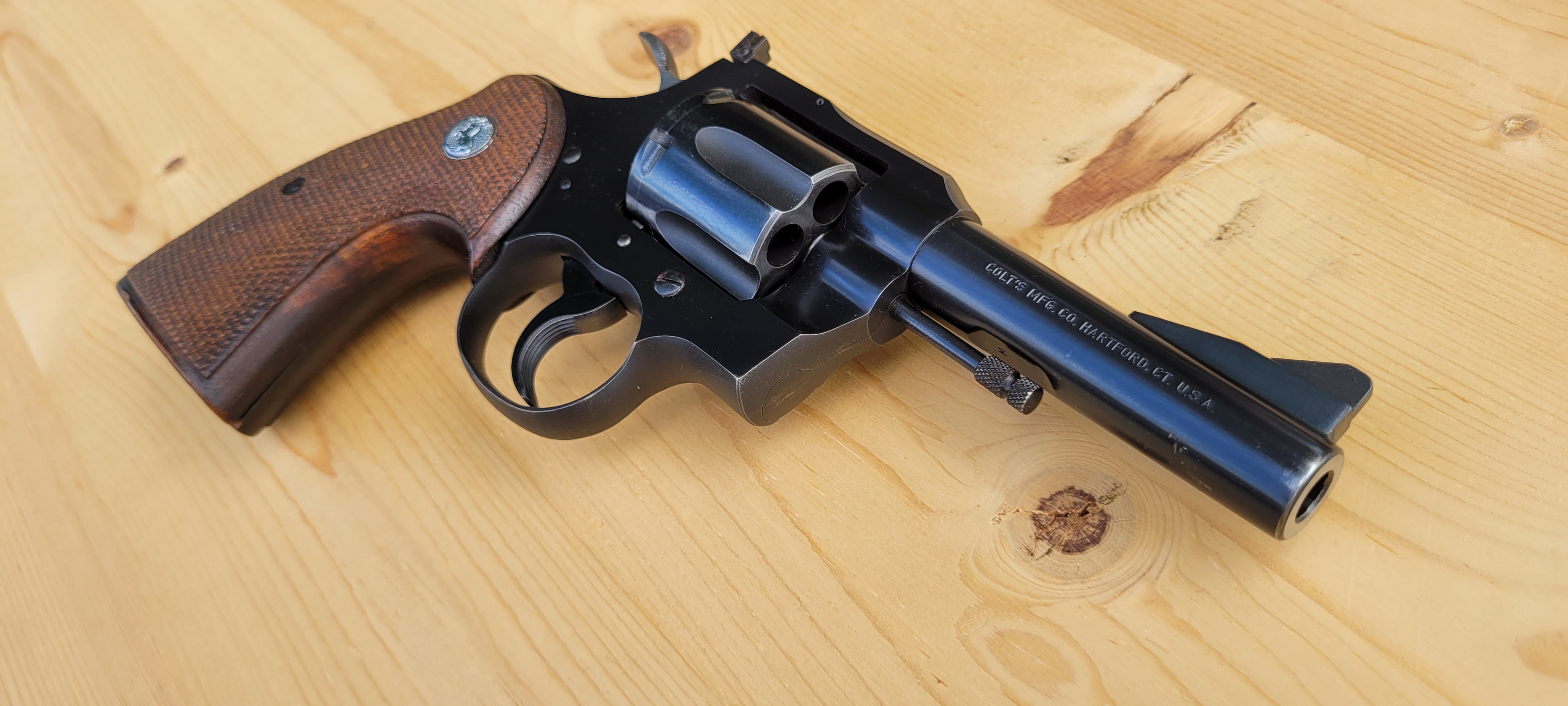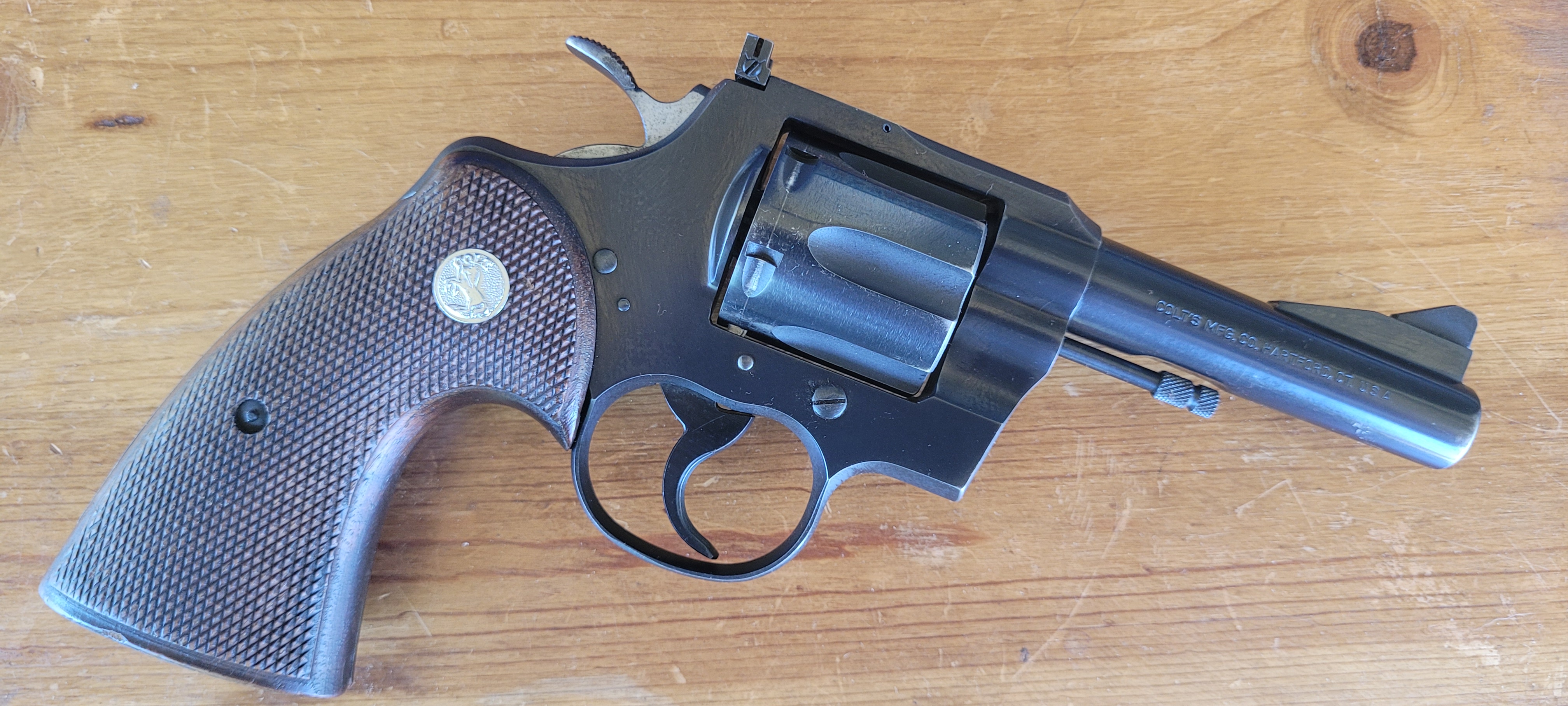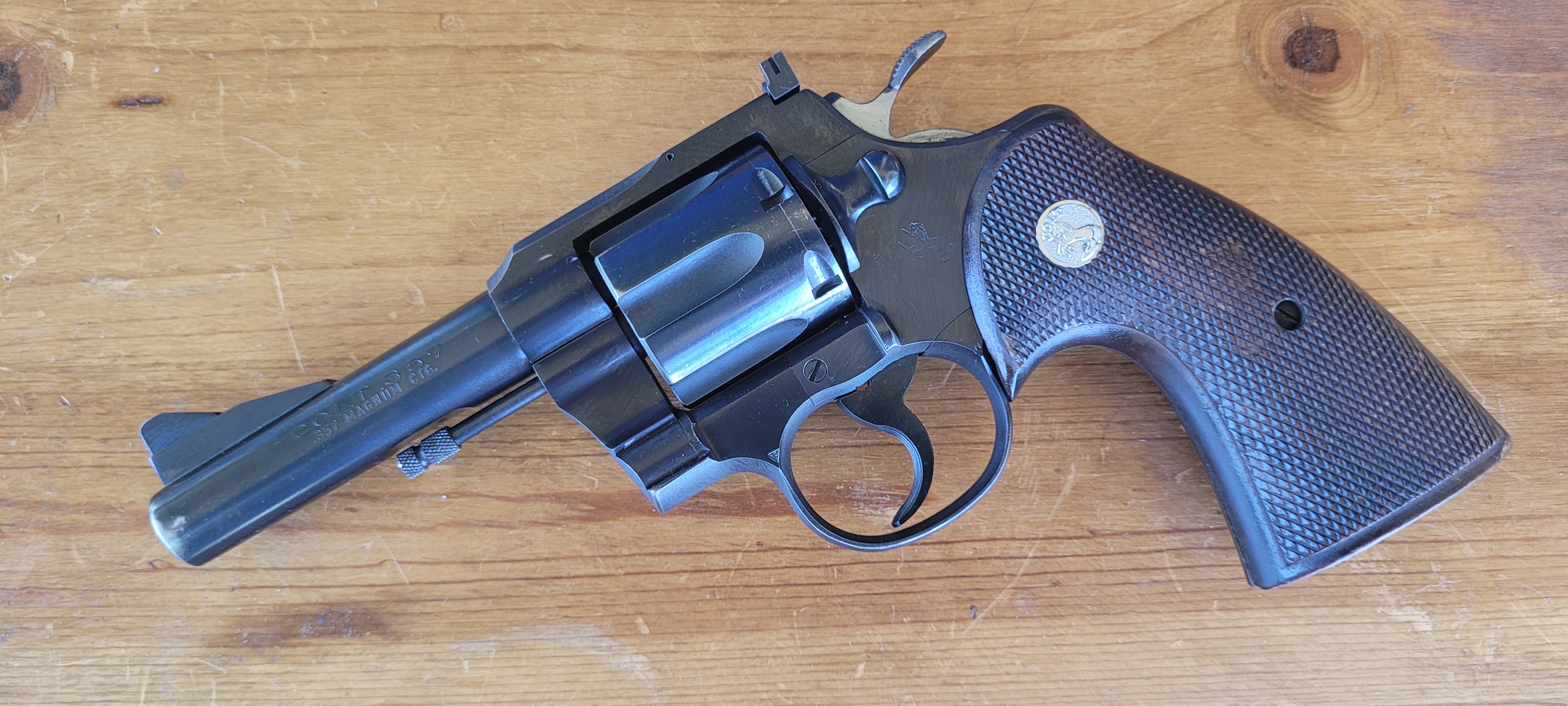 The predecessor to the Colt Official Police, this Colt Army Special dates to 1925 and is less common because it is chambered in .41 Long Colt rather than the ubiquitous .38 Special for which the great majority of these E-Frame Colt models were chambered. The .41 Long Colt is long obsolete, but I handload for the cartridge so shoot the hooey out of this one.