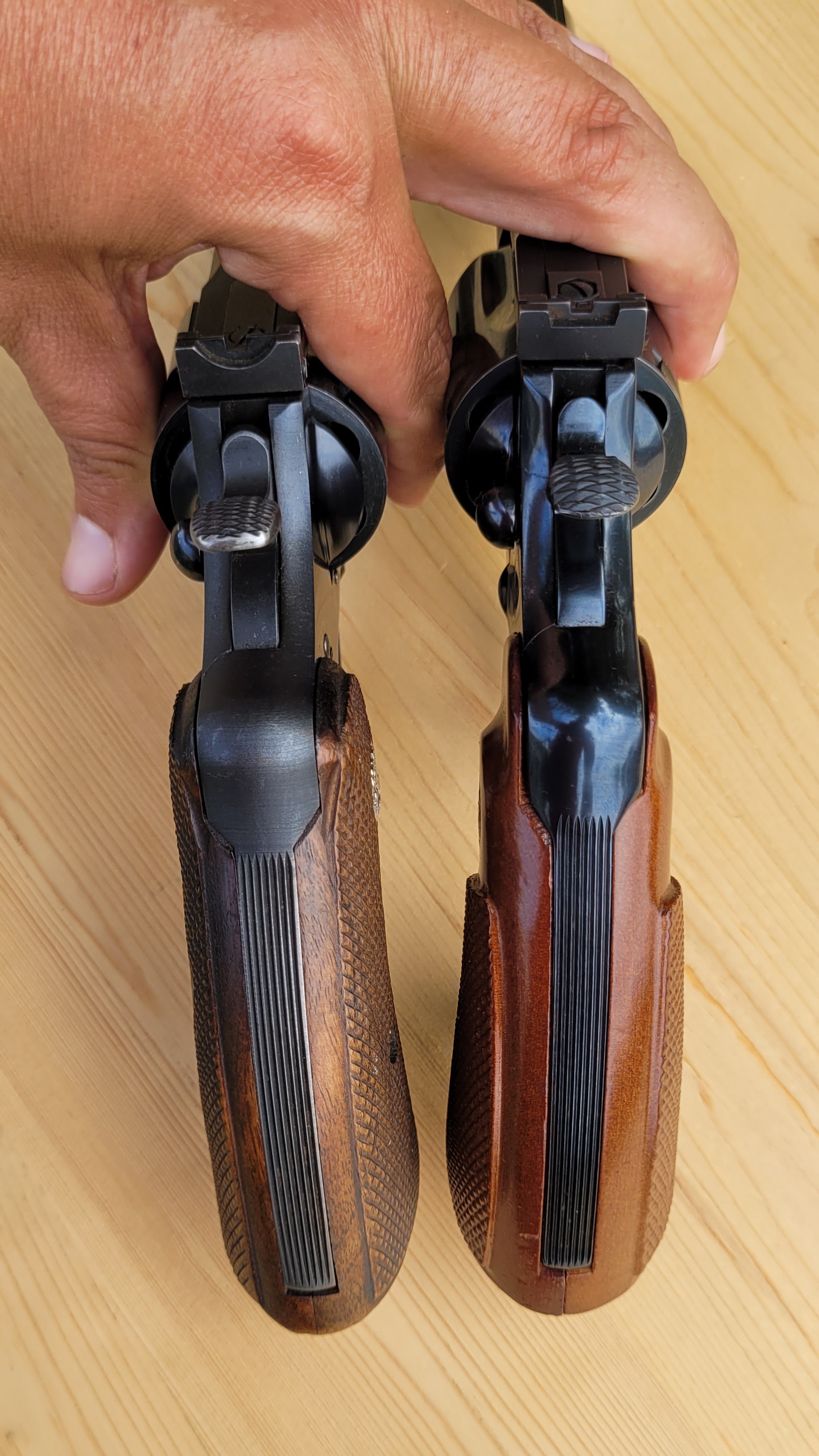 My trigger guard has a spot of honest holster wear on the trigger guard finish. This 3 5 7 was a working gun for a lawman.