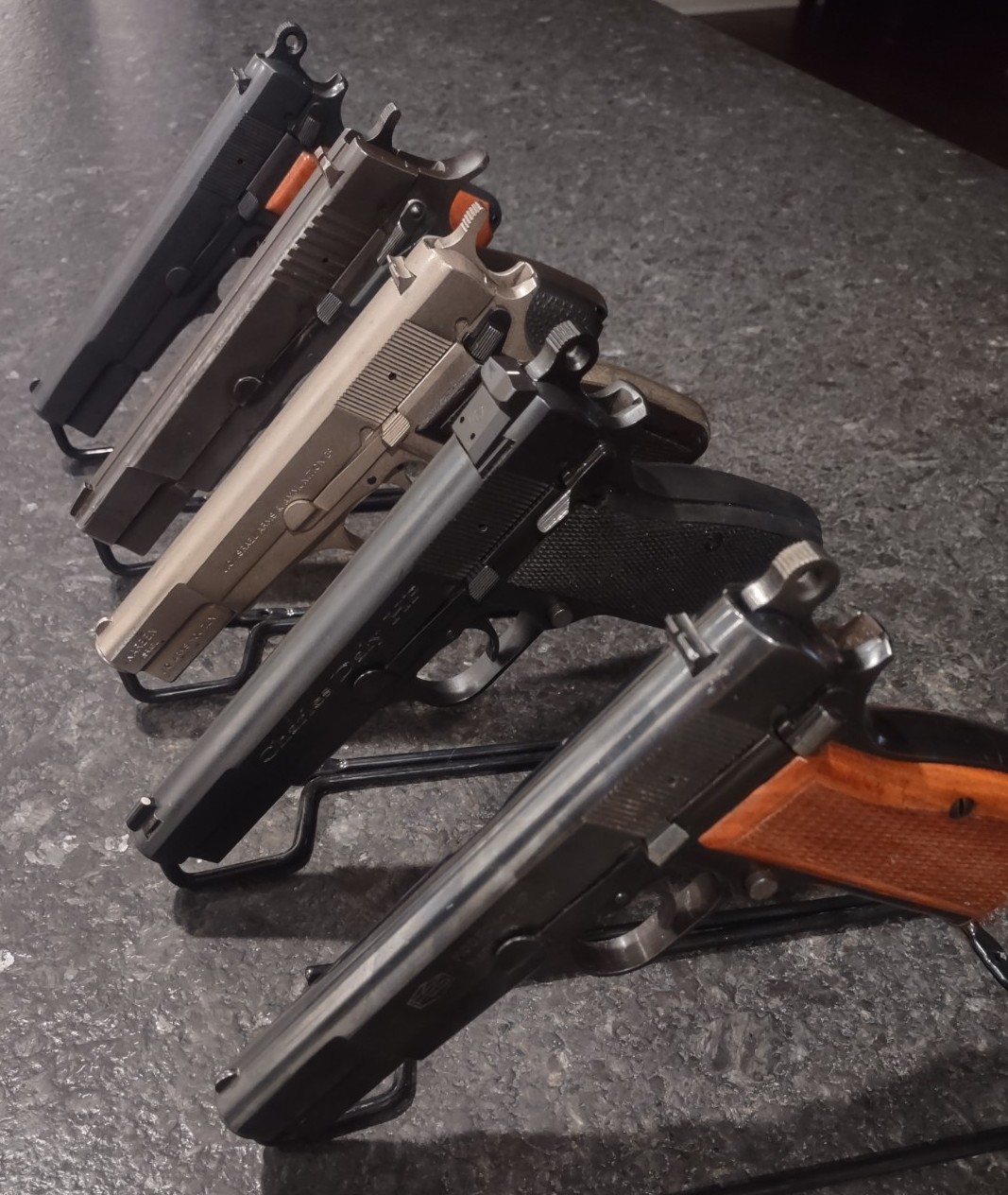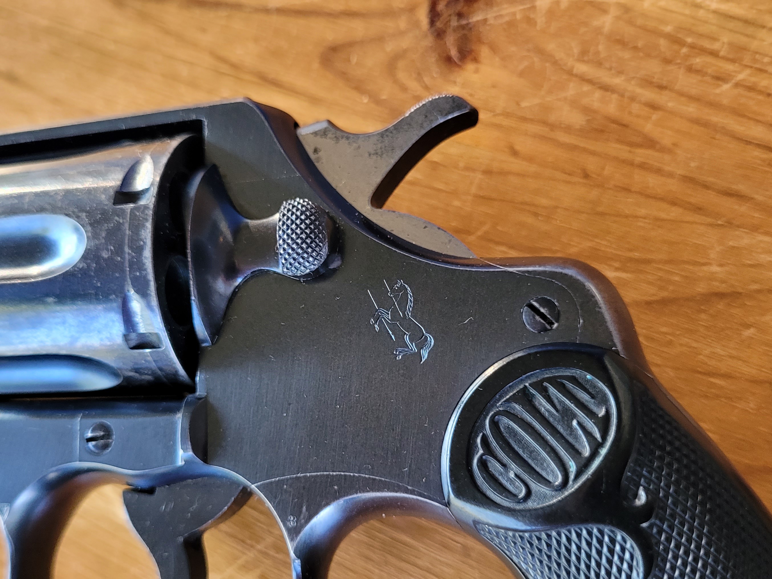 I just picked up this little Colt Pocket Positive to add to the collection. It's from 1910 and in .32 Police Cartridge (.32 S&W). When I got it yesterday it was a pretty filthy gun with decades of dried up oil that had turned to shellac. After a couple of hours with a copper brush, tooth picks, and q-tips, it finally is looking pretty good and is in a very good functional state; the trigger is crisp, lock-up tight, and timing is spot on. Here it is before, during, and finally after clean up.