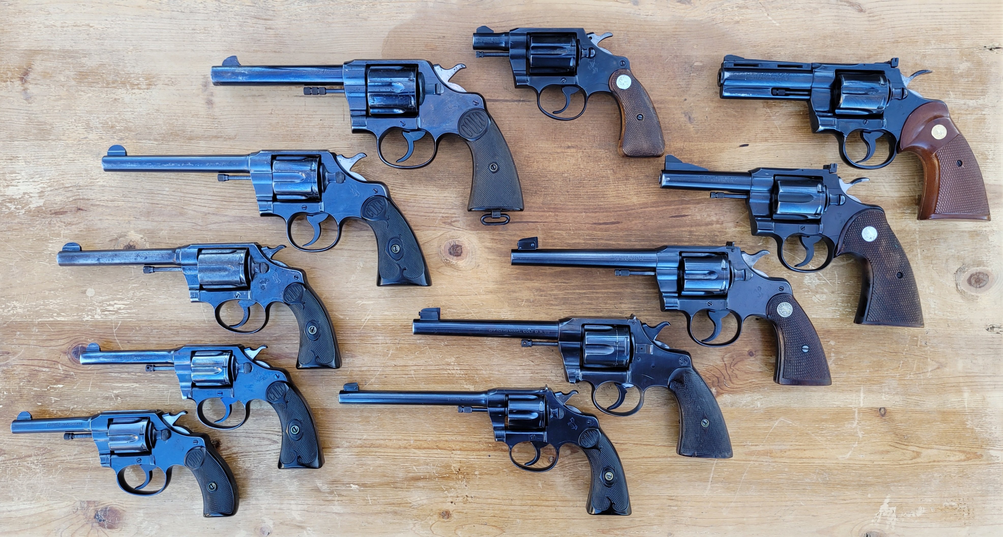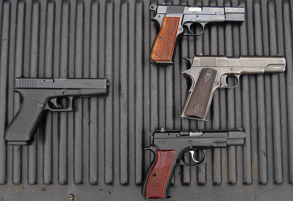 I greatly admire the three automatic pistols out in front: FN Hi-Power, Colt Model 1911, CZ 75. A single Glock lives here and I only acquired it so that I could better learn why i disdained Glock so ... and I did learn to better disdain them.