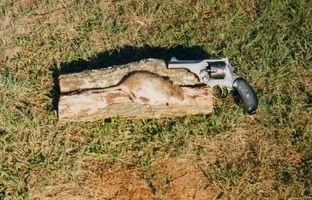 And yes, the 120+ Webley .455 is still taken seriously around here. I handload for .455 revolver and shoot the gun with mild loads. I also take it afield on rare occasions. A handy thing to know is that Webley .455 models will snuggle perfectly into N-Frame Smith & Wesson revolver holsters of the same barrel lengths. I have a few 4-inch Smith & Wesson revolver holsters on hand and the Webley infrequently rides on my hip when I'm out at our old family place on the lake. Once, I was there and mowing the yard around the old lake cabin, nearing the end of the chore. The tall grass was shrinking as I circled with the mower. Only a small island of tall stuff remained when a rat ran out of it, scampering across the mown portion to make his escape from the mower. Not wanting rats in or around the cabin, I snatched the Webley from its holster and snap shot the rat from about 10 feet as he ran, the big bullet grazing him, furrowing along the left side of his head, removing his left ear and left eye. It