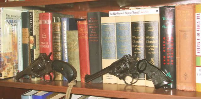 An old photo of the two Webleys on hand here, the "Boer War" gun and a 1944 vintage Mark IV .38/200.