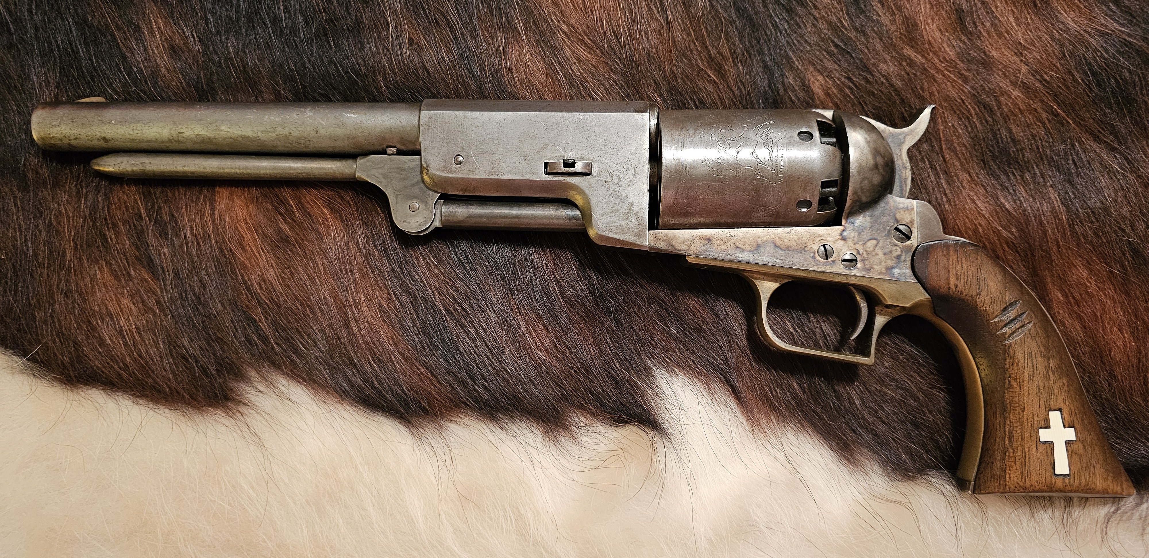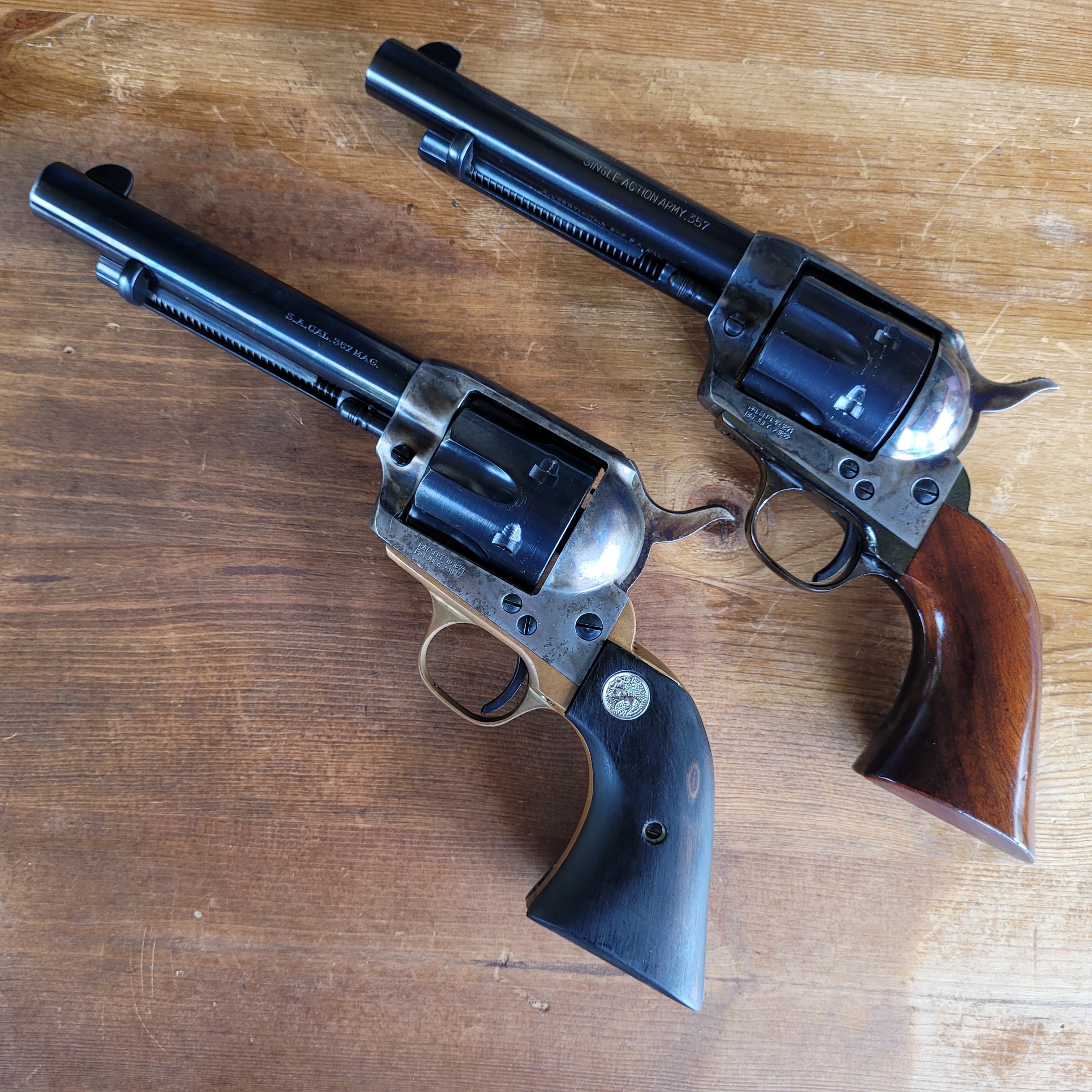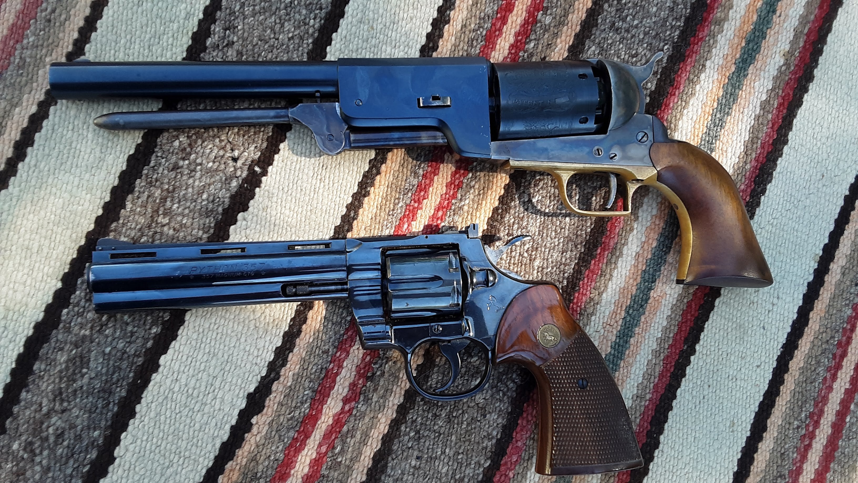Years ago, I did buy a hugely impractical gun just because it was fun, and I do love shooting it. Sadly, it seems I've not saved a photo of a target from it. It is a rather accurate revolver, especially when you consider the sights on it are rudimentary. The Armi San Marco, Walker! A true hand cannon weighing in at over 4# unloaded. The third picture offers up a 6" Python for a size reference.
