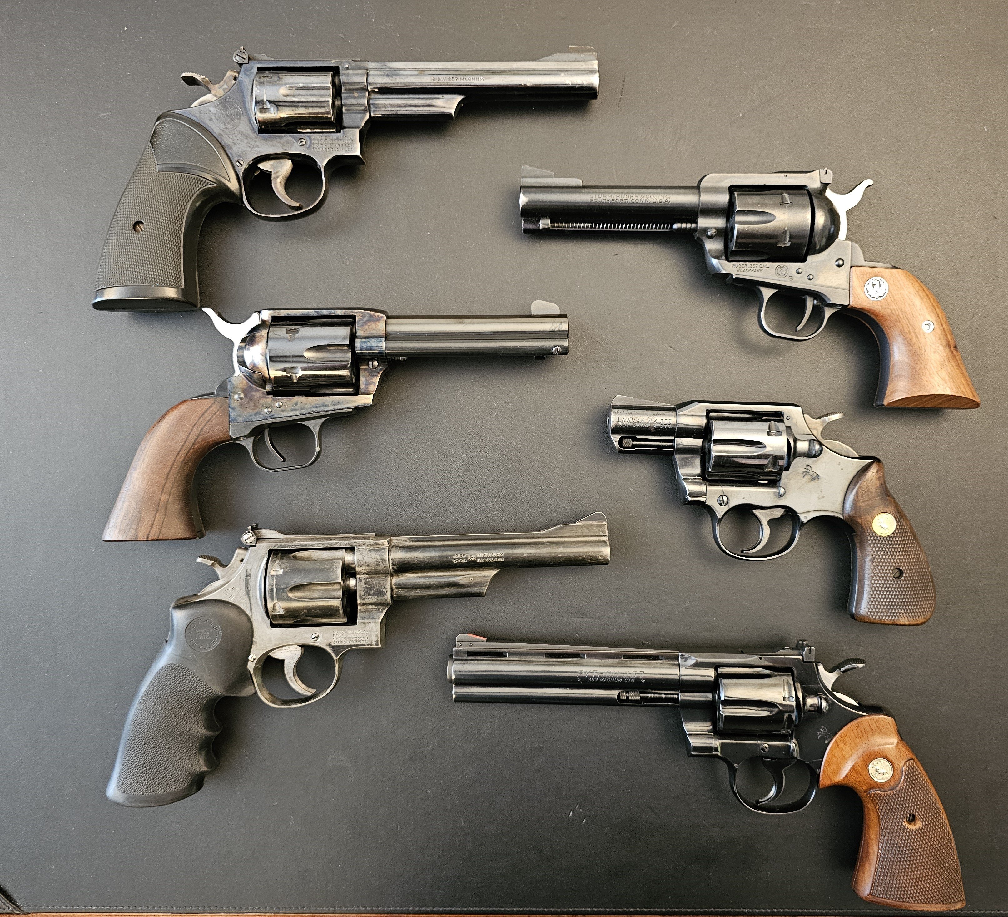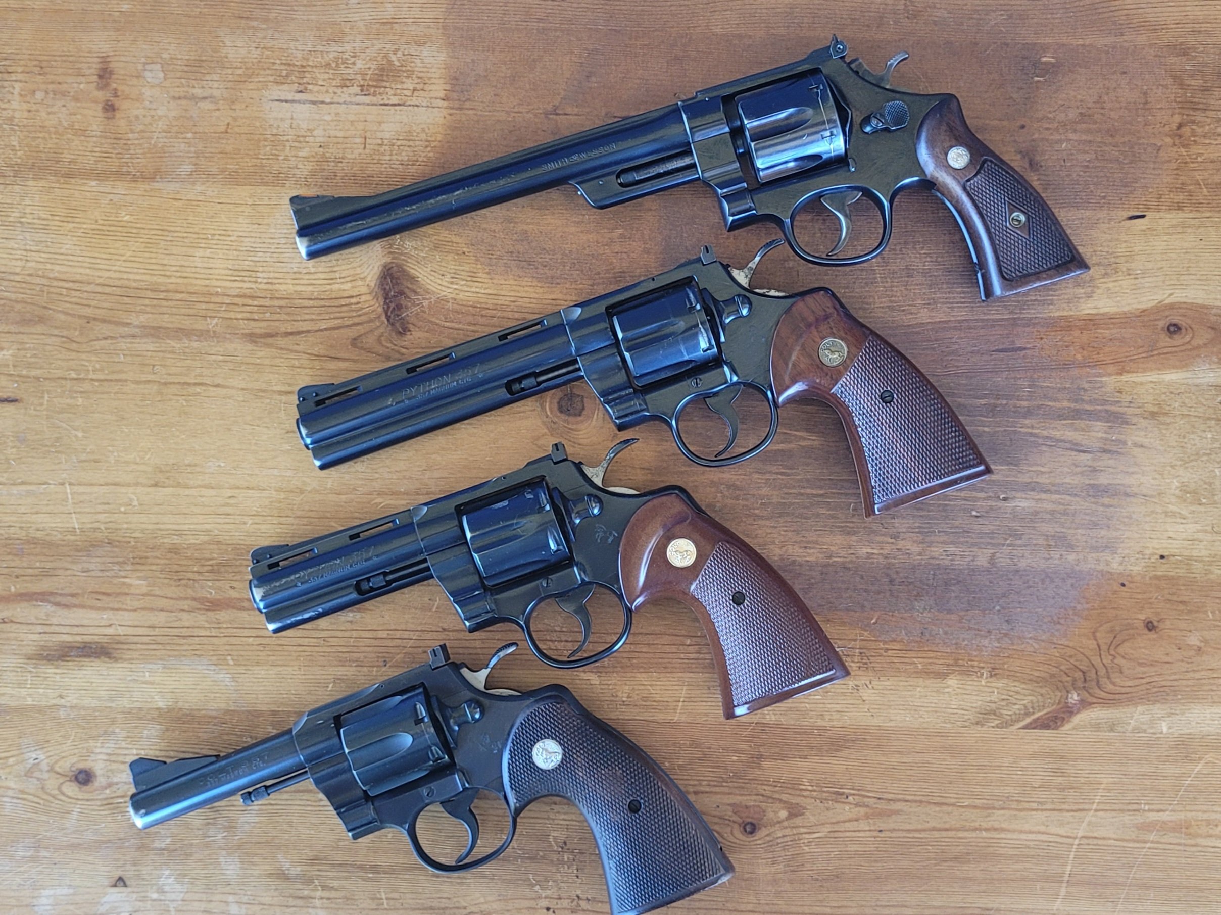 From top; 1954 S&W .357, 1976 Python, 1977 Python, 1954 Colt 3-5-7.