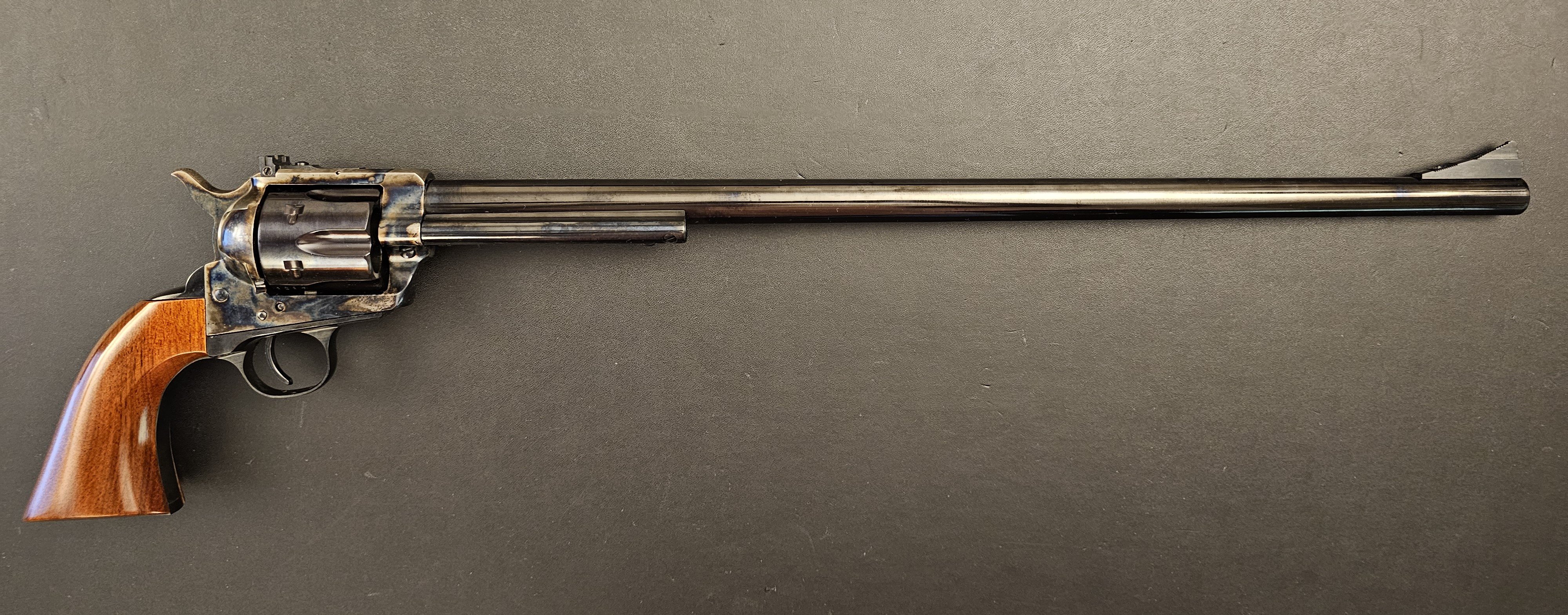 A hand load consisting of a case-full of Hodgdon H110 or a heavy charge of 2400 under a 158-180 grain bullet would build up a good head of steam in that long-snouted barrel of Wryfox's Uberti. A person would have a potent "side arm" indeed if he could contrive to tote it.
