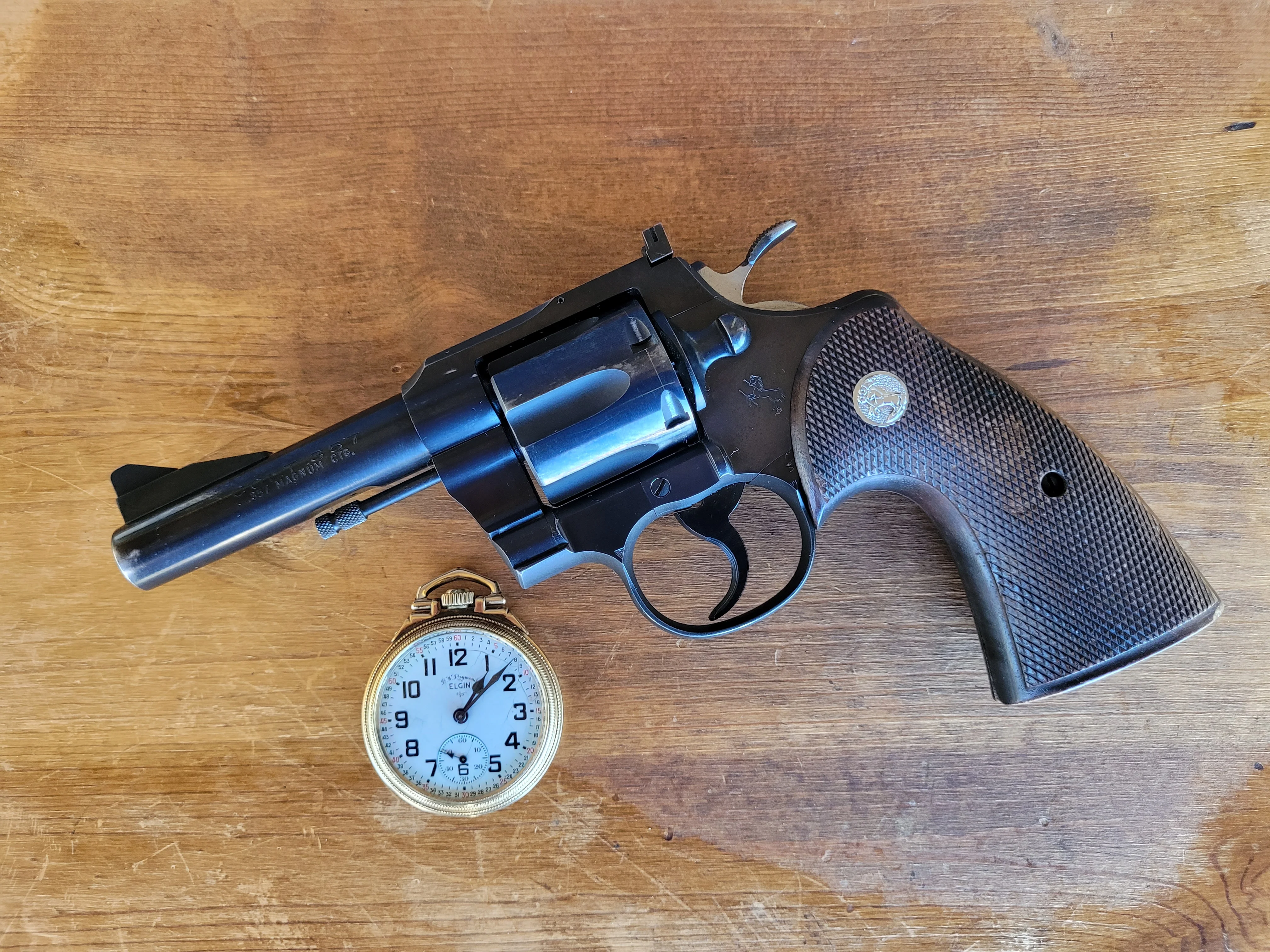 A 1954 Colt 3-5-7 and a 1954 Elgin B.W. Raymond.