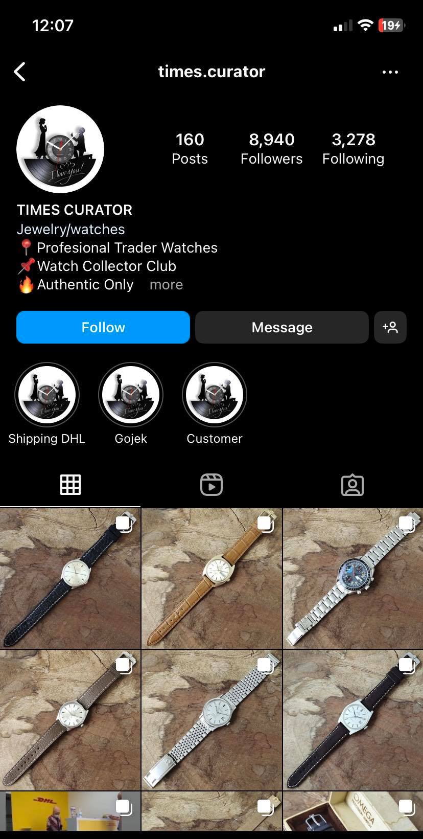 I found this account on Instagram that goes by @times.curator from Indonesia who had thousand of followers, highlights of screenshots of happy customers' feedback, of stops at DHL, Fedex to send out packages. This is not my first rodeo buying watches from Instagram, but first for vintage Omegas so I guess I got complacent as this account does seem legit like others that I successfully bought from and I also got too excited about a Gold capped C-case in good shape that has all the features I love: fluted bezel, linen dial...