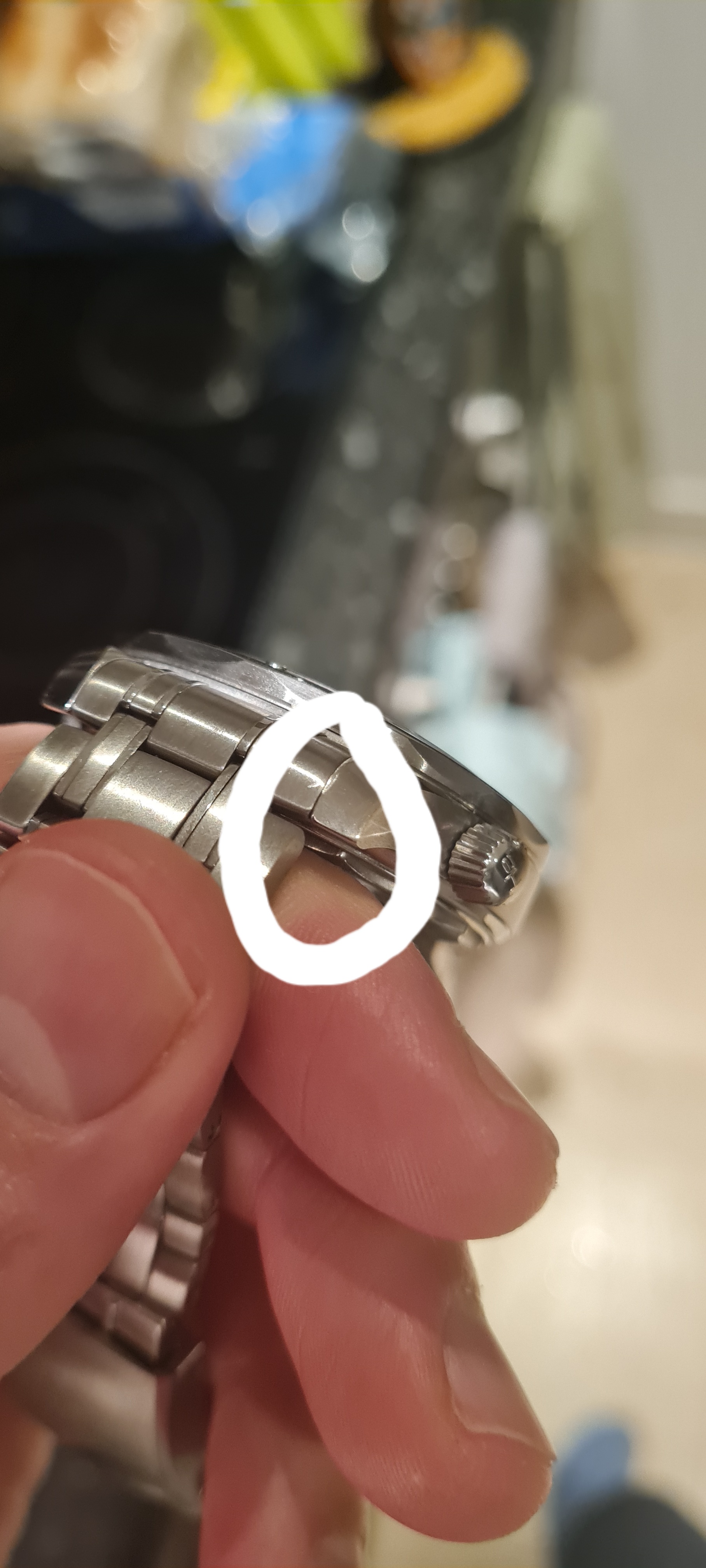 That looks like a scratch from strap/bracelet changes.