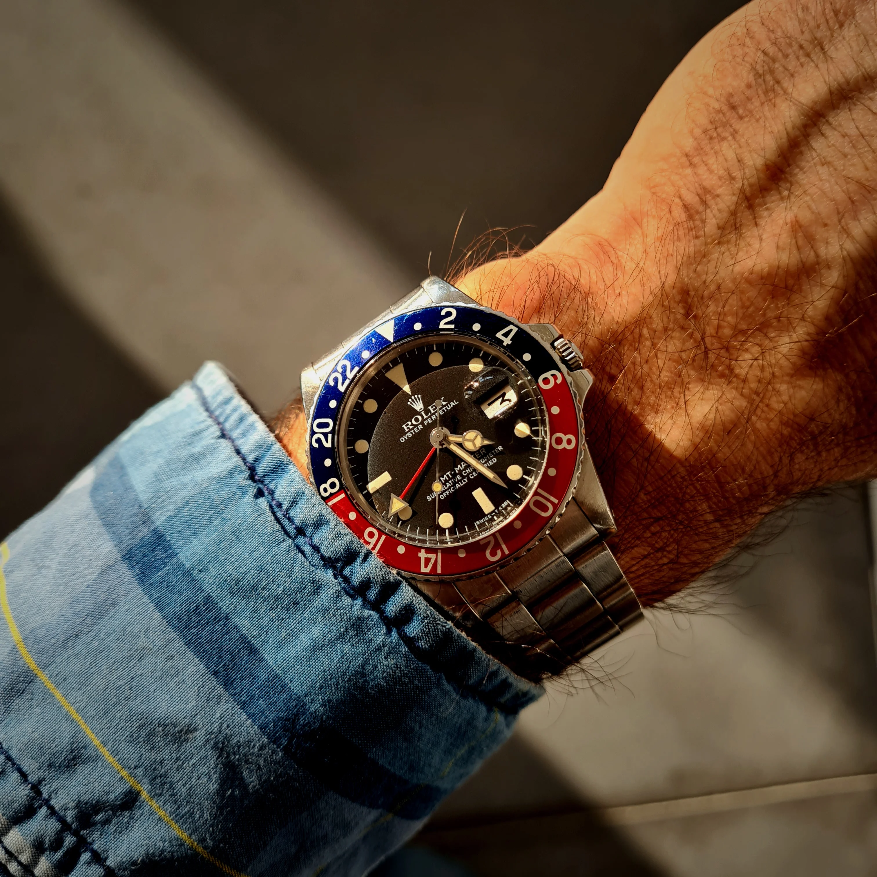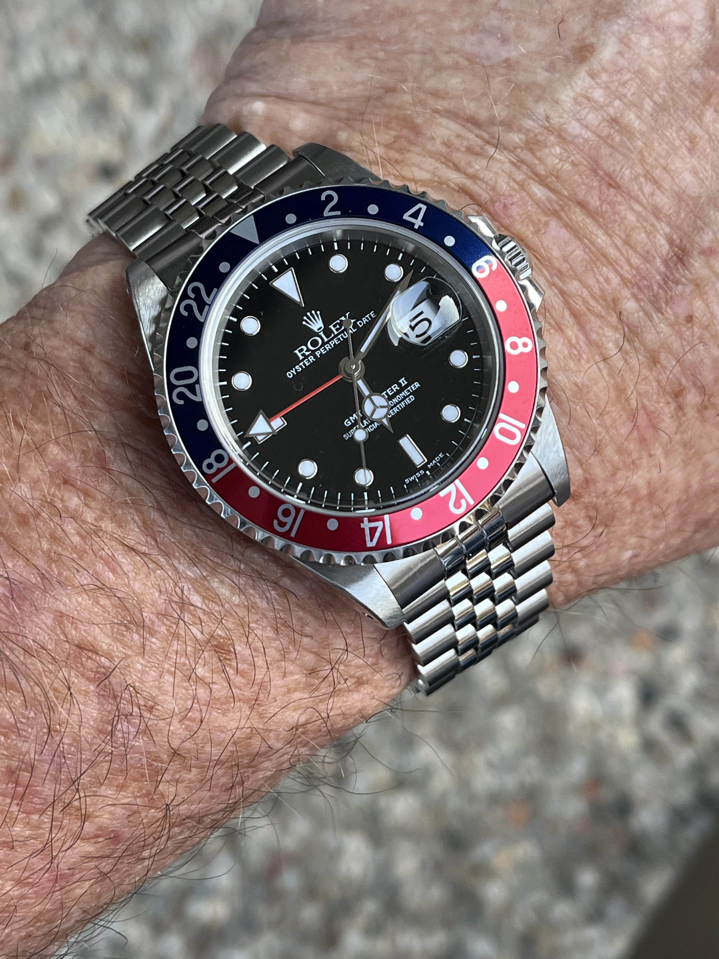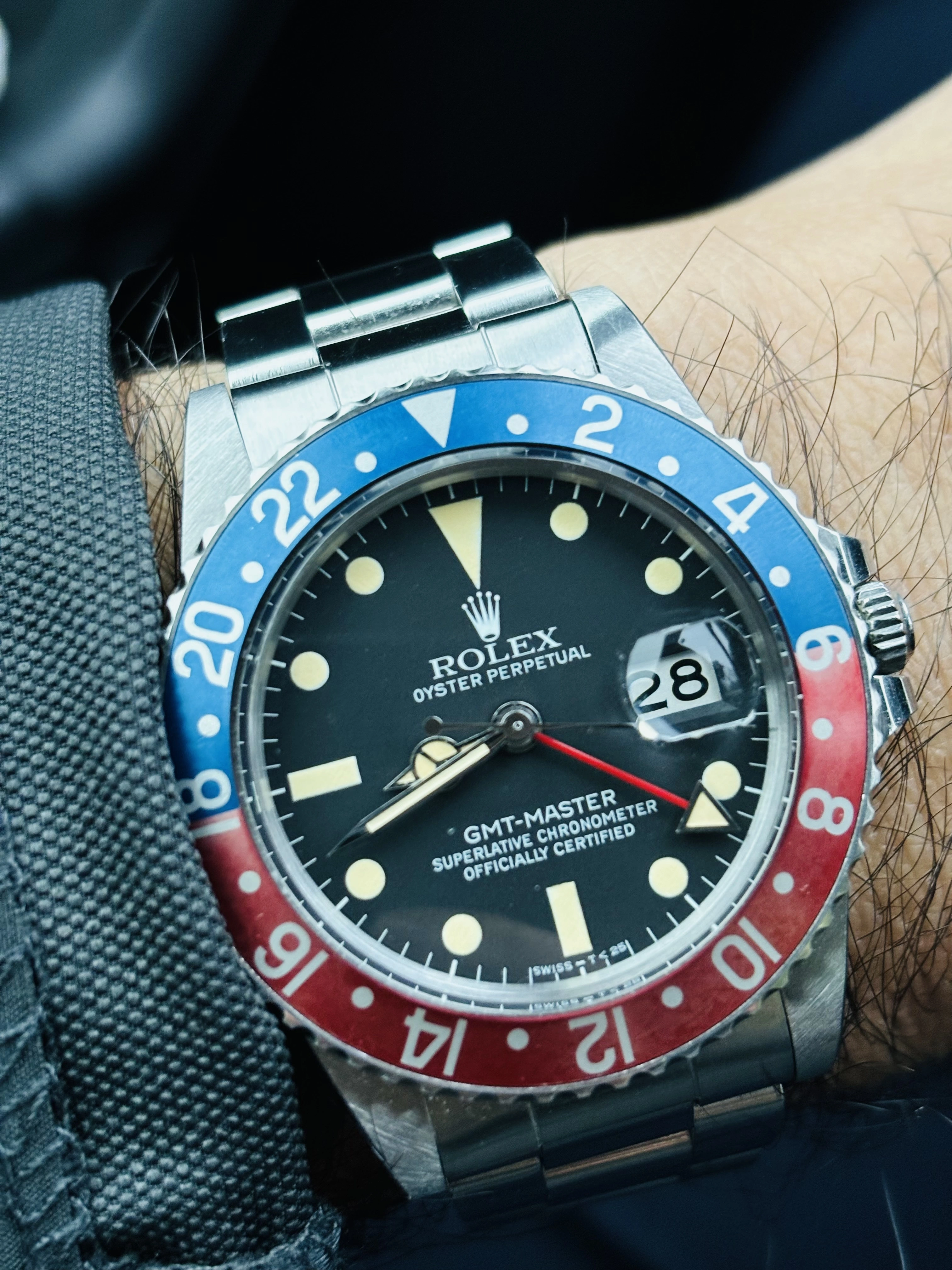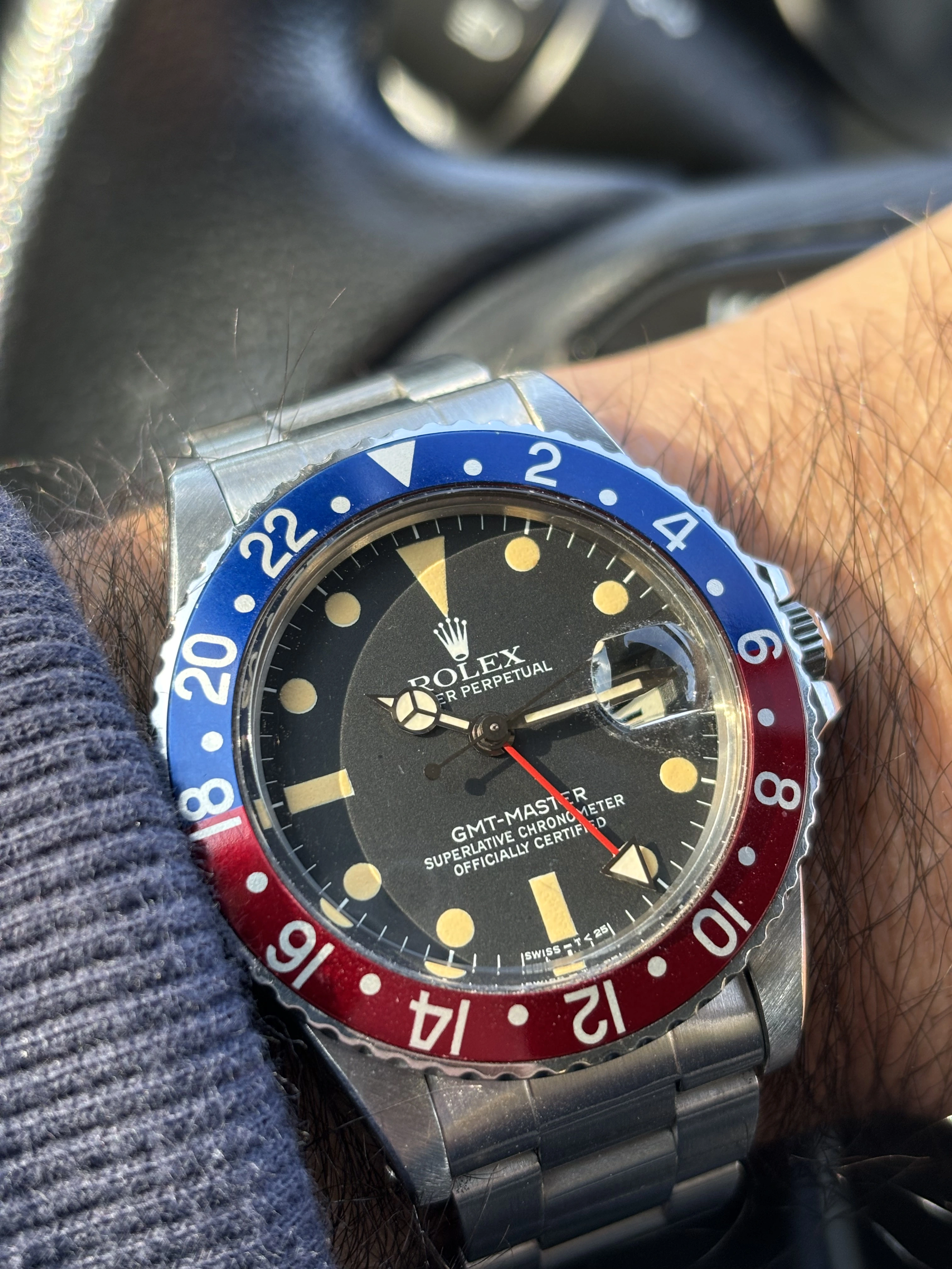 I was conflicted between what would give the watch a new feel a period correct bezel insert or a jubilee bracelet, and as you can see, I opted for the bracelet since the insert has begun to take on its own bit of character.