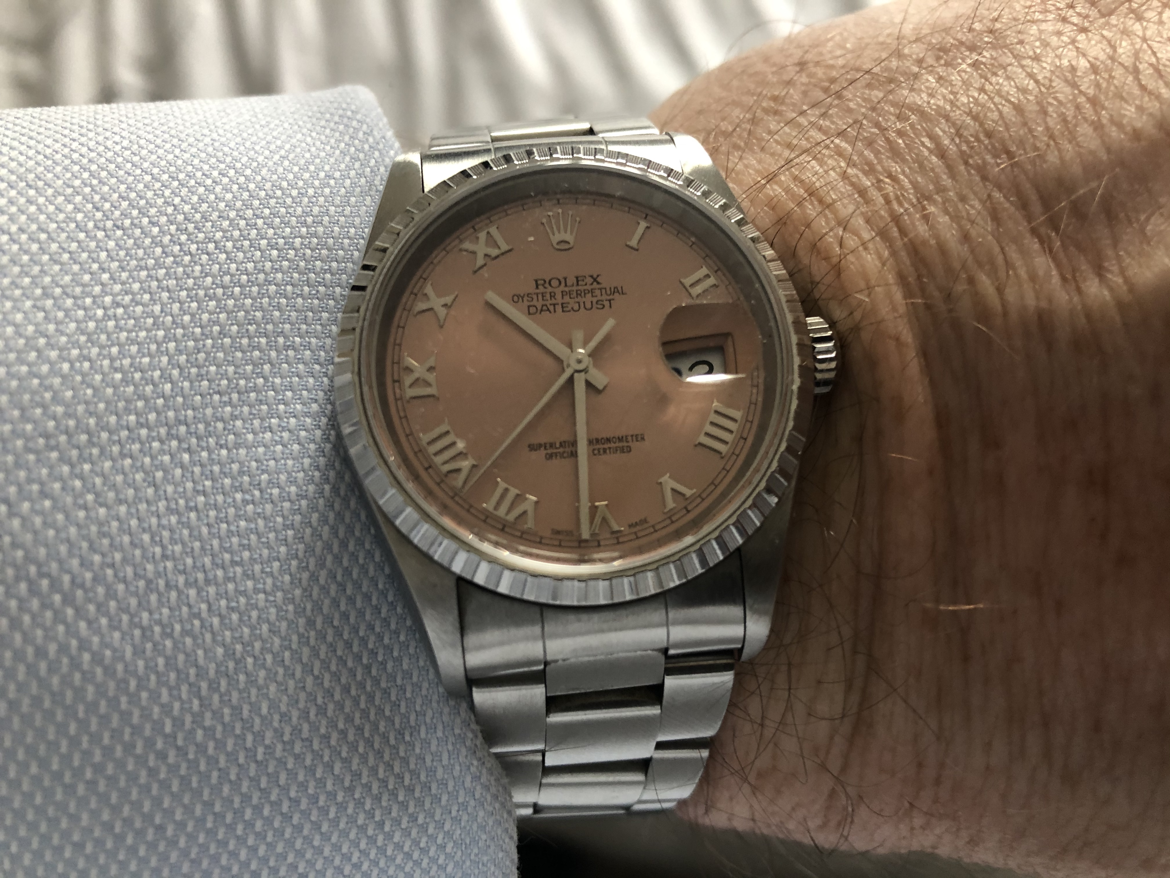 Posts 354 Likes 770 Jeeper 路Oct 28, 2020 U ulackfocus That particular watch wasn't mine. I was paid to sell it because the owner wasn't good at shooting pics. I did get to wear it for a while. However, I have owned Rolex before including a ss & white gold DateJust with a copper / salmon dial. Hello brother. Fluted bezel in SS & Oyster b racelet