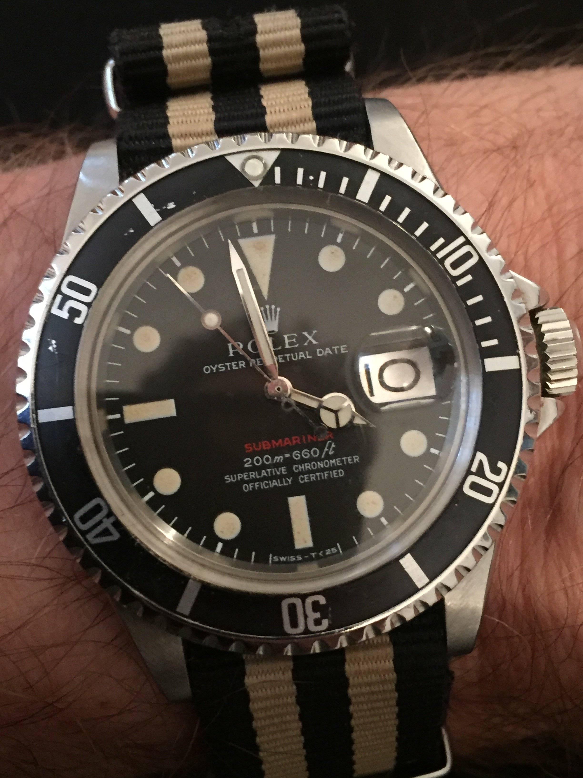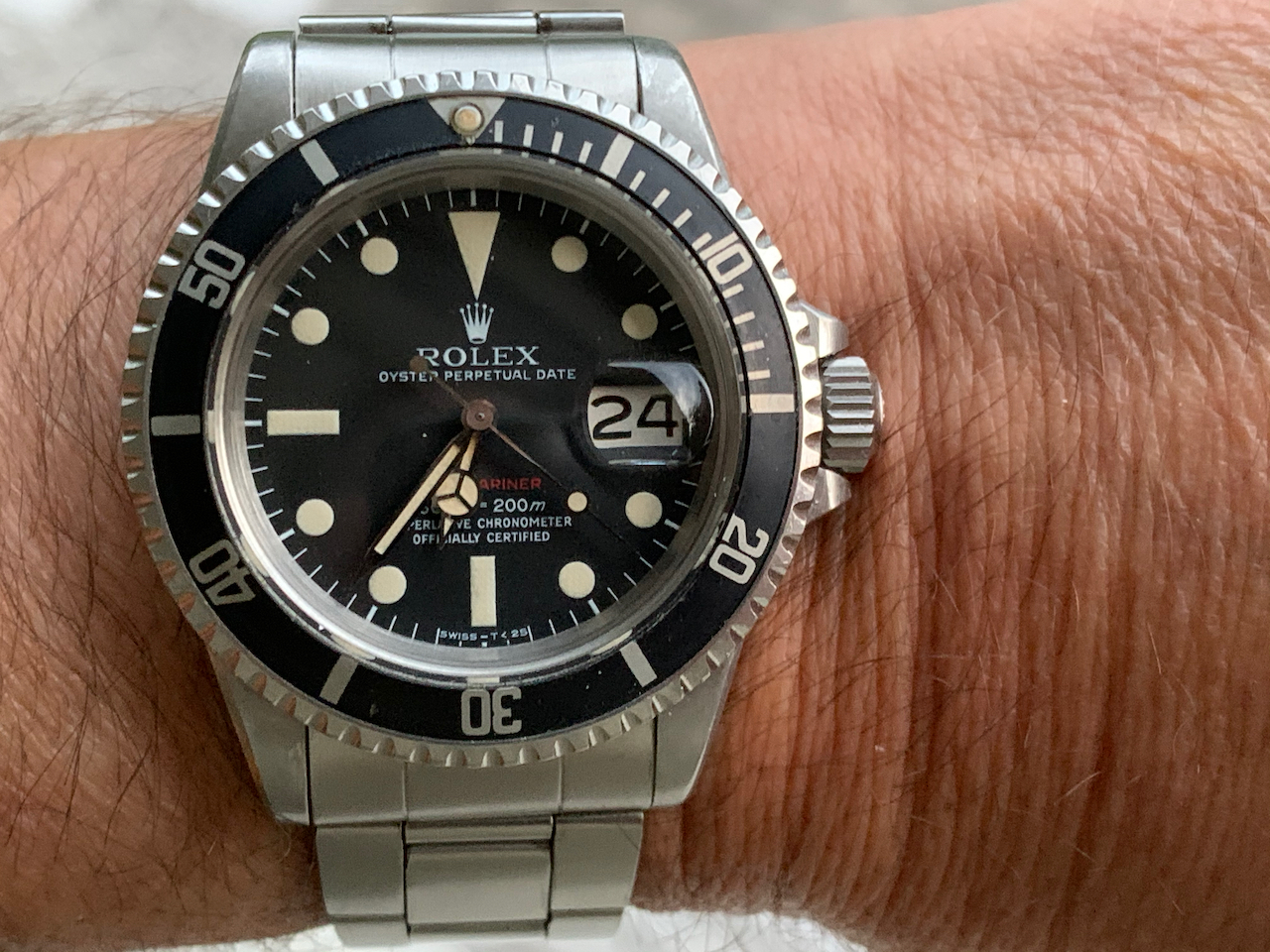 Posts 332 Likes 1,943 Hans the Wolf ·Sep 26, 2020 This is my favourite Rolex a Red 1680 from 1972 😀 Mk5 dial, 9315 bracelet with dive extension marked "PATETED"