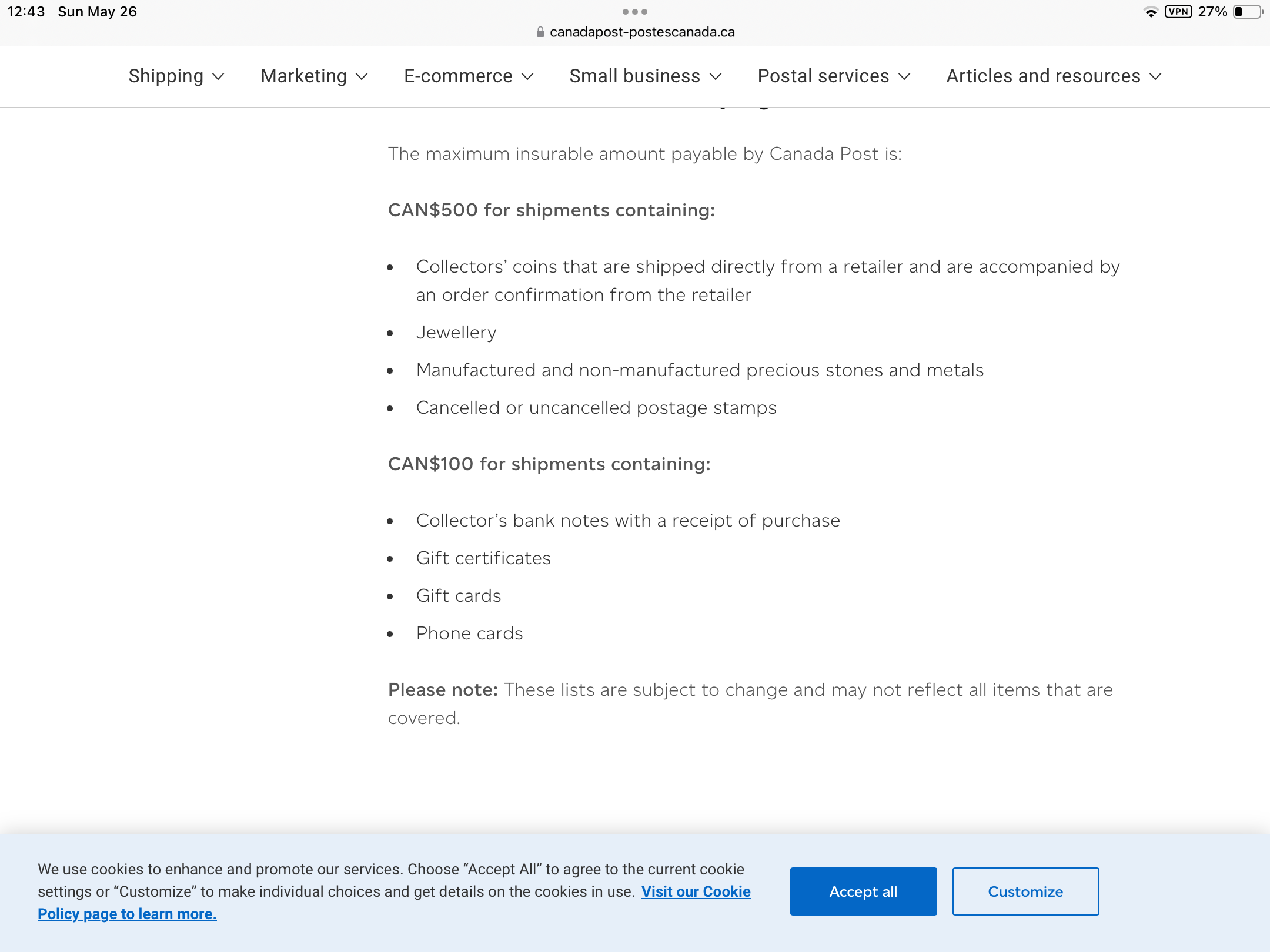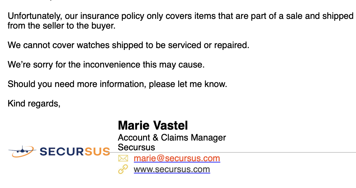 It’s been a while since I used the service and in the past a simple receipt needed to be provided. I just found out their policy has changed. The maximum liability for jewelry (including watches) is now CAD $500.00.