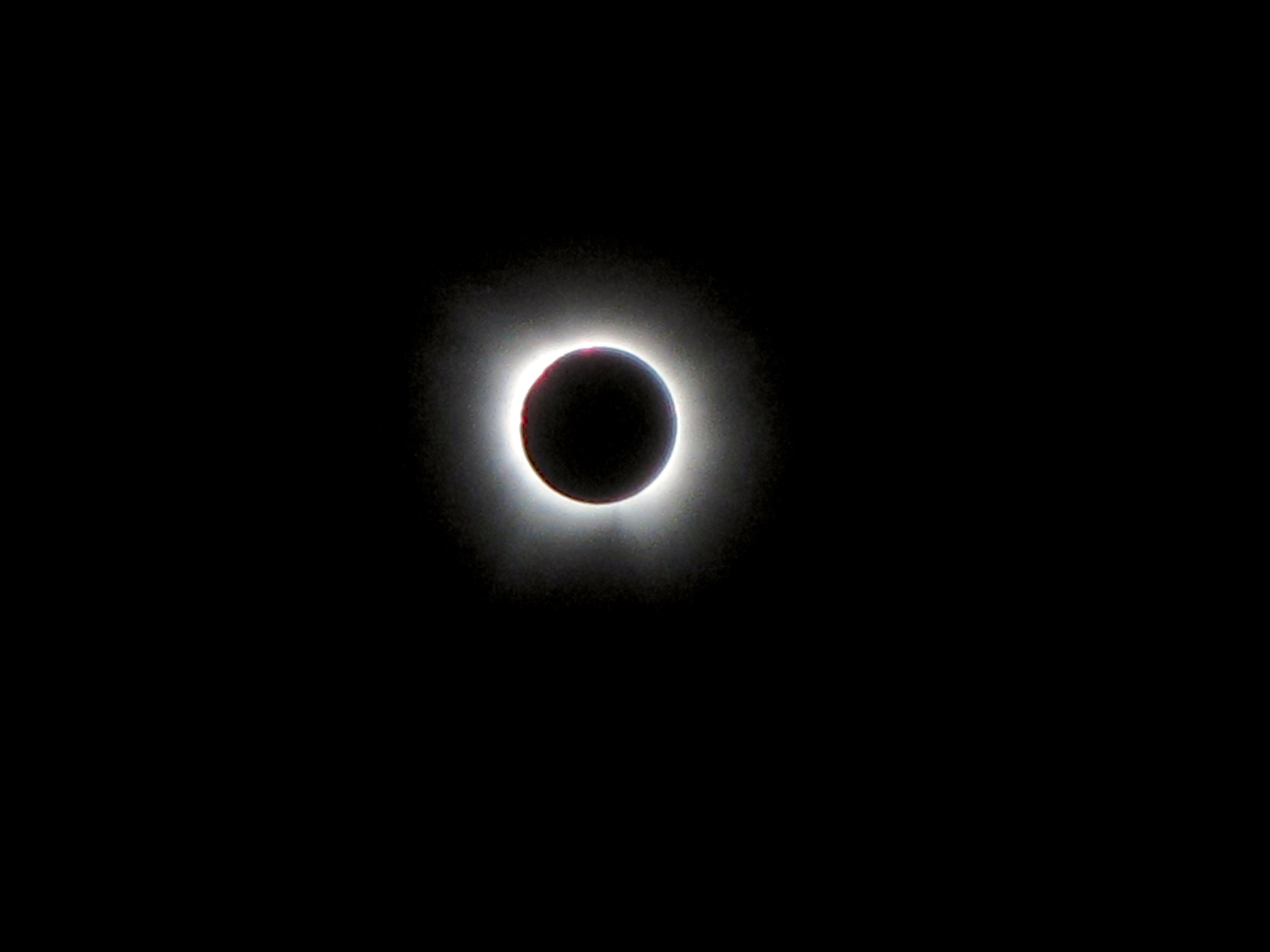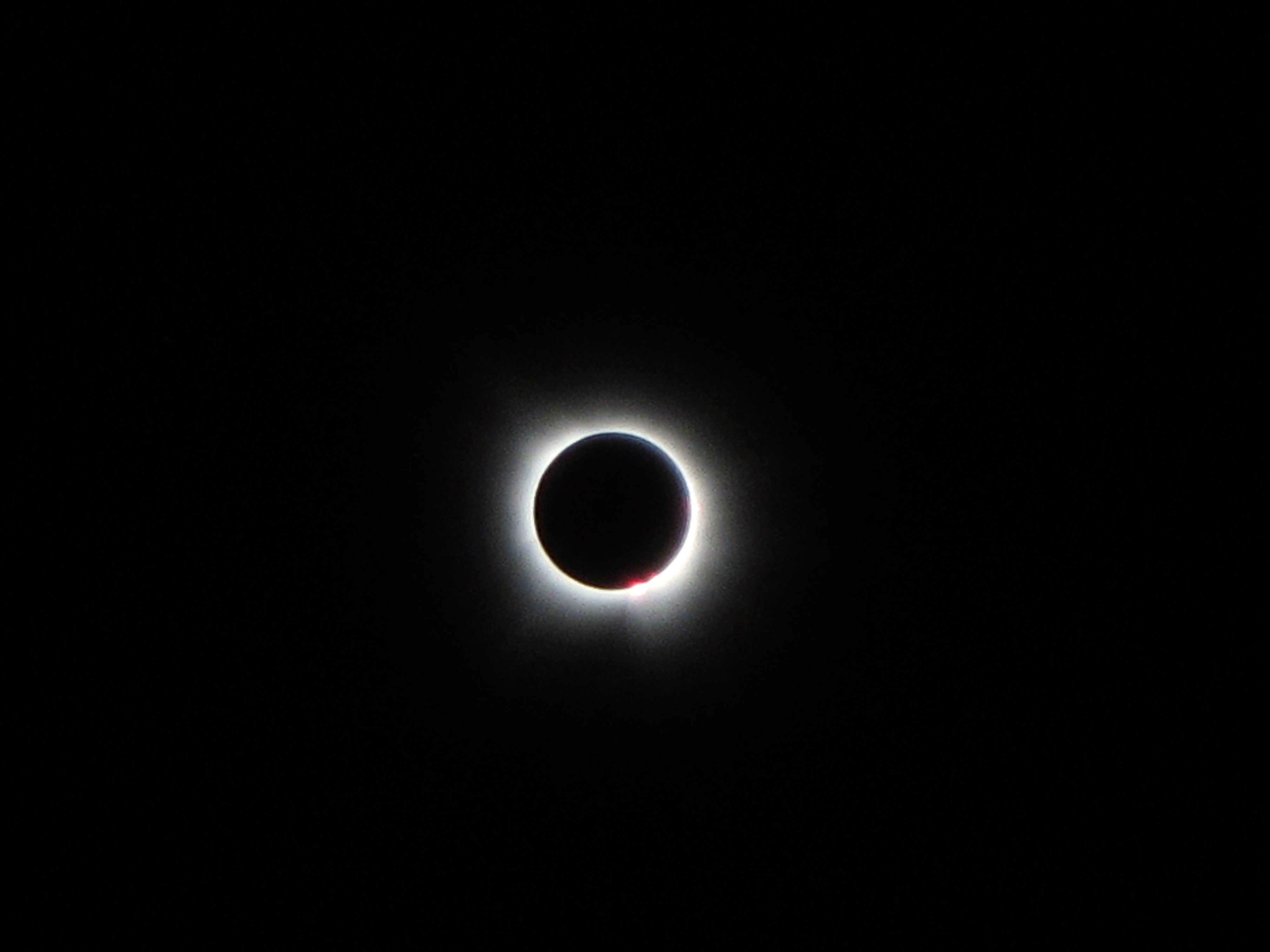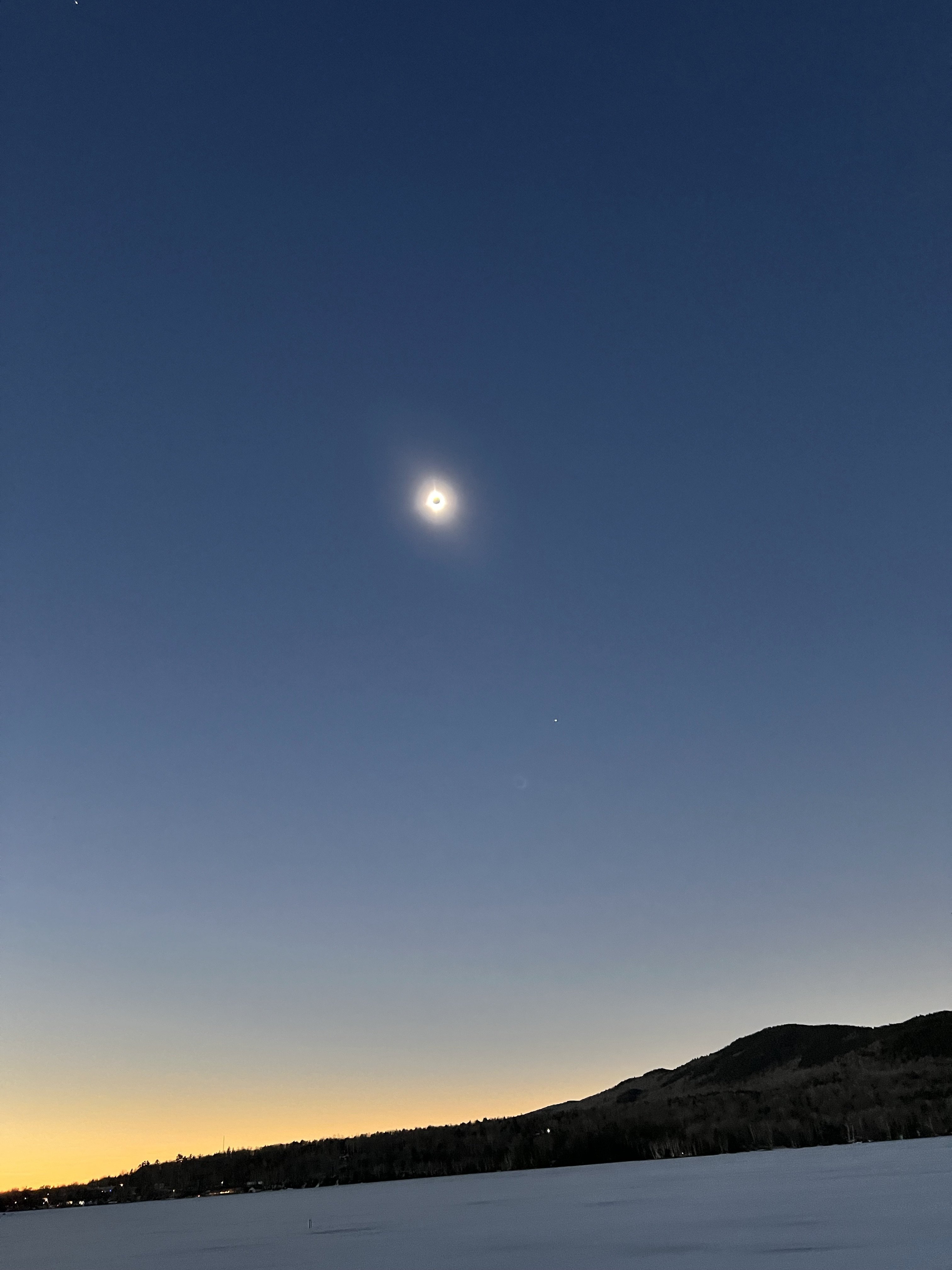 ·Greenville, Maine on Moosehead Lake. Not a cloud in the sky. Perfect conditions! Beautiful sunny day, then the light starts to get flat and dimmer. Then totality! Zoom in on the photo. Stars come out, streetlights come on, alpengow on the surrounding mountains, full corona with a solar flare visible at about the 7 o’clock position - the most amazing thing I’ve ever seen. All told, it was one of the most amazing hours of my life.