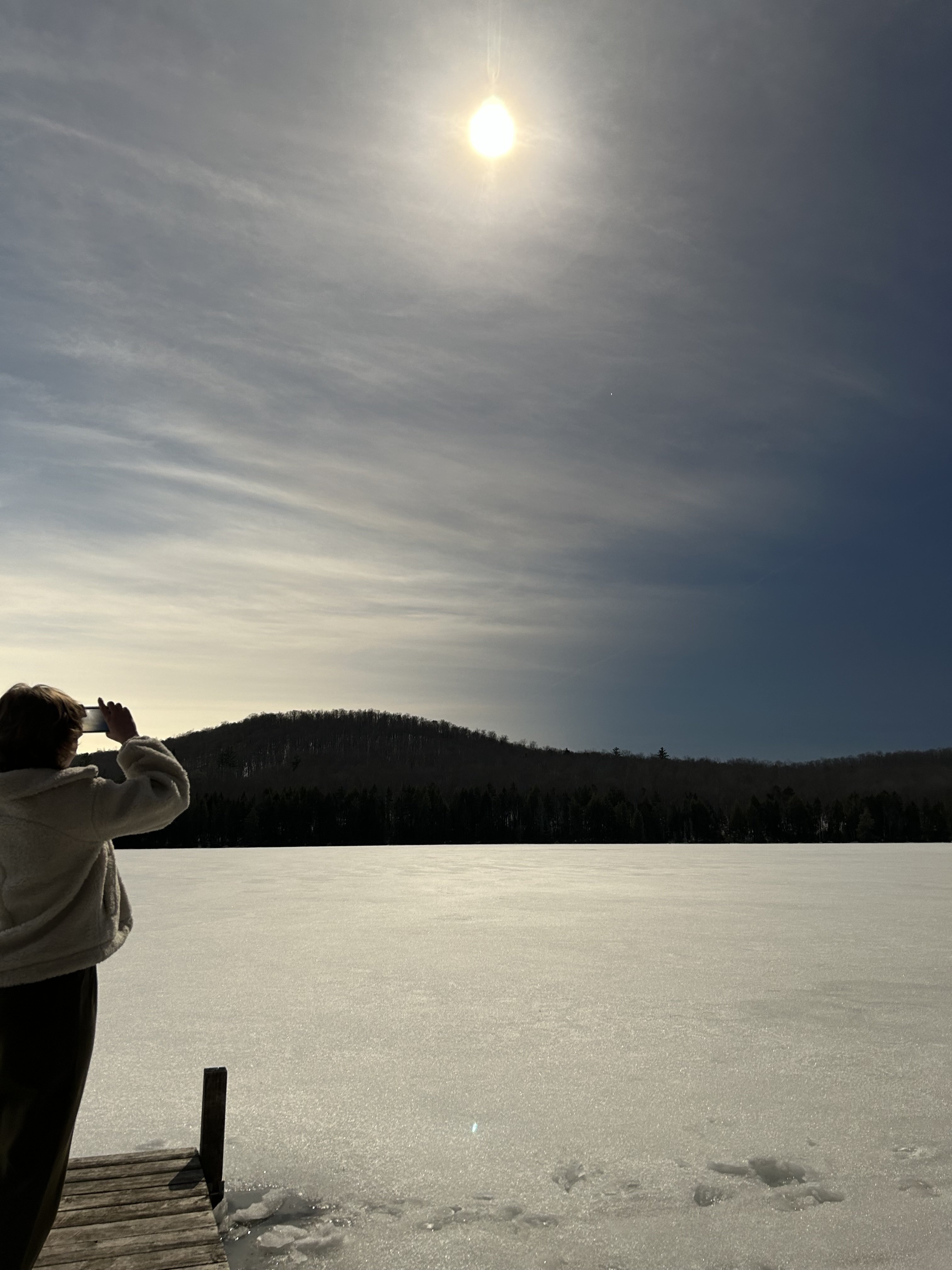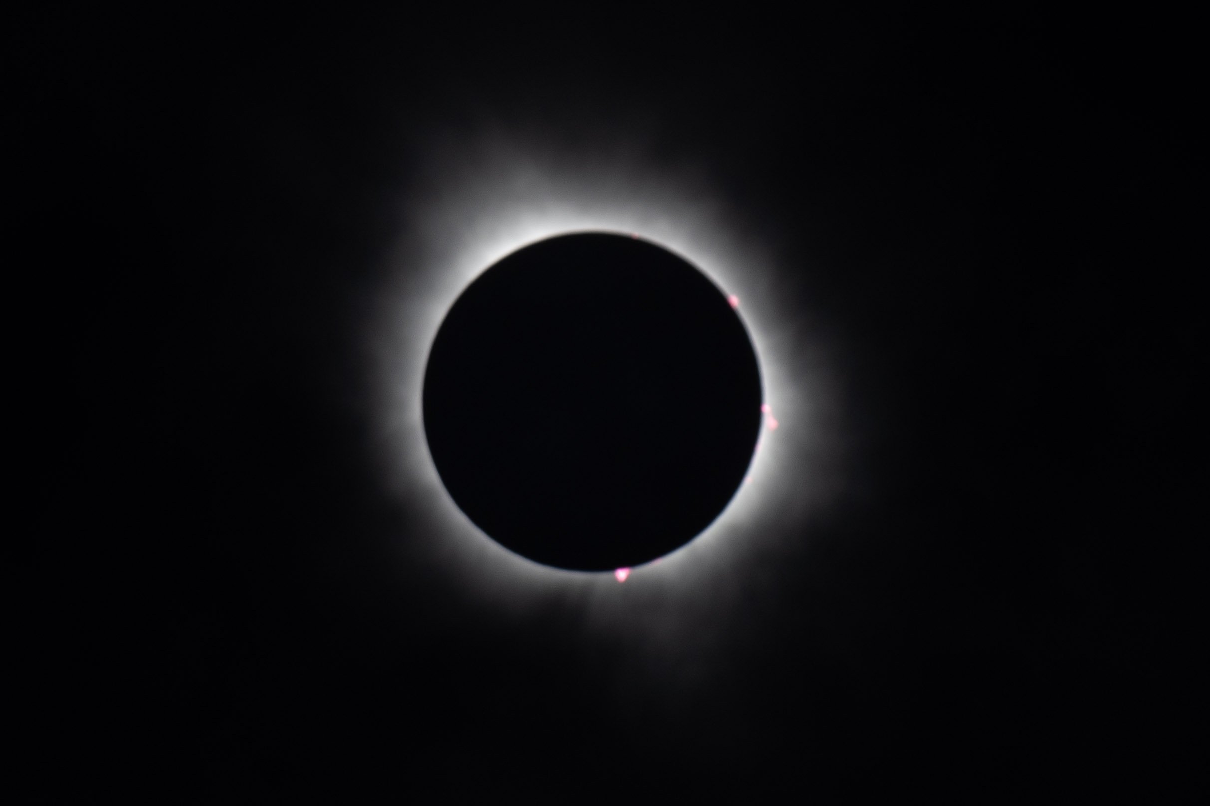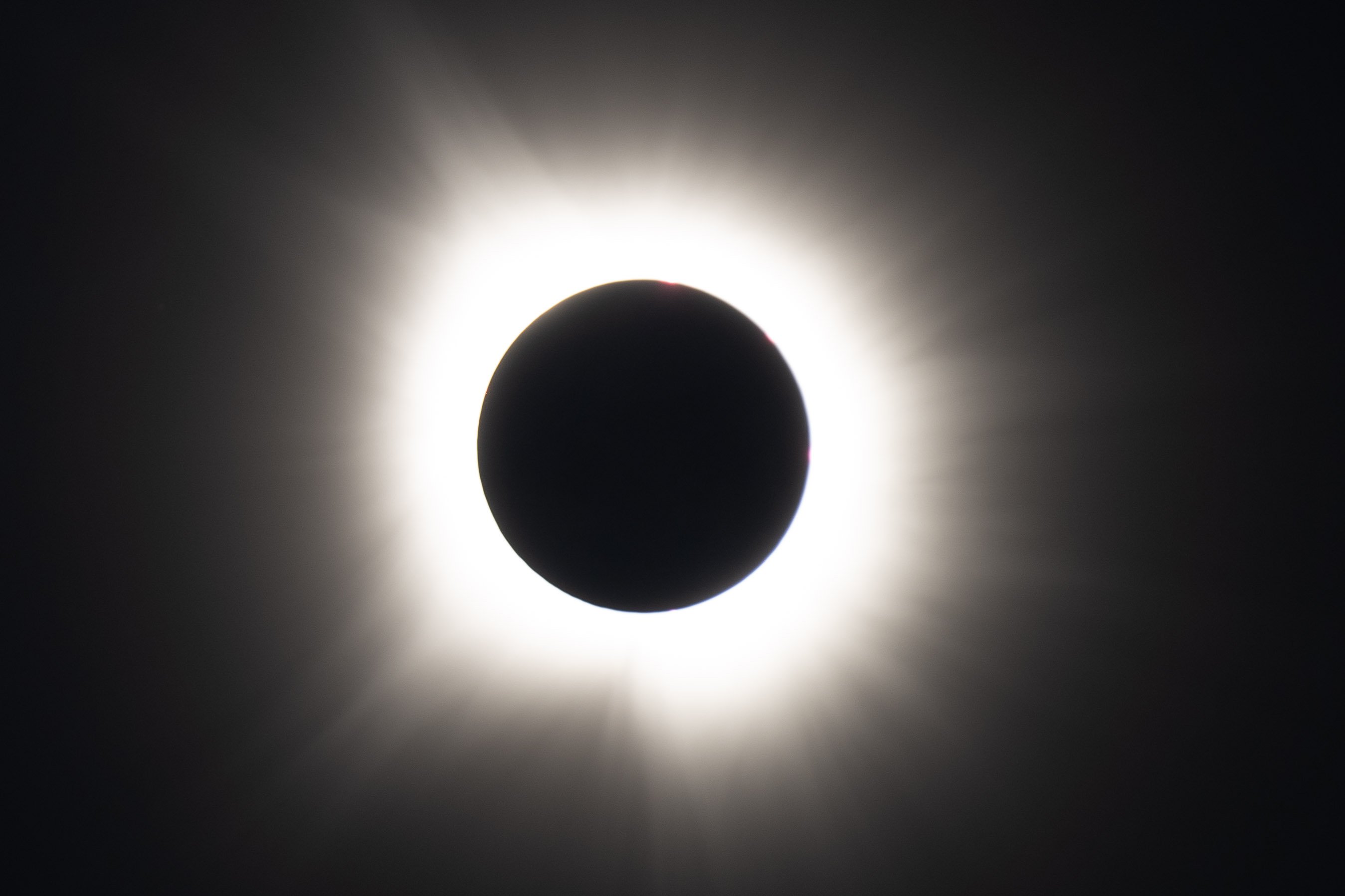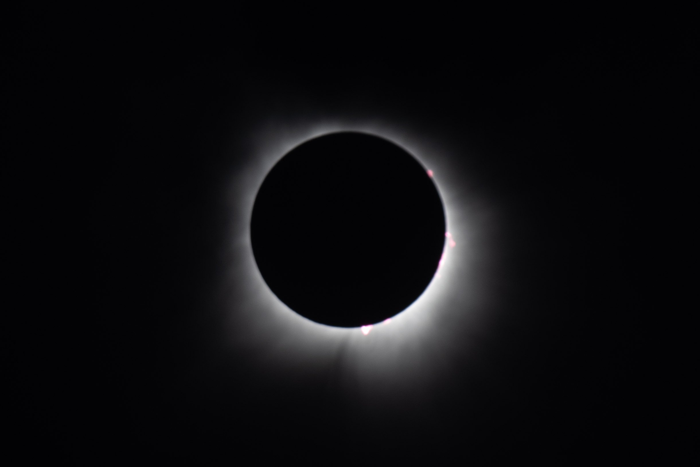 ·Greenville, Maine on Moosehead Lake. Not a cloud in the sky. Perfect conditions! Beautiful sunny day, then the light starts to get flat and dimmer. Then totality! Zoom in on the photo. Stars come out, streetlights come on, alpengow on the surrounding mountains, full corona with a solar flare visible at about the 7 o’clock position - the most amazing thing I’ve ever seen. All told, it was one of the most amazing hours of my life.