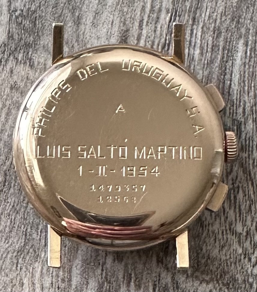 As for the presentation on the caseback, I have learned this watch was gifted to Luis Martino by Philips for being one of the first retailers to introduce color tv’s to South America in 1953 and the first Philips retailer in Uruguay.