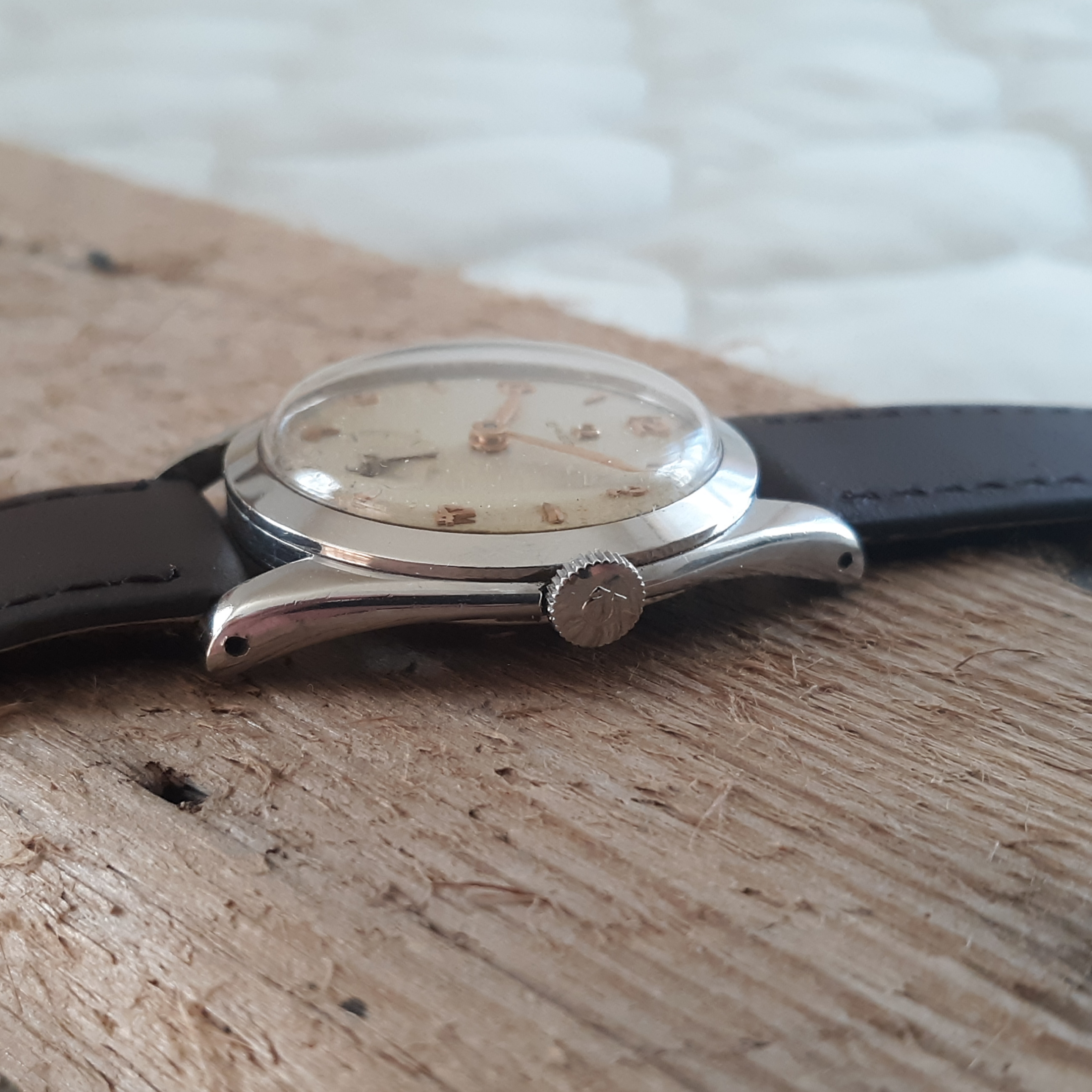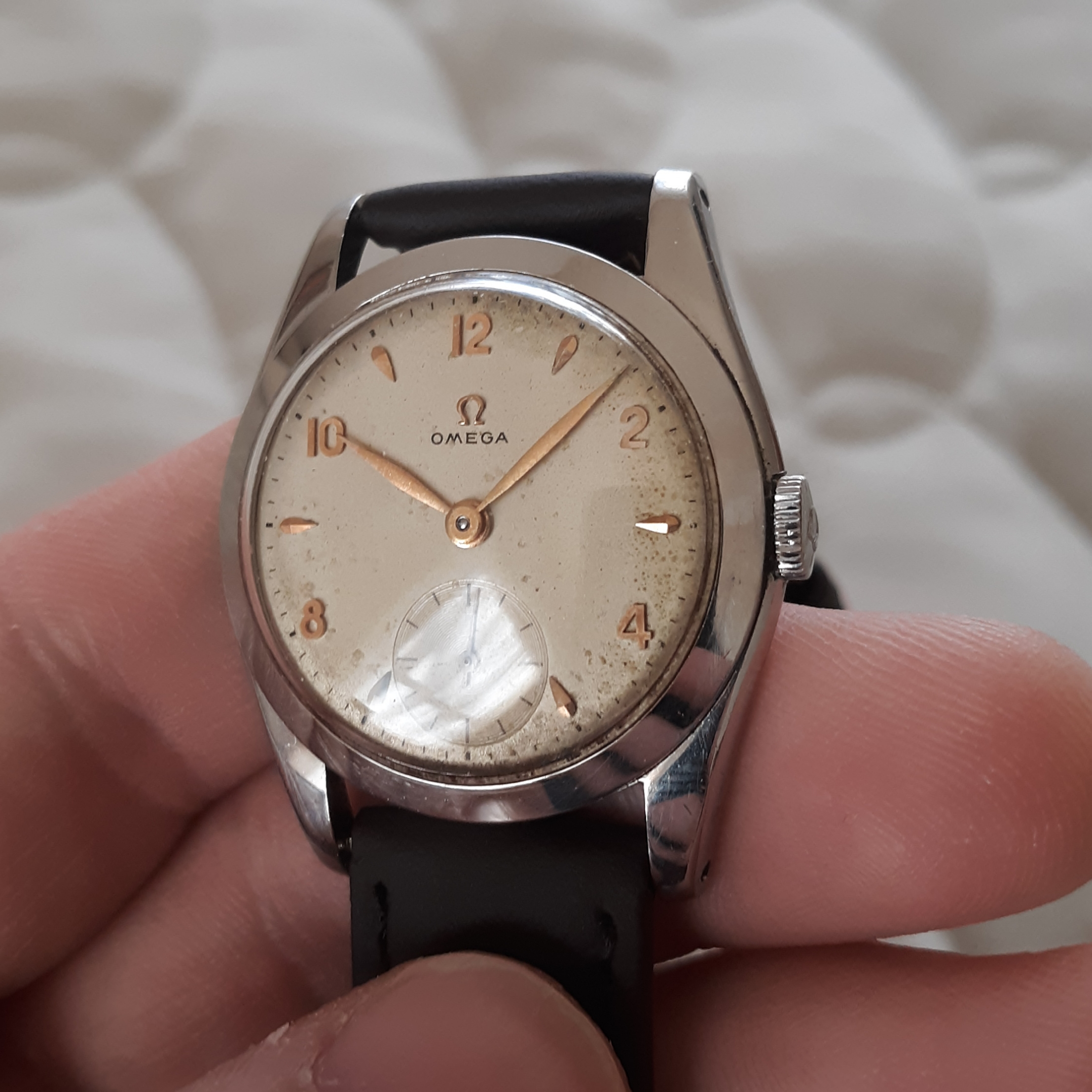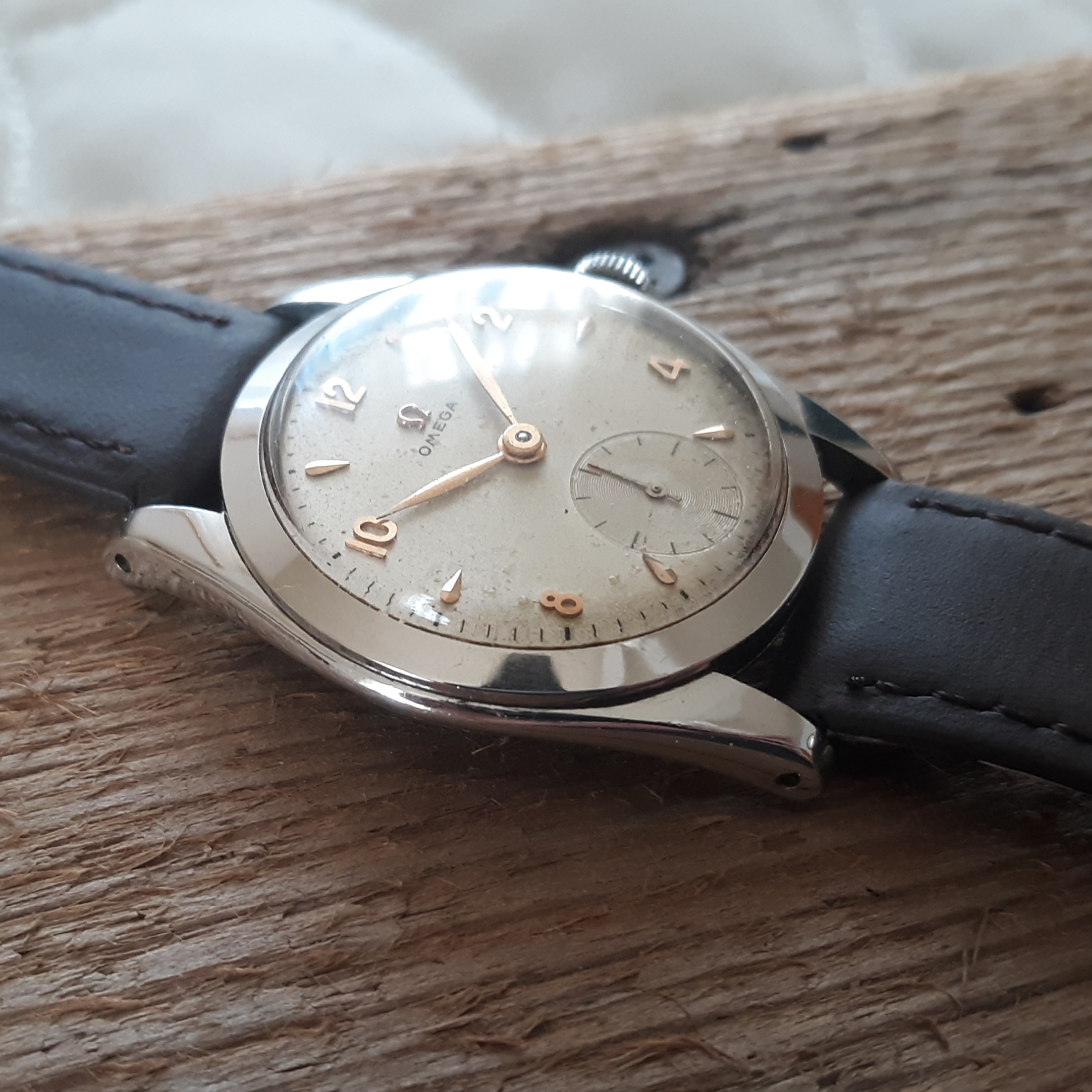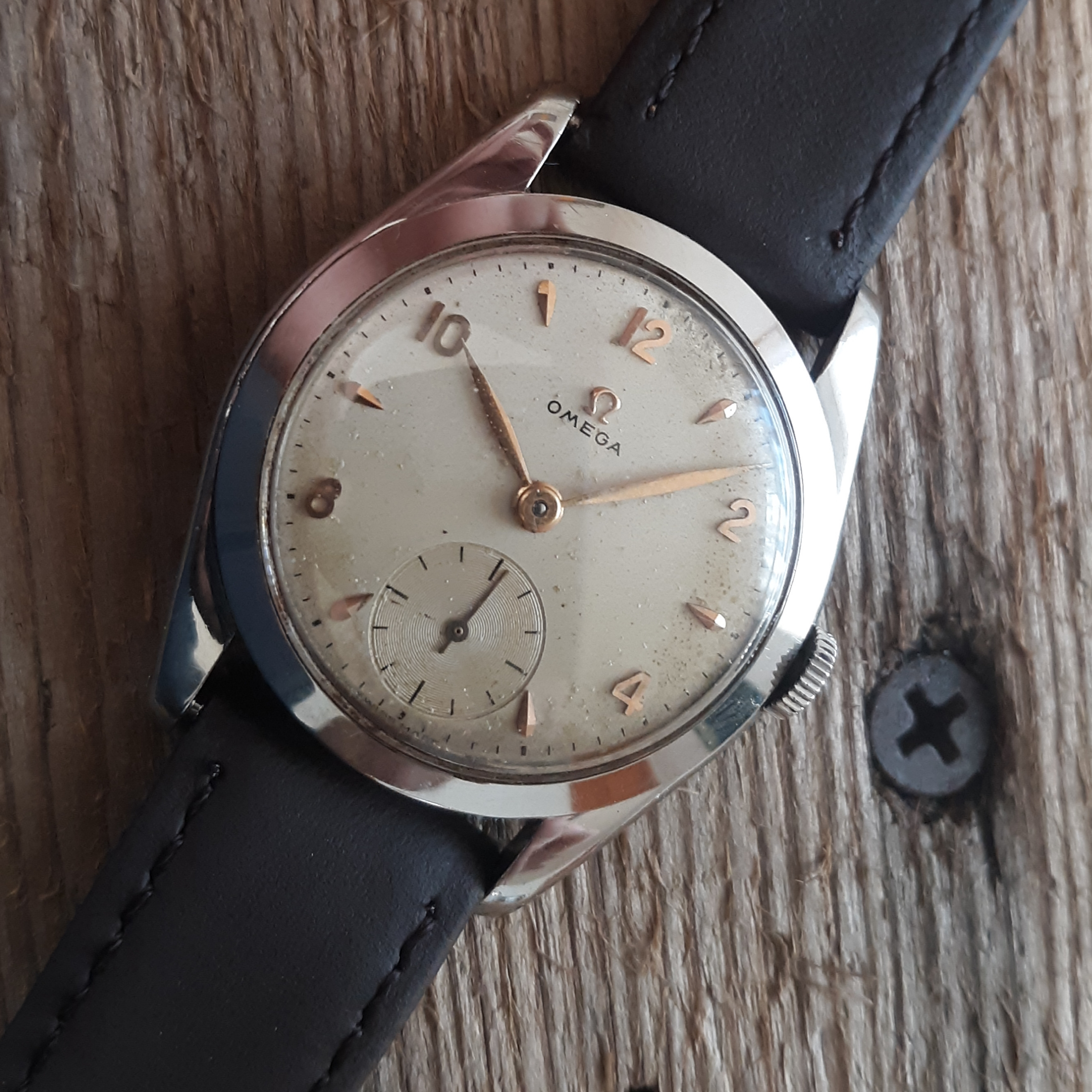·Here we have an Omega reference 2672-2 in steel, dating to 1953. The watch appears original, minus the strap and crystal, and shows appropriate age.