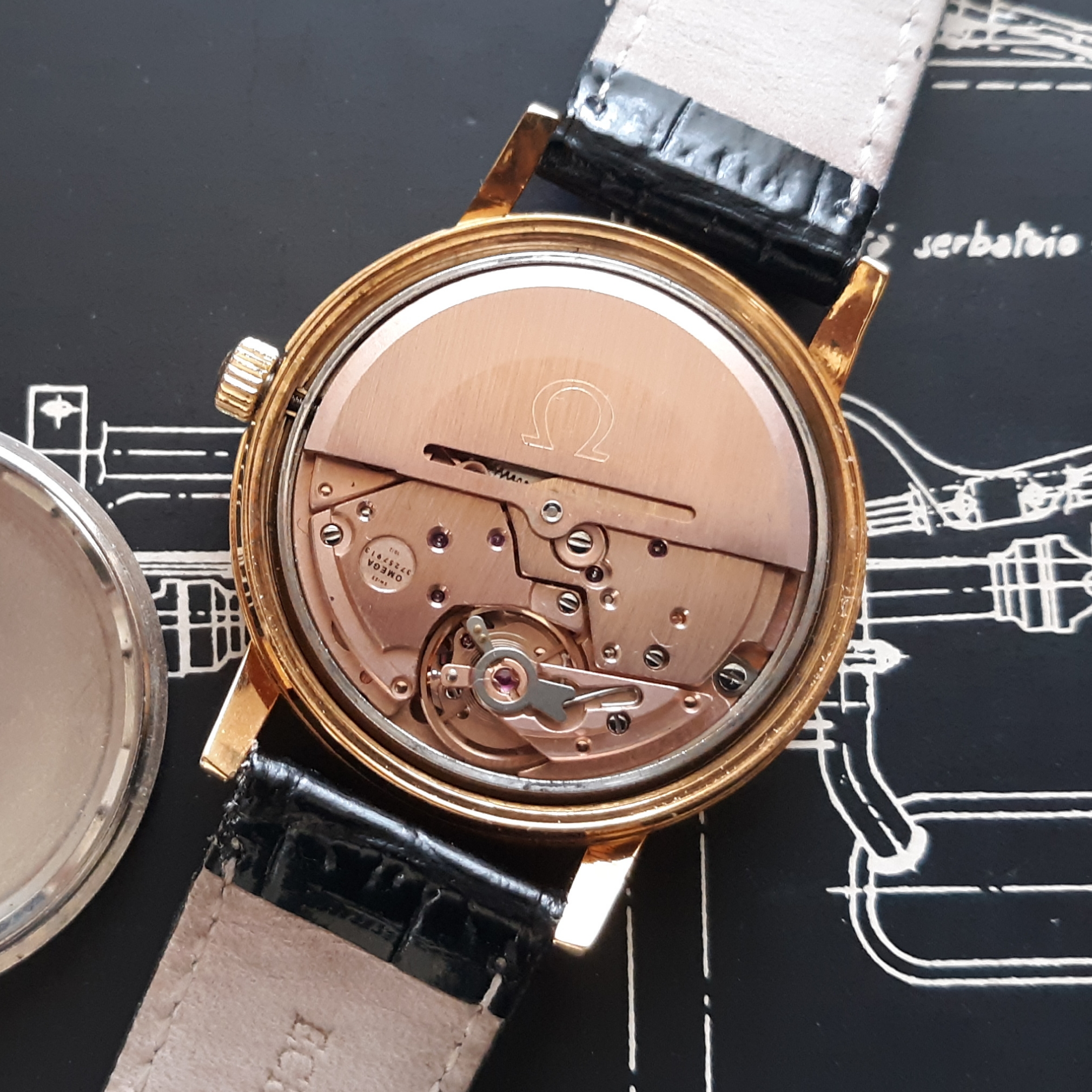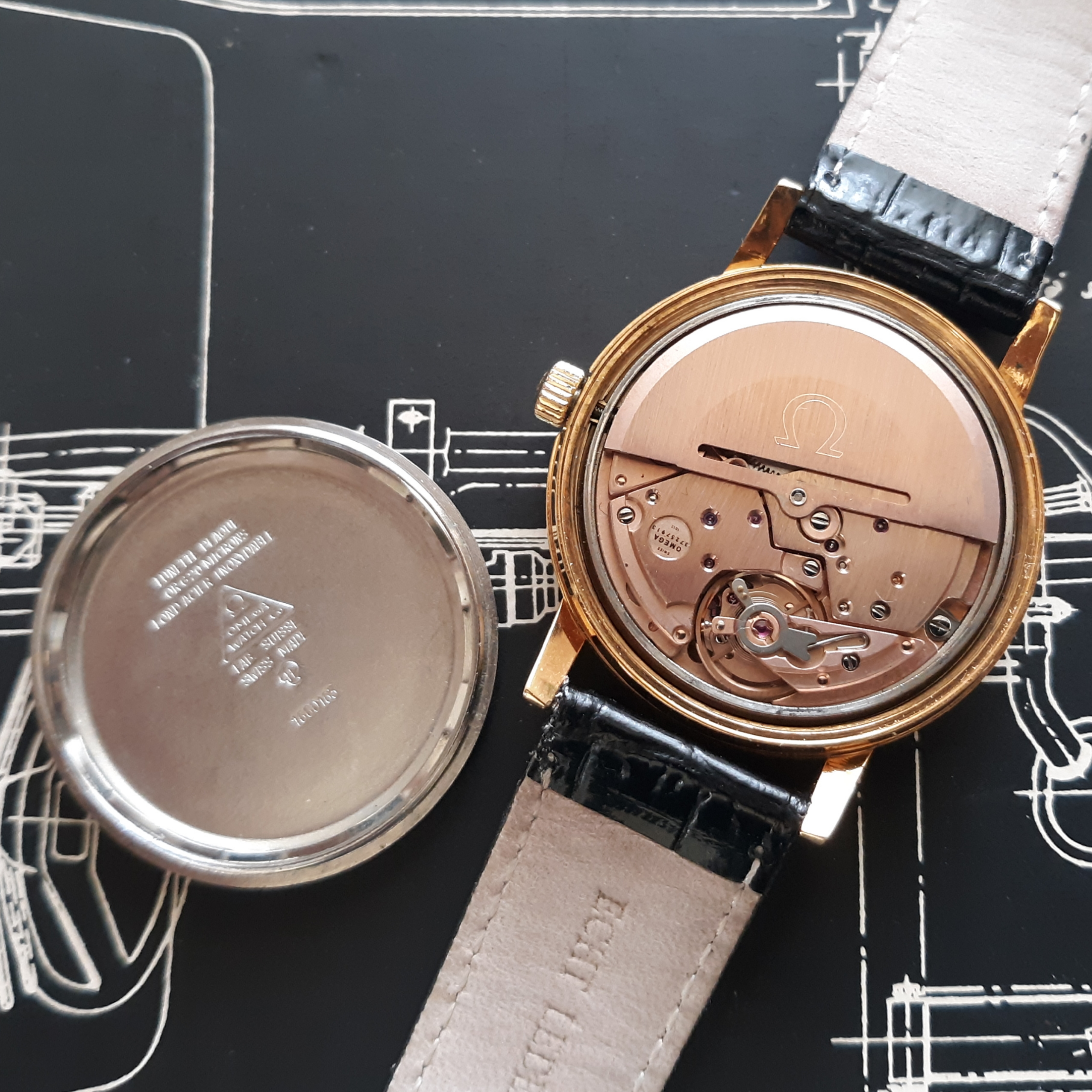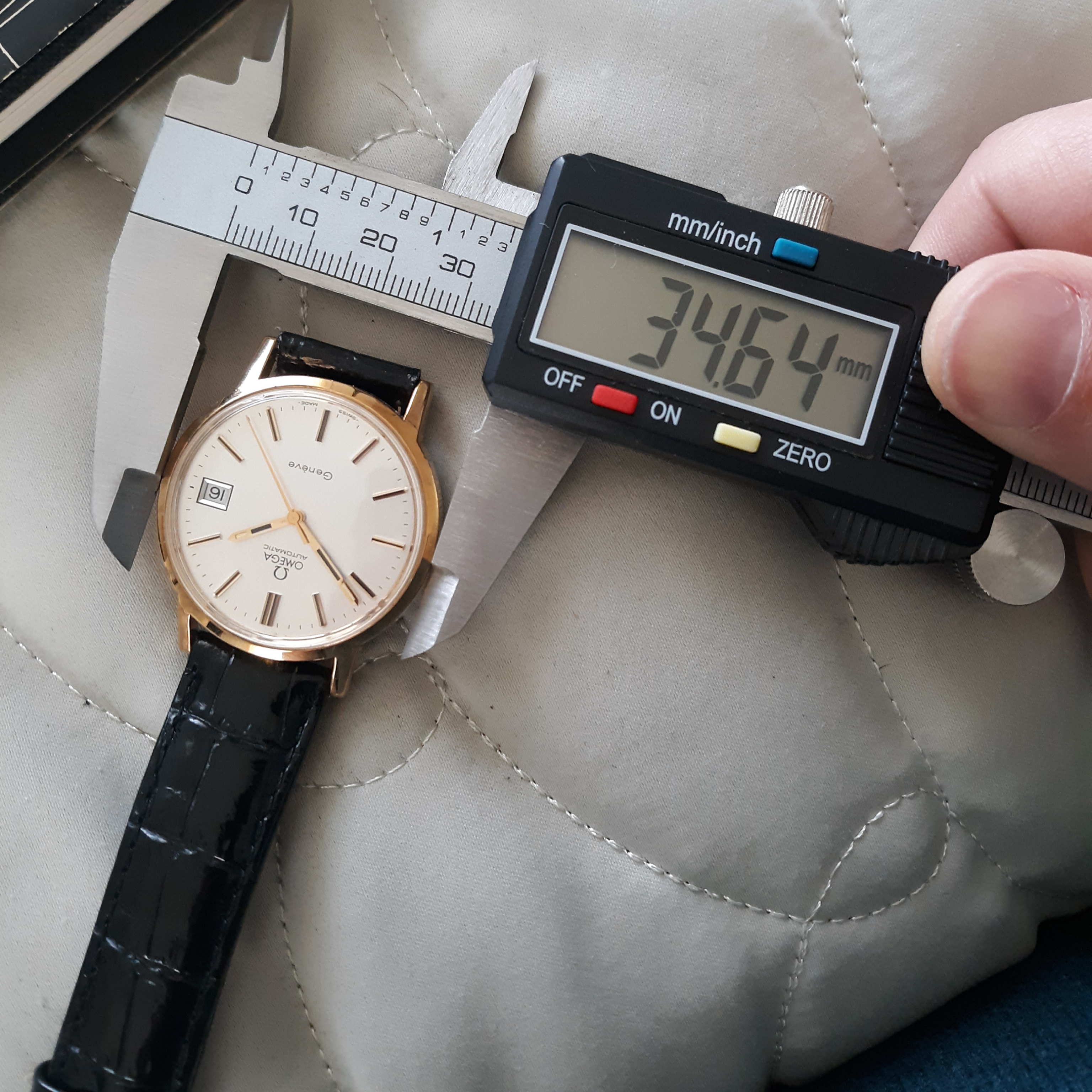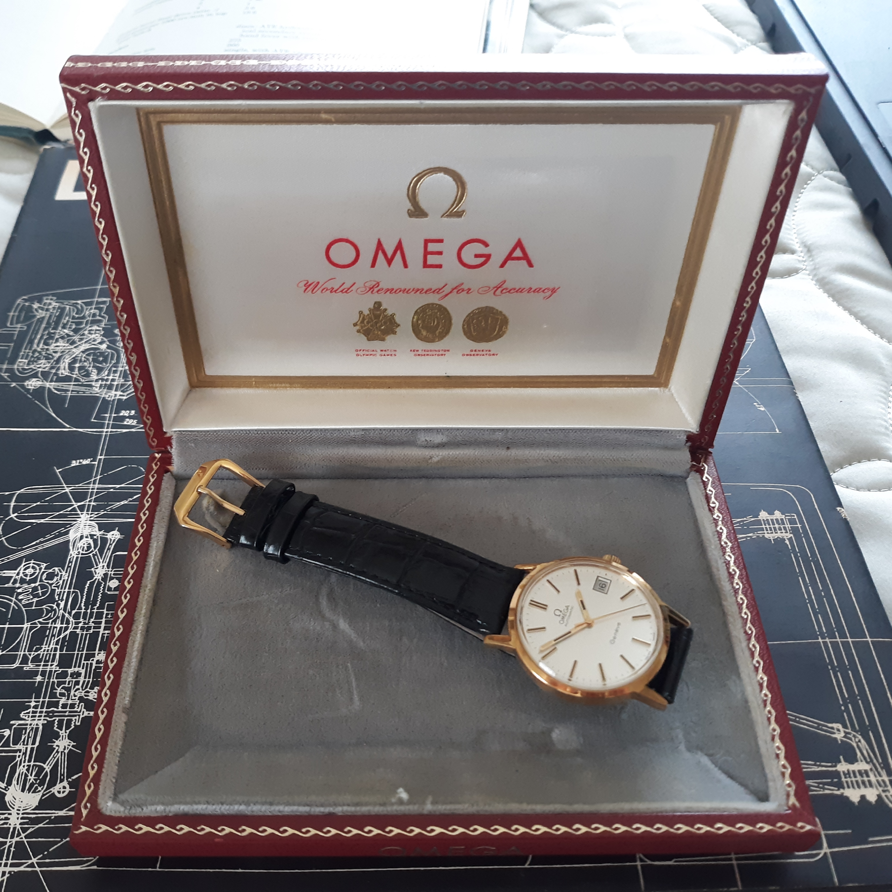 ·Here we have a 1972 Omega Geneve. The reference number is 1660165, that houses a pristine caliber 1012. The case is gold plated, with a thick steel screw on back, and measures just under 35mm in diameter (not including the crown). Lug width is 18mm. There is a minor brassing spot on the upper right lug. The dial is my favorite part of this watch, a brushed sliver, with no blemishes. I do not know the service history, although it keeps great time. The date functions perfectly. It comes in a vintage Omega box, although I'm unsure if it's original to the watch. I'm asking $425 or best offer, plus shipping. Returns only accepted if grossly misrepresented.