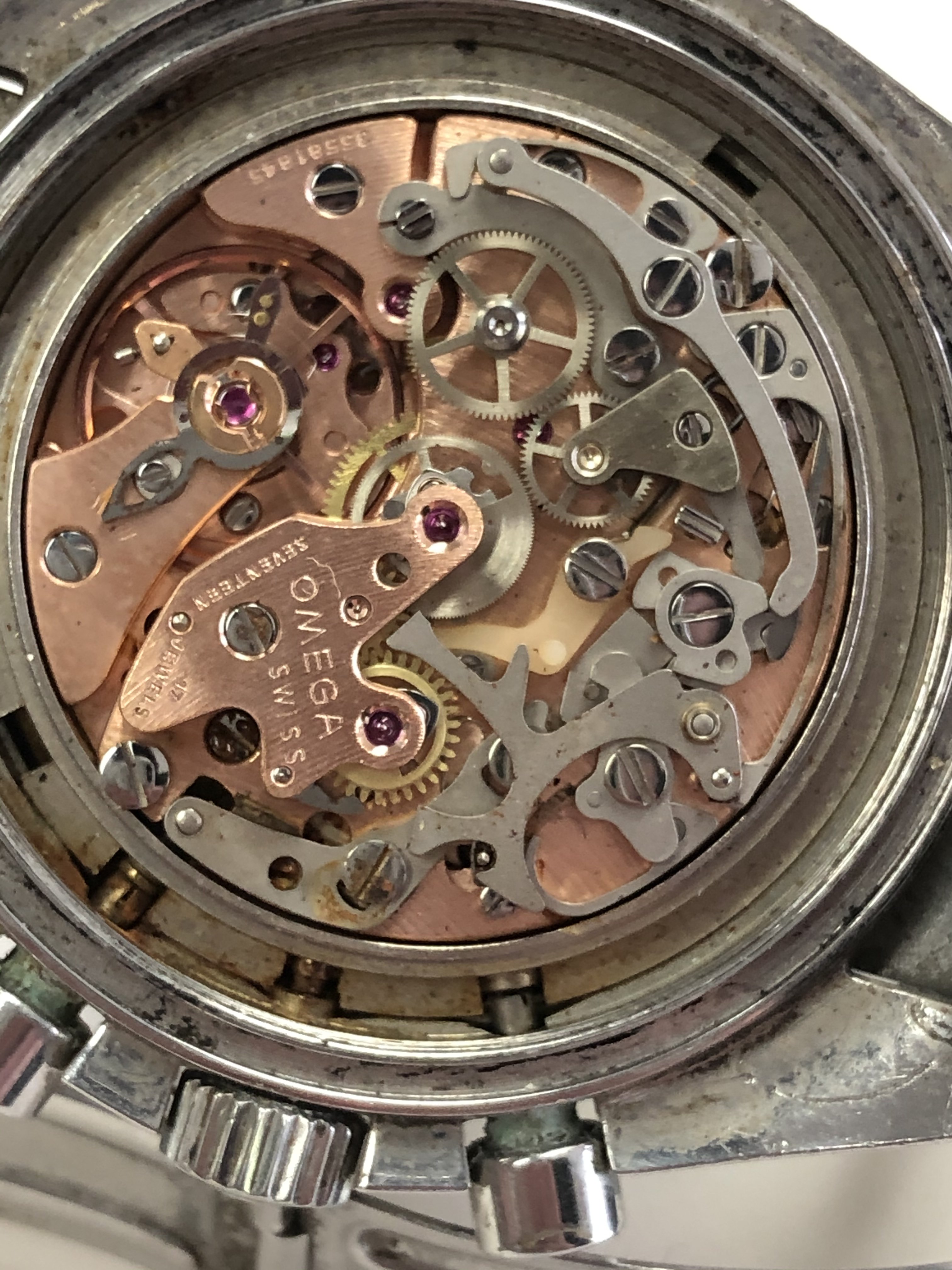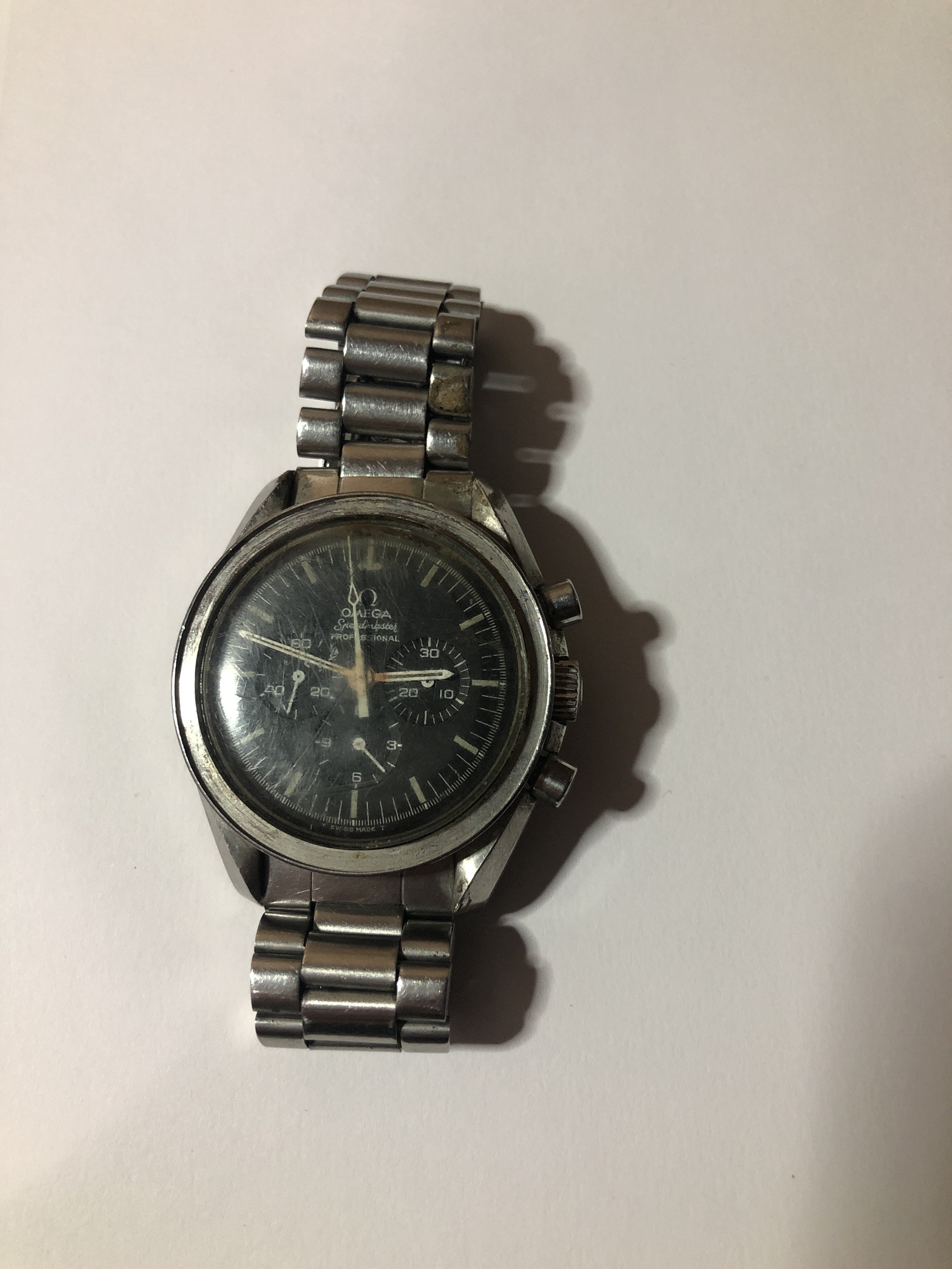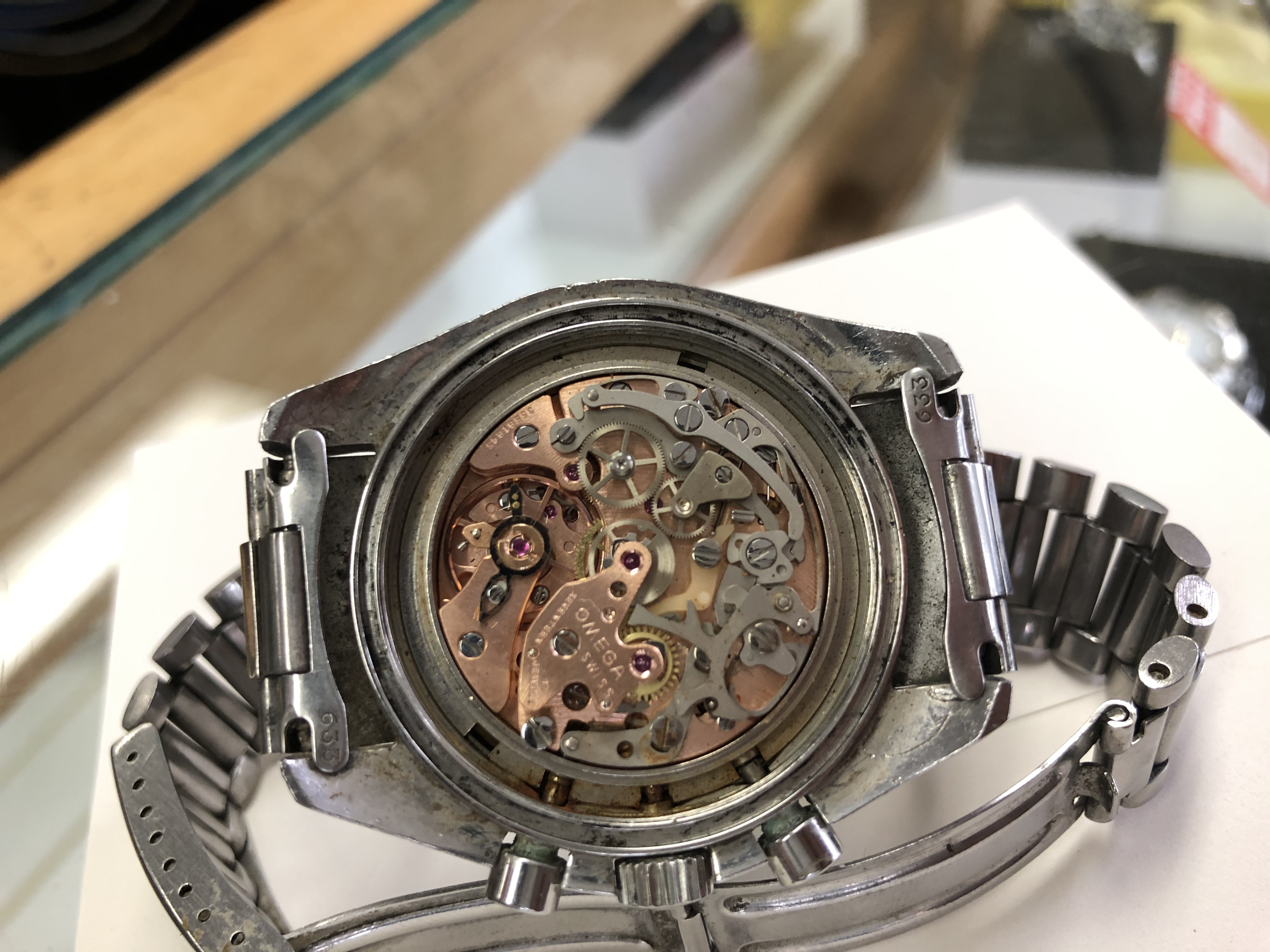 ·Hello a little back story on the watch before i get into details; purchased some land with abandoned house, while cleaning out the house i found tons of foreign coins, and this watch! Looked like the previous owner was a collector! He even had a porsche 944 rotting in the backyard which is sad! And then there is the speed master which still slightly works! It winds and the hands will work for a minute or two before stopping! Upper and lower push buttons dont work (probably stuffed with corrosion) I had the back cover removed to check serial number and condition of the internals! Not sure what the watch would be valued at since it will need some restoration (bezel missing, hands have rust, glass faded and scratched, scratches all over the watch)! Let me know what you guys think! Should i restore the watch and how much would it cost me? Or should i sell as is and how much would i get for it?