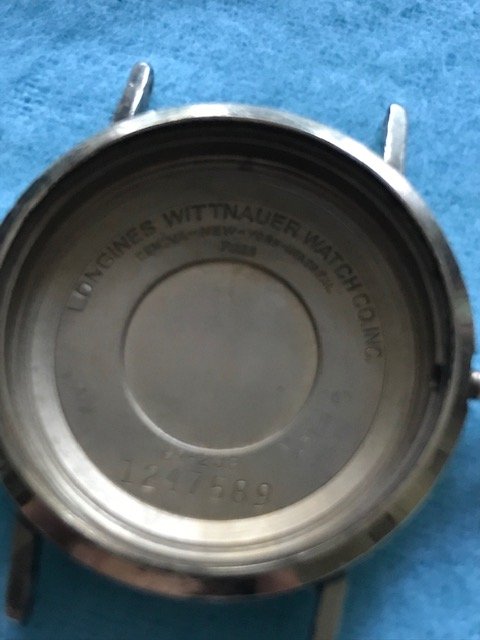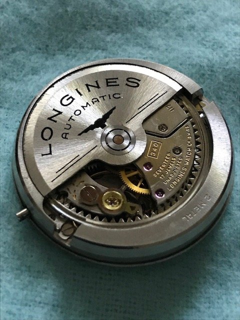 Next 2 Longines are the Men's round gold filled automatic Admiral and the men's wildly Deco style Mainliner I got from a semi-retired watchmaker here on the shoreline. This watch and the Mainliner run and stop but nothing is broken so they need a cleaning and oiling. I bought both of them in a package deal from him as it would be years if ever that he got around to servicing them. He popped the Admiral apart so I could snap pictures of the movement to show it's clean and serviceable. The Mainliner case back simply pops off for movement shots which I did myself. He stressed that the balances are both fine in the watches and a cleaning will do the trick. The Admiral has a gorgeous clean original dial and the case is in great shape as well. The Mainliner is the best of this model I have ever come across, with zero wear to the gold filled case, no damage and eye-catching original salmon dial.
