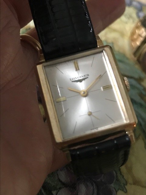Onto the Longines. The square jobbie is a snazzy men's gold-filled manual winder with a nice clean dial and no wear to the case and presents as hardly used. Runs well and the movement is sharp and clean as well.