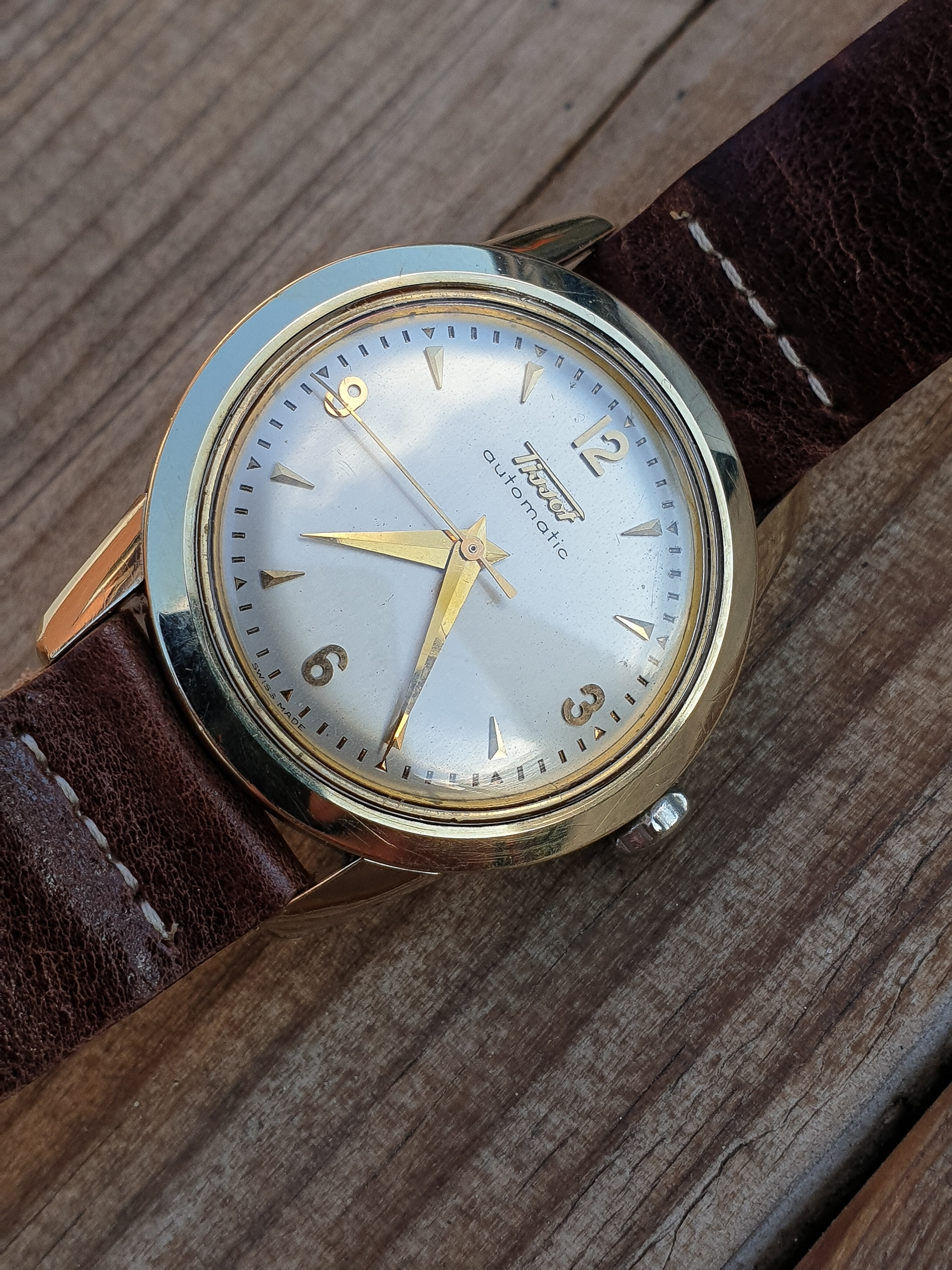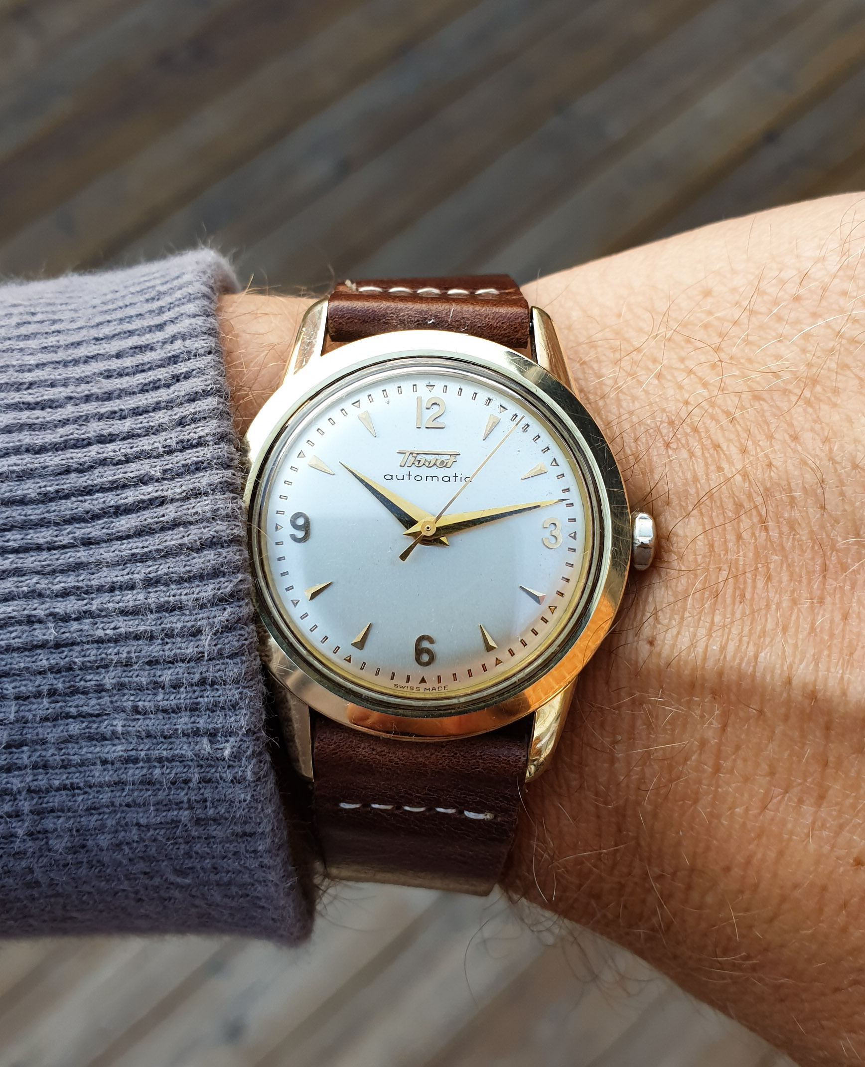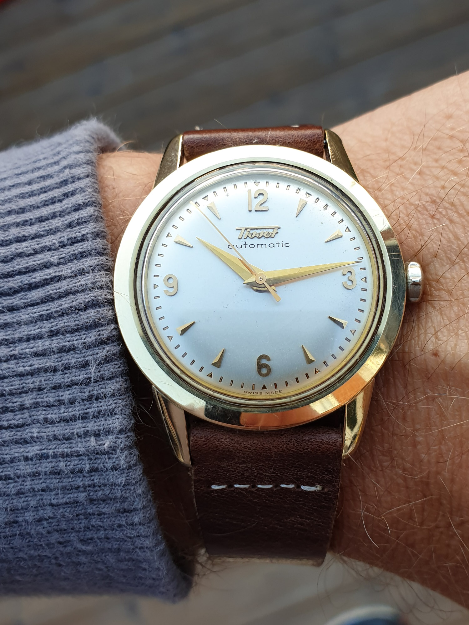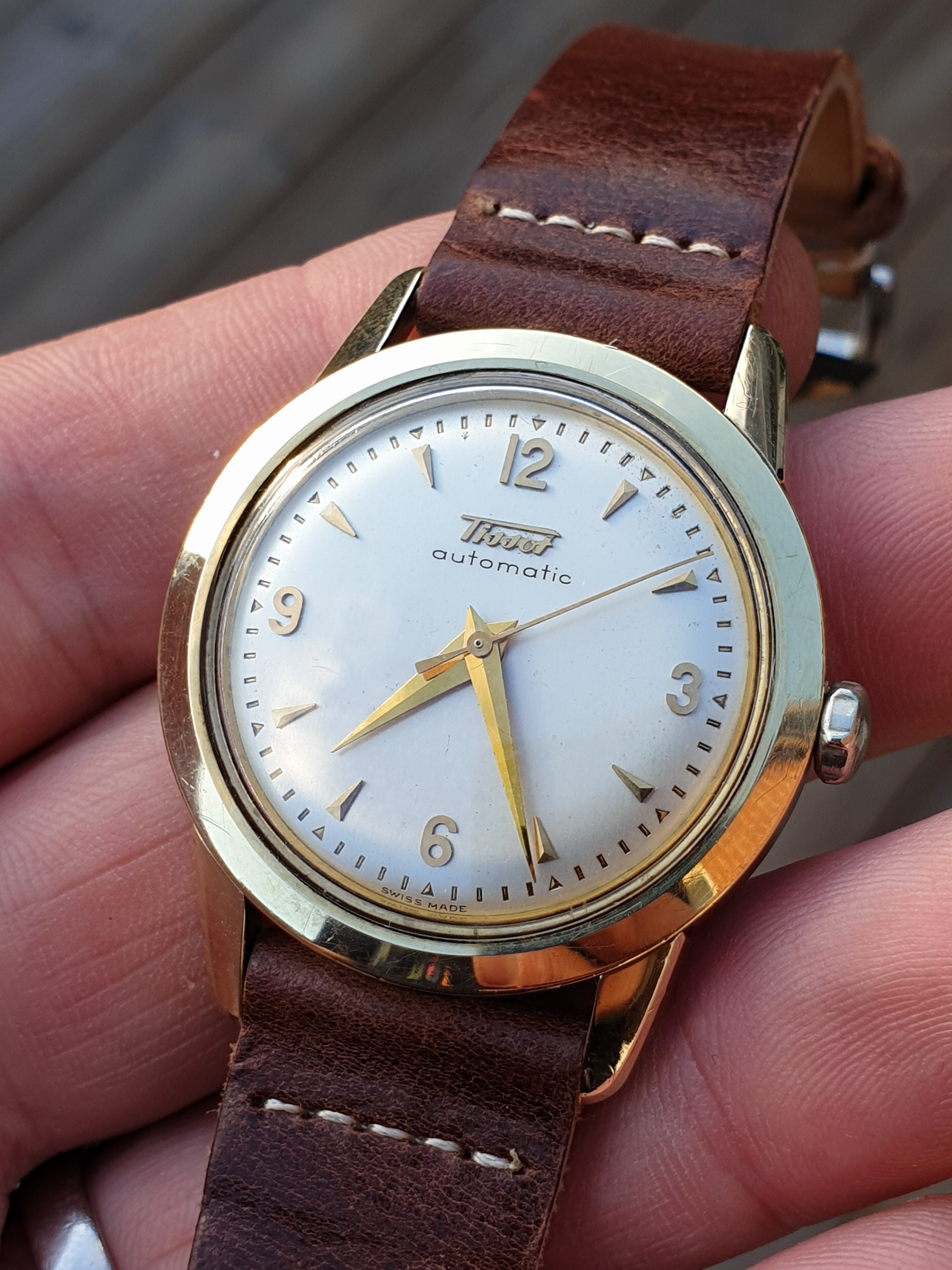 For sale is this beautiful Tissot in gold on steel case from 1954. Stunning dial with old logo and golden hands. I'm not a Tissot expert but it seems to be quite rare reference and dial execution.