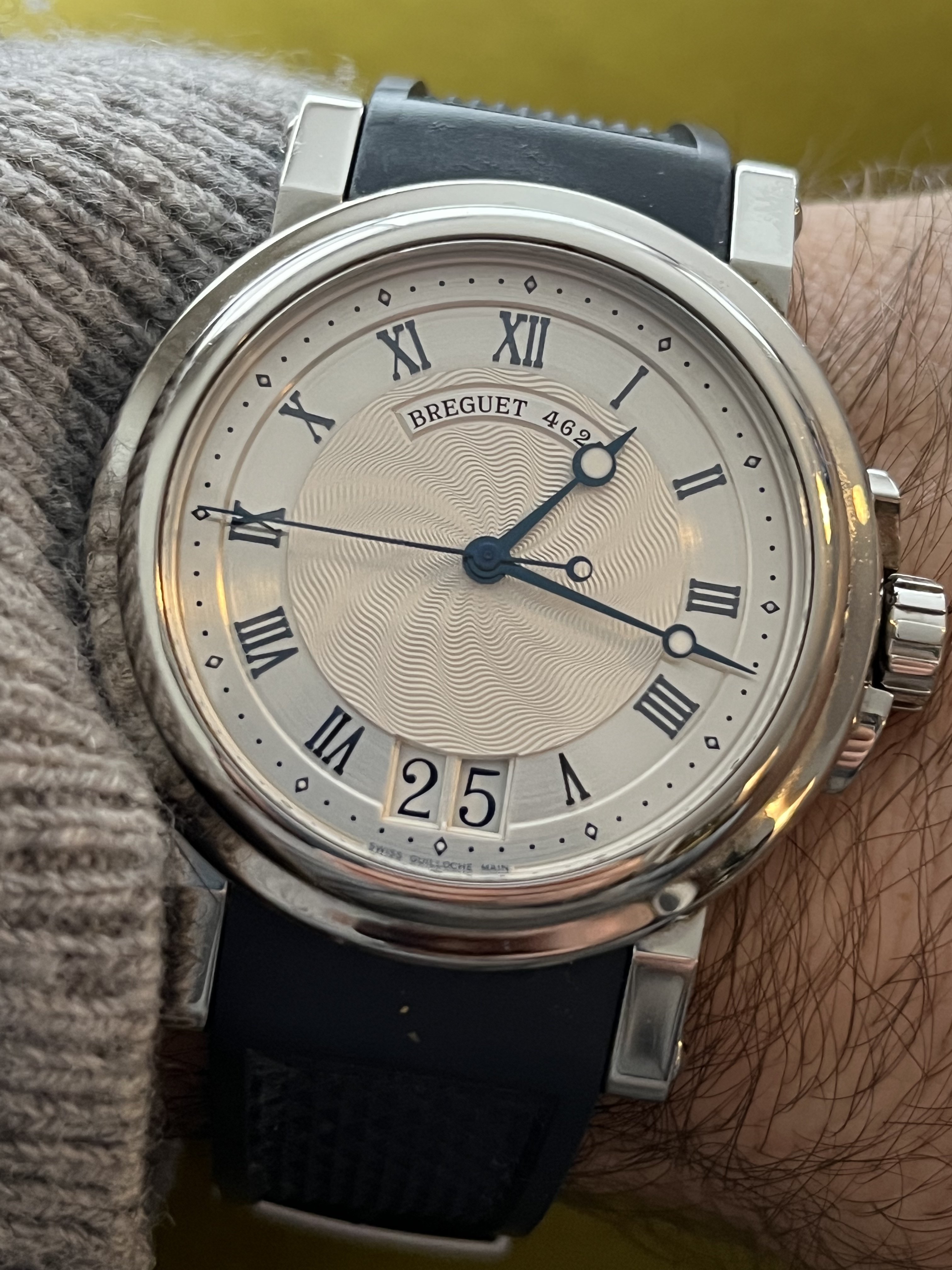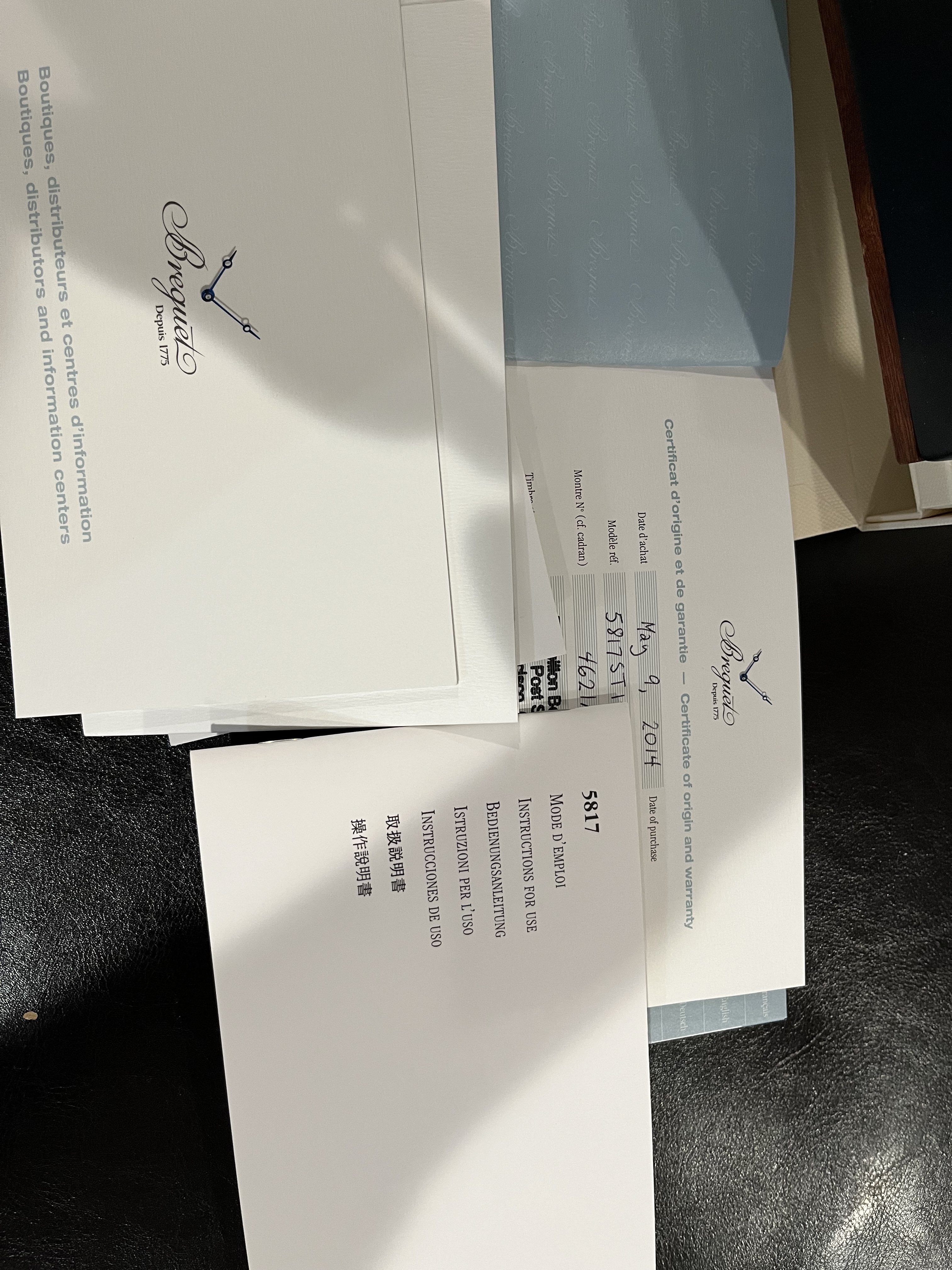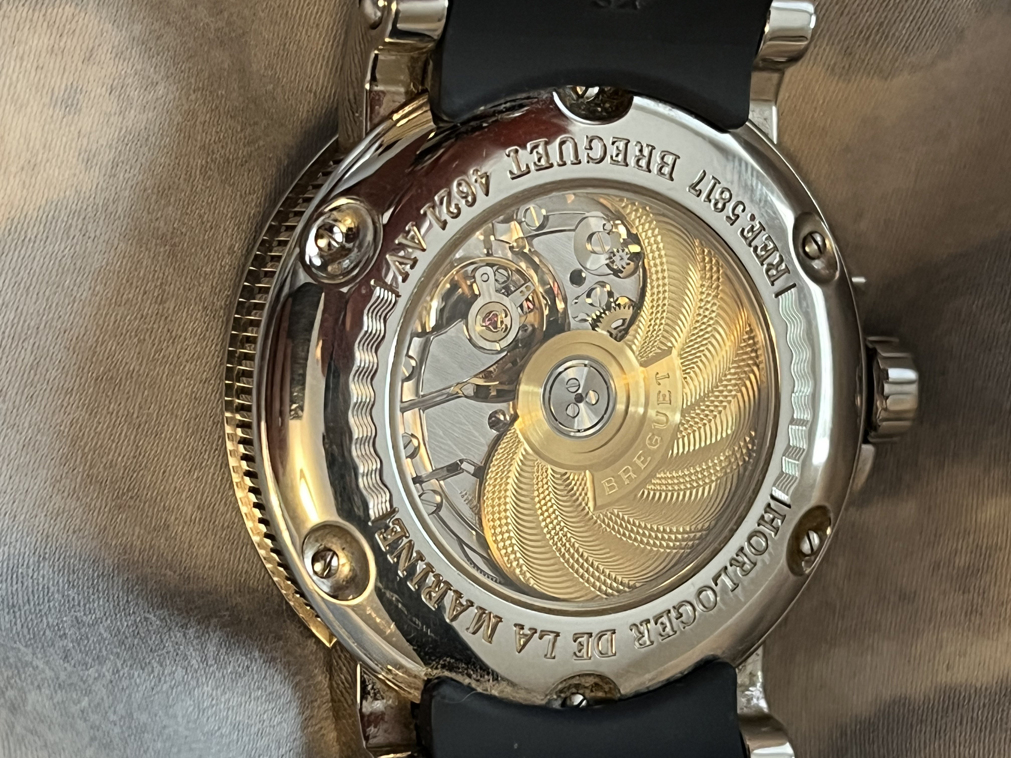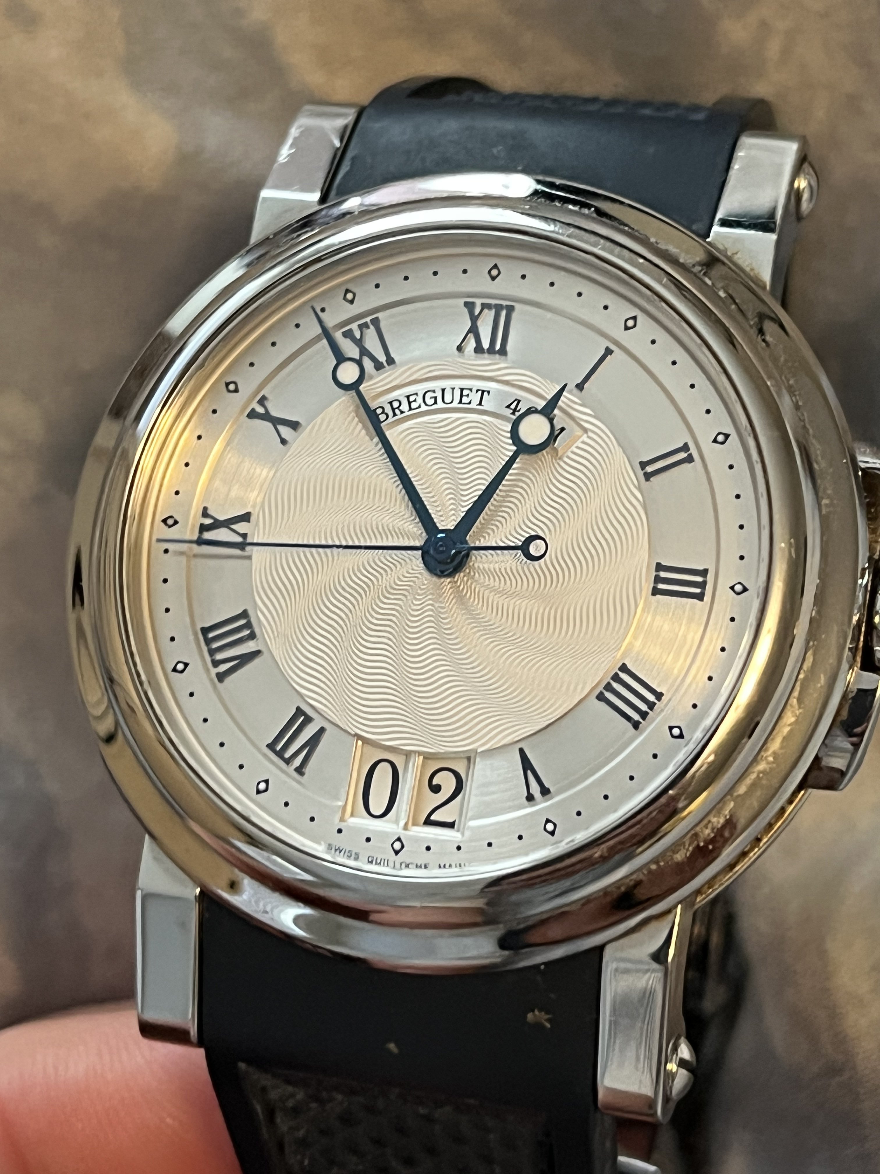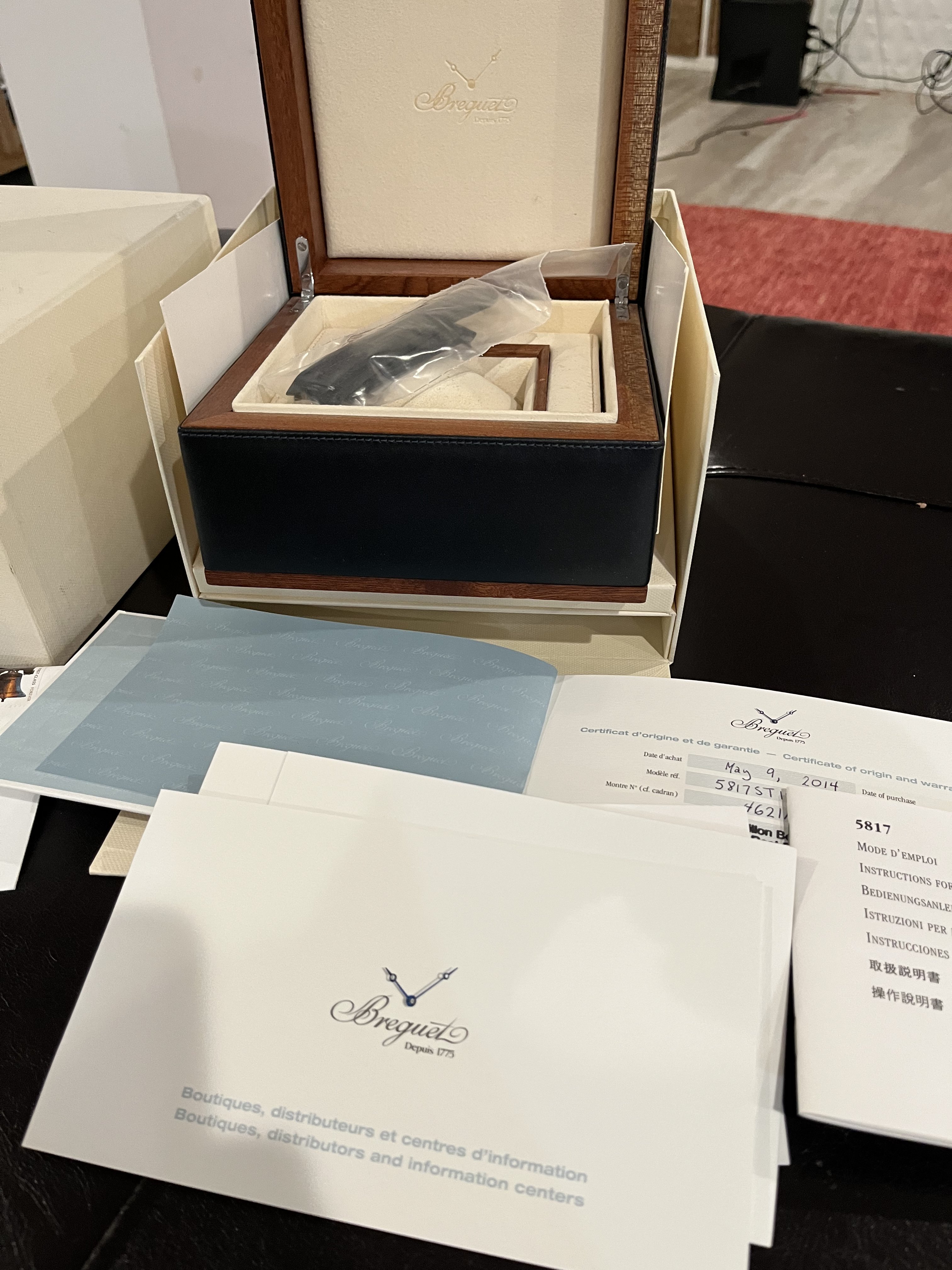 ·Full set discontinued Breguet Marine 5817st. Comes with all boxes, booklets, signed/dated warranty info. Comes with original black rubber strap and smaller blue strap (I prefer the smaller strap for 7” wrist because I don’t like the overhang). Service history unknown but runs fine. Contact for more pics, videos, live chat or whatever. Plenty of references. Payment via wire, Venmo, Zelle, or FTF in Washington DC area. Shipping to be discussed with buyer.
