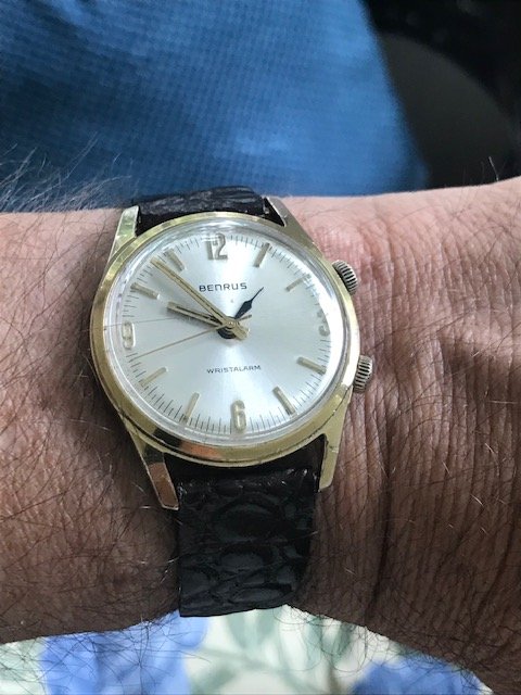 路Well not THAT Caesar Romero...This Benrus alarm belonged to Caesar Romero from Cebu City Philippines, not the slightest bit remarkable of a fella to tell ya the truth but he has good taste in watches and lived in our neighborhood. The watch runs great, the alarm works fine and is nice and loud, and it's a fairly nice looker with a gorgeous original dial and the case has some nicks here and there but still presents nice and would clean up good with a light rub down from a cape cod or jewelry polishing cloth. Nice looker and good sized watch.