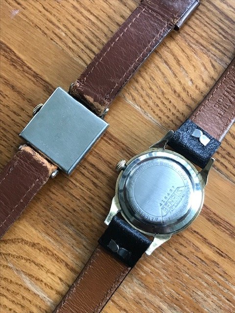 The square Benrus in some of the pictures is the 3rd watch in this package. It's a super good runner and nice and clean men's manual winder with a mint silver sparkly dial.