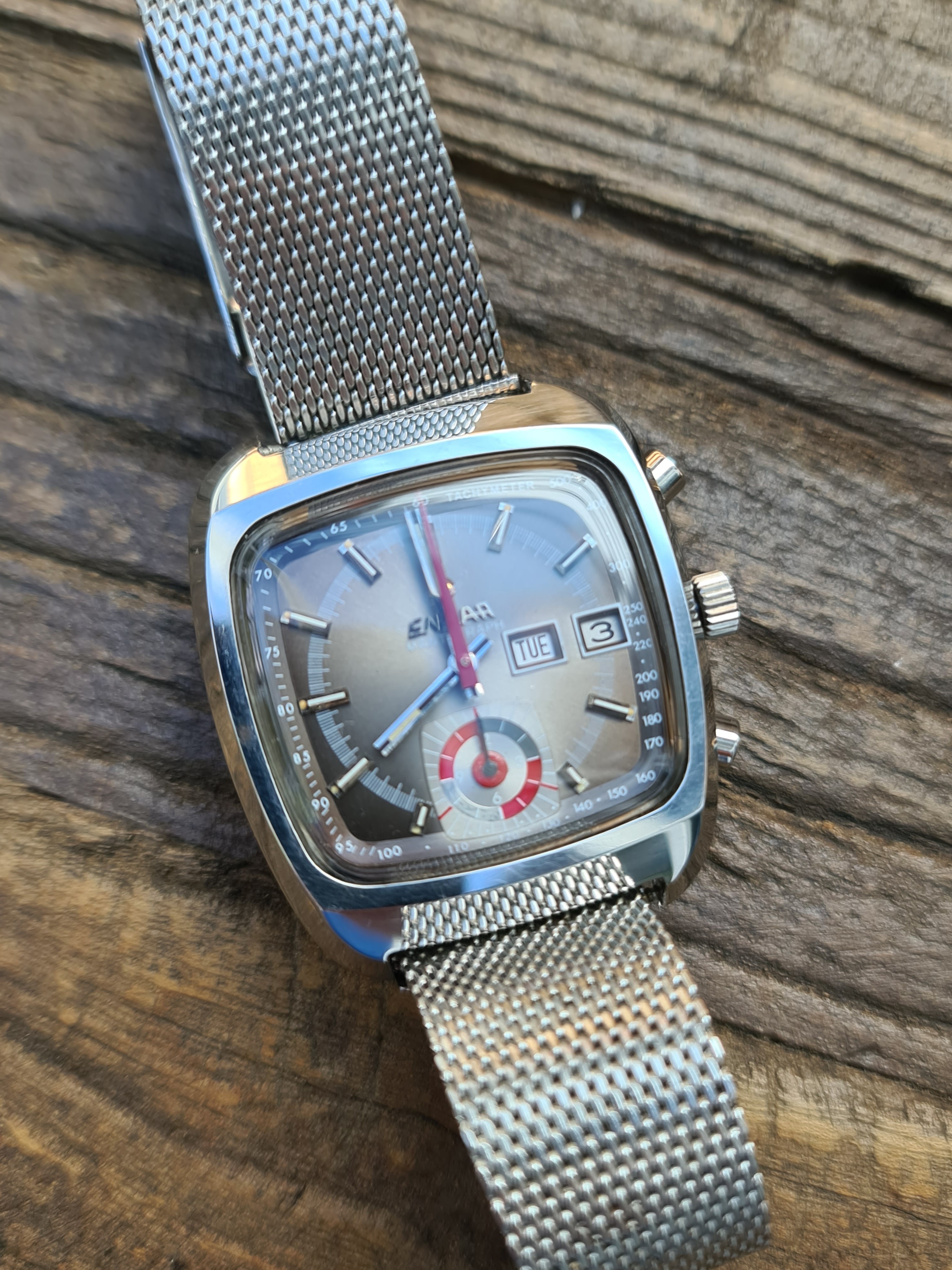 Caseback is in great condition too with all the writing nice and clear. Comes on it's original mesh bracelet with Enicar clasp. A few small marks on the case commensurate to a bit of wearing as it's not NOS.