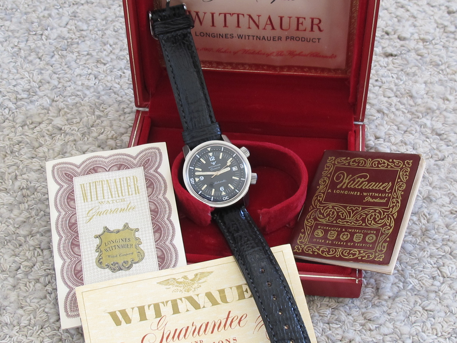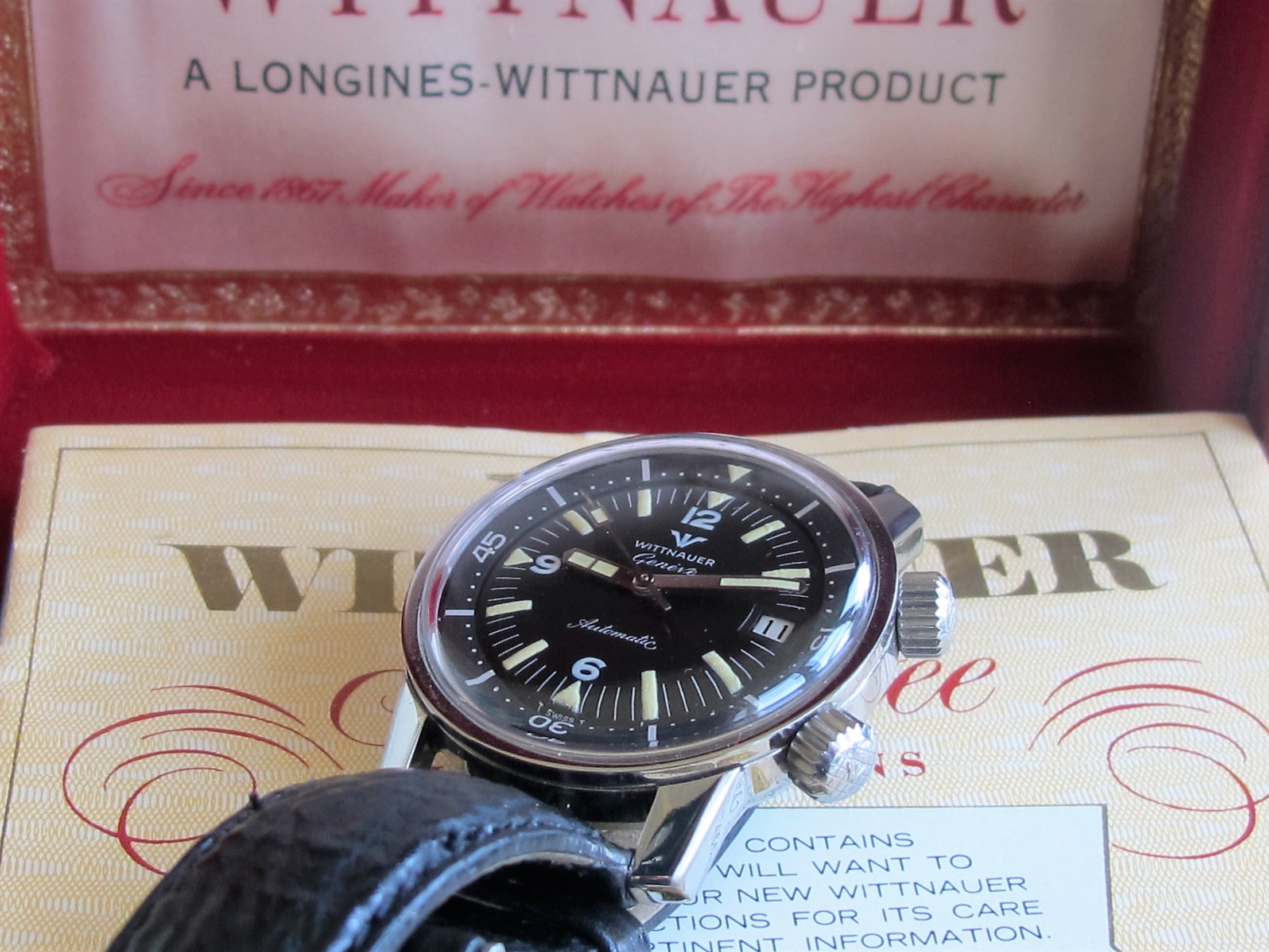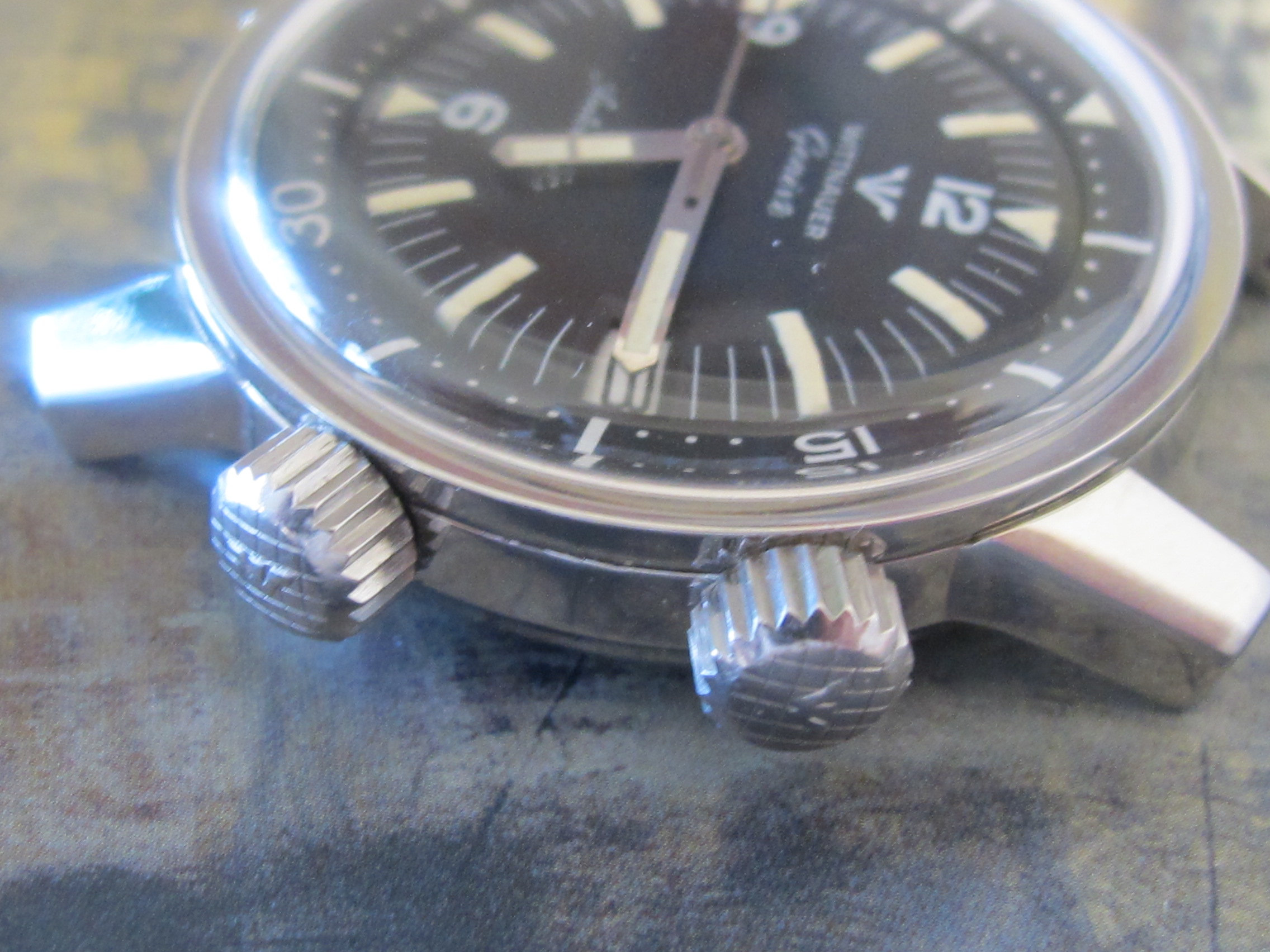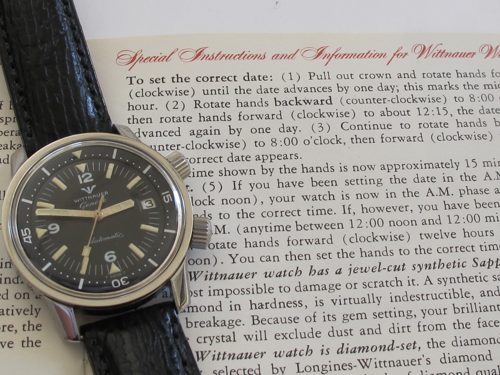 ·This Wittnauer Twin Crown Super Compressor, Ref 8007, was the 1960s cousin to the very desirable Longines 7150 Super Compressor. It’s in excellent condition for its age. Here are the key specs - stainless steel 36mm case (almost 40 mm with twin crowns), clear acrylic crystal, and 17 jewel C11KAS movement serviced in 2013 when purchased from a forum member. The dial and hands match very nice nicely and the tritium is still active.
