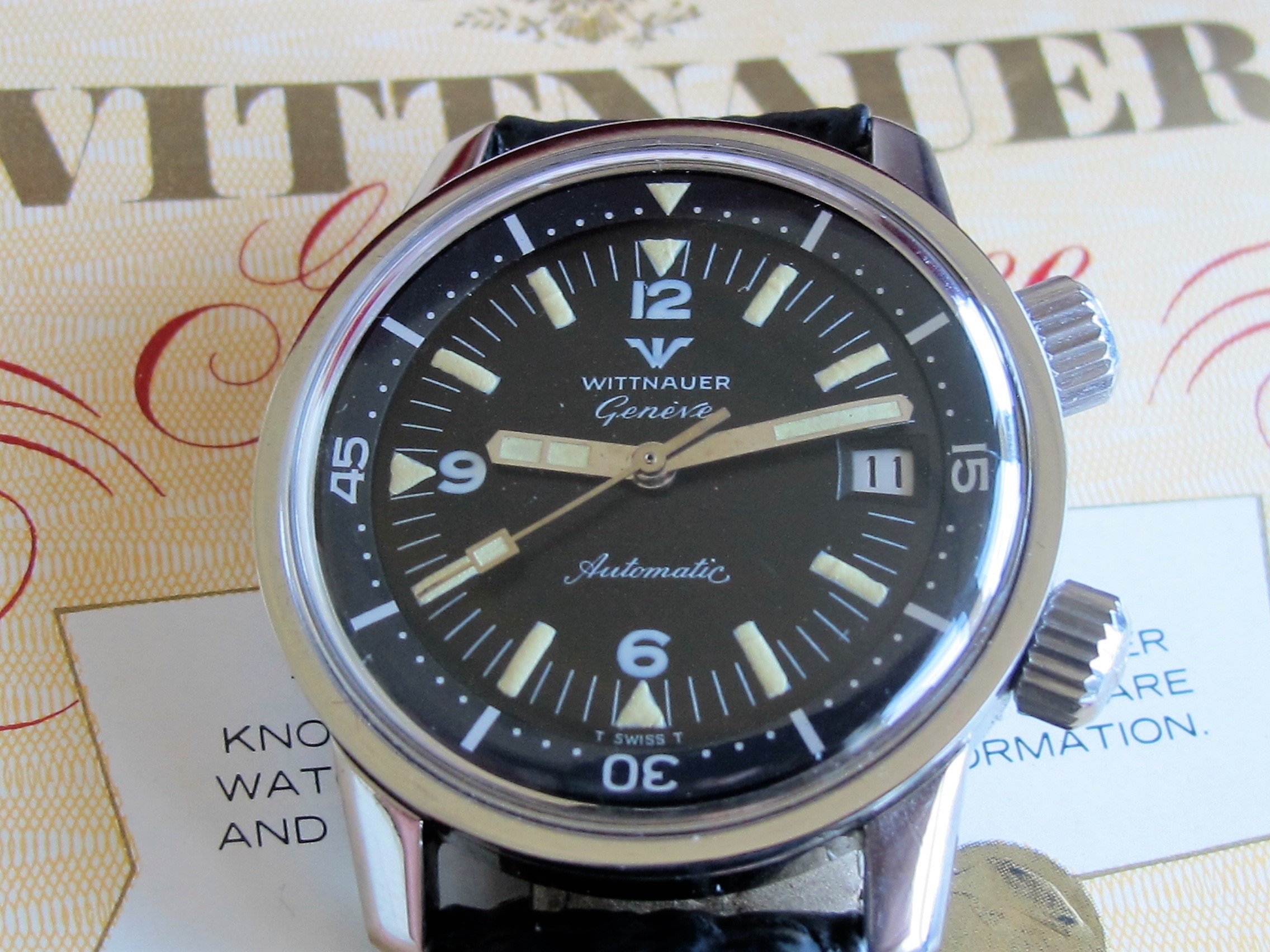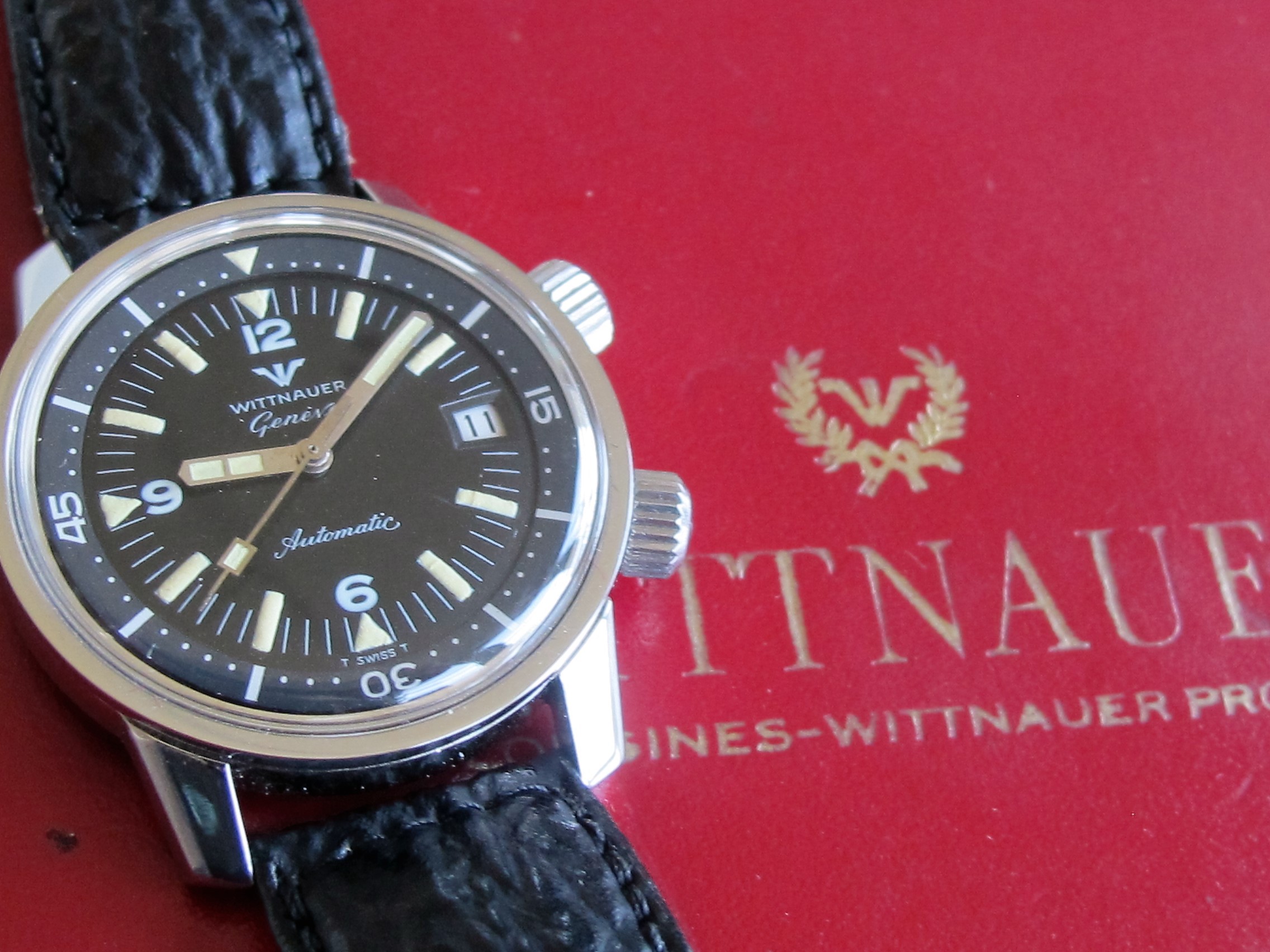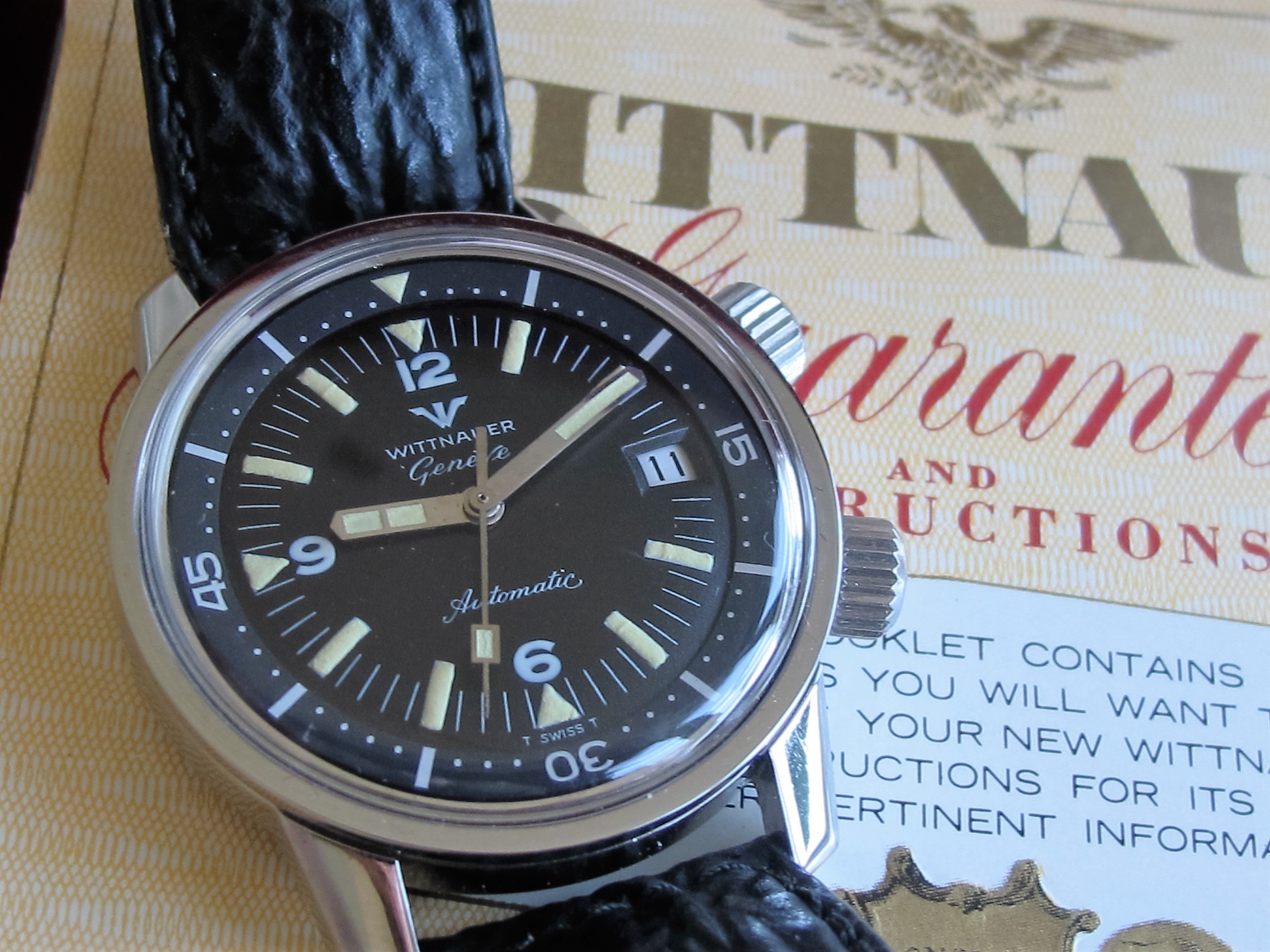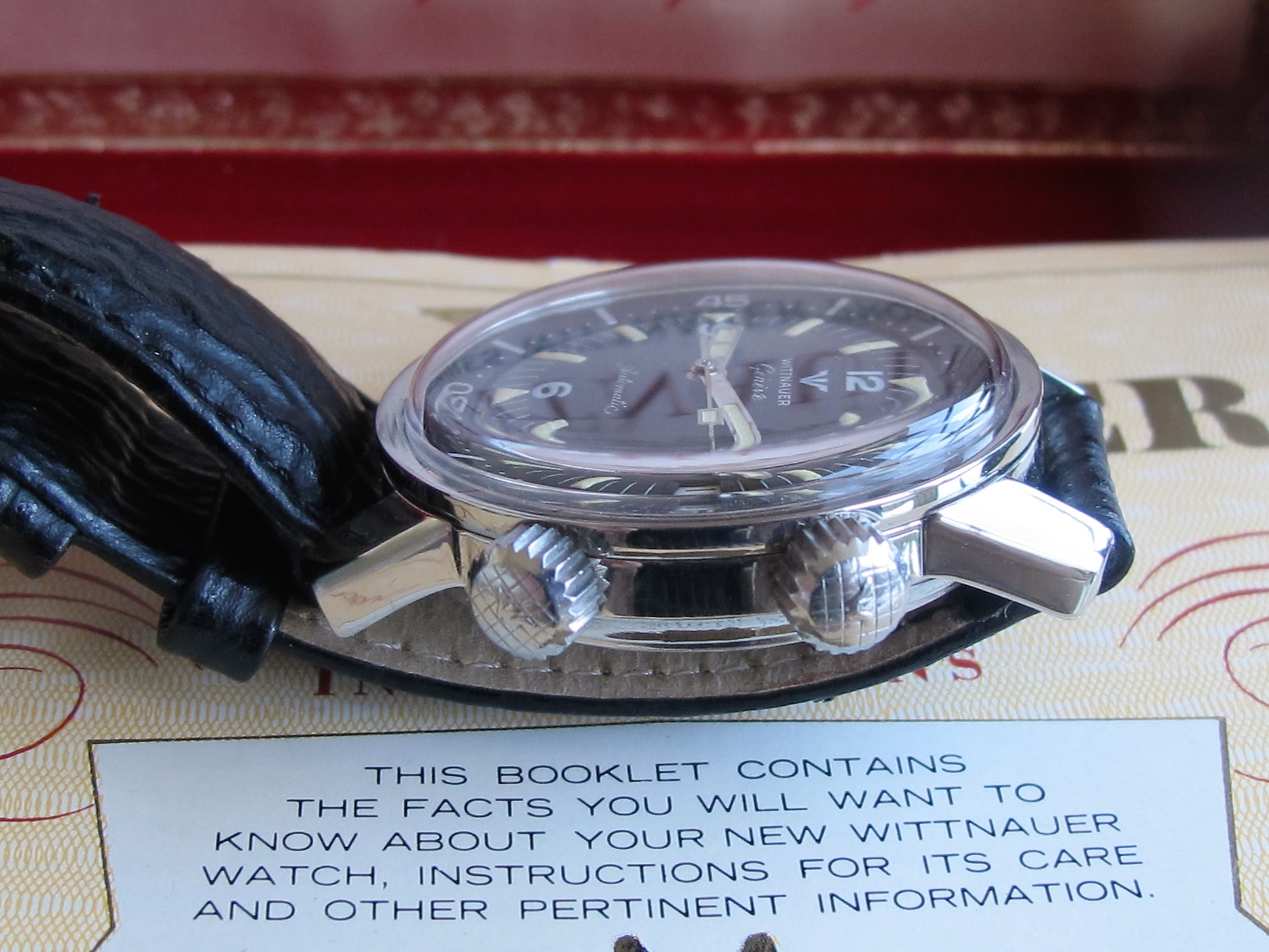 ·This Wittnauer Twin Crown Super Compressor, Ref 8007, was the 1960s cousin to the very desirable Longines 7150 Super Compressor. It’s in excellent condition for its age. Here are the key specs - stainless steel 36mm case (almost 40 mm with twin crowns), clear acrylic crystal, and 17 jewel C11KAS movement serviced in 2013 when purchased from a forum member. The dial and hands match very nice nicely and the tritium is still active.