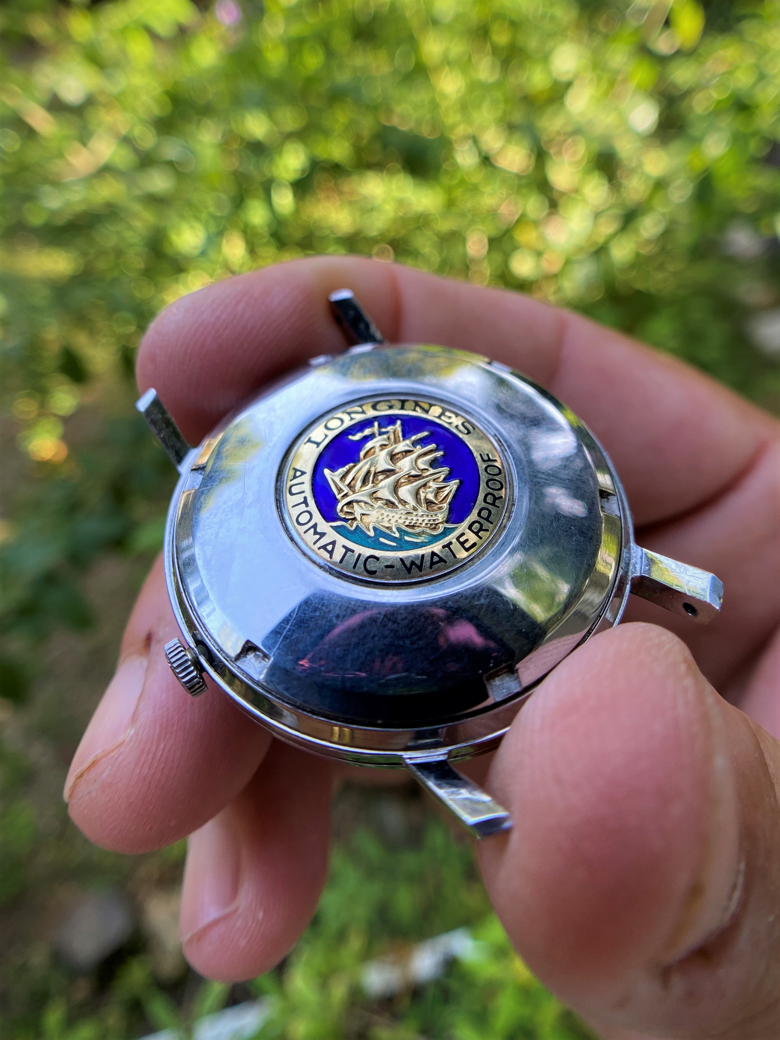 Caseback is in great condition, still with its extremely beautiful and rare complete enamel ship.
